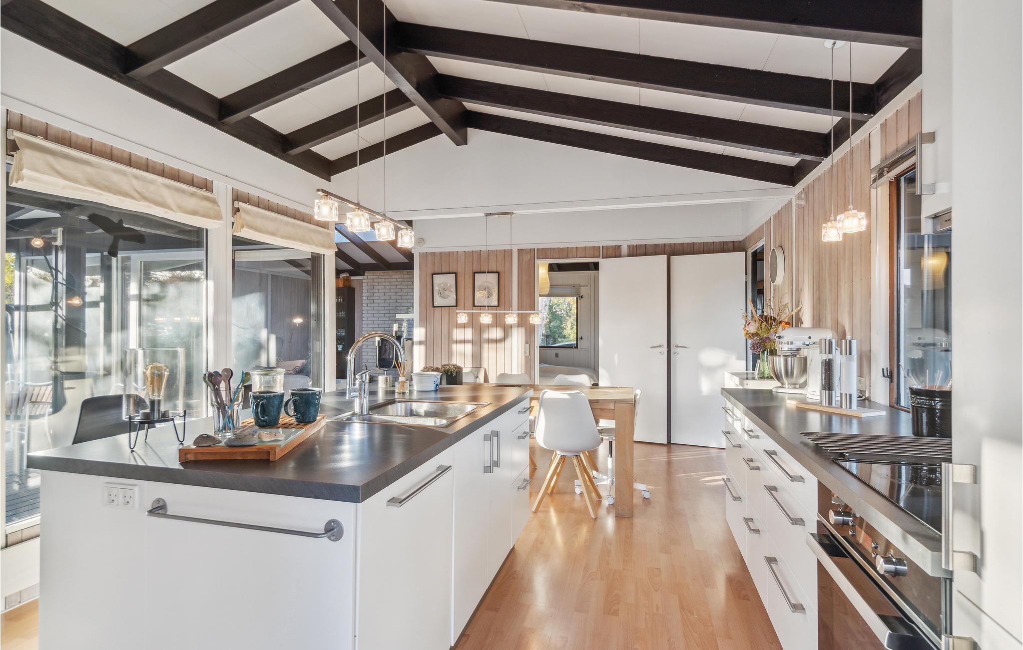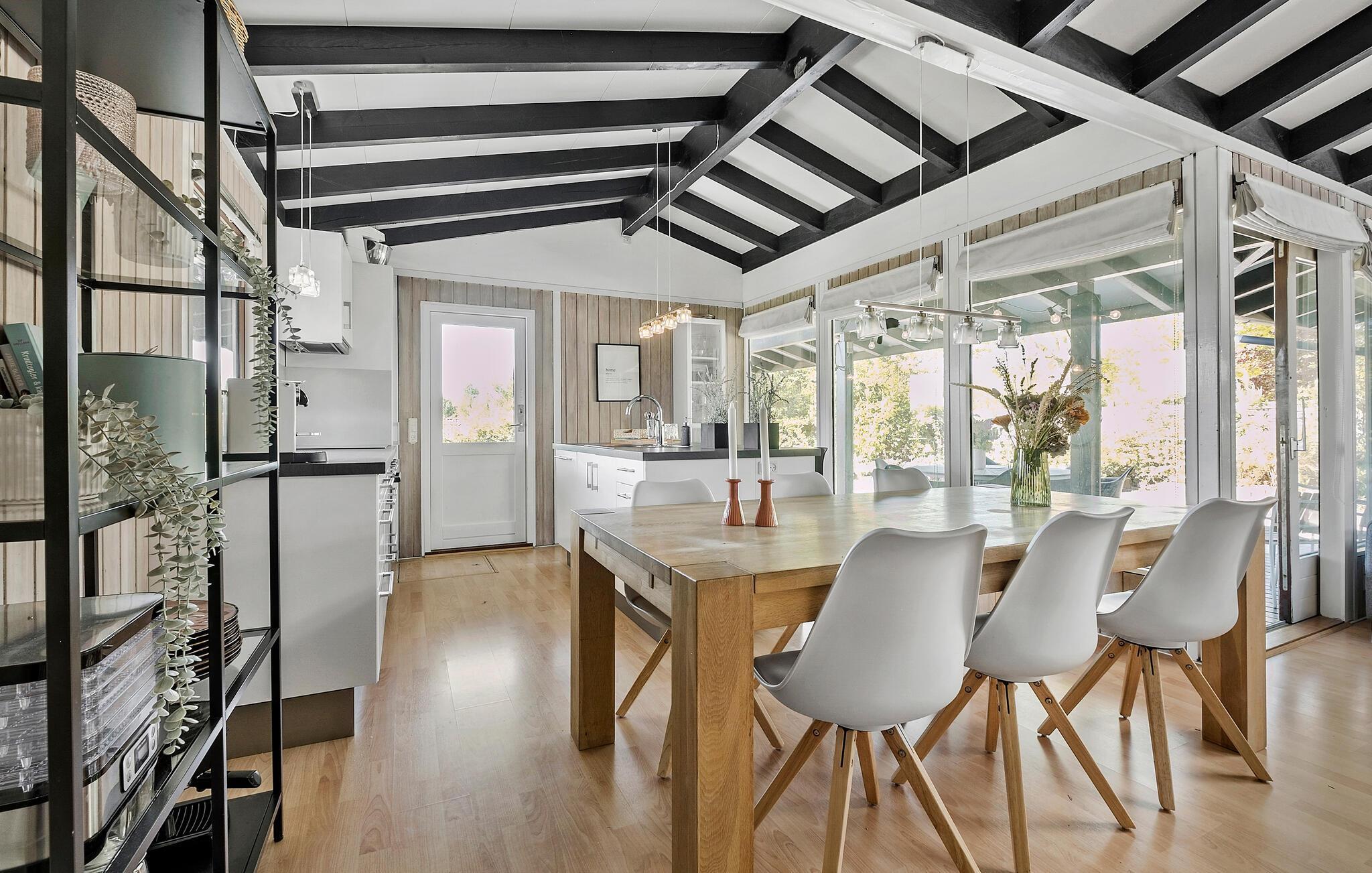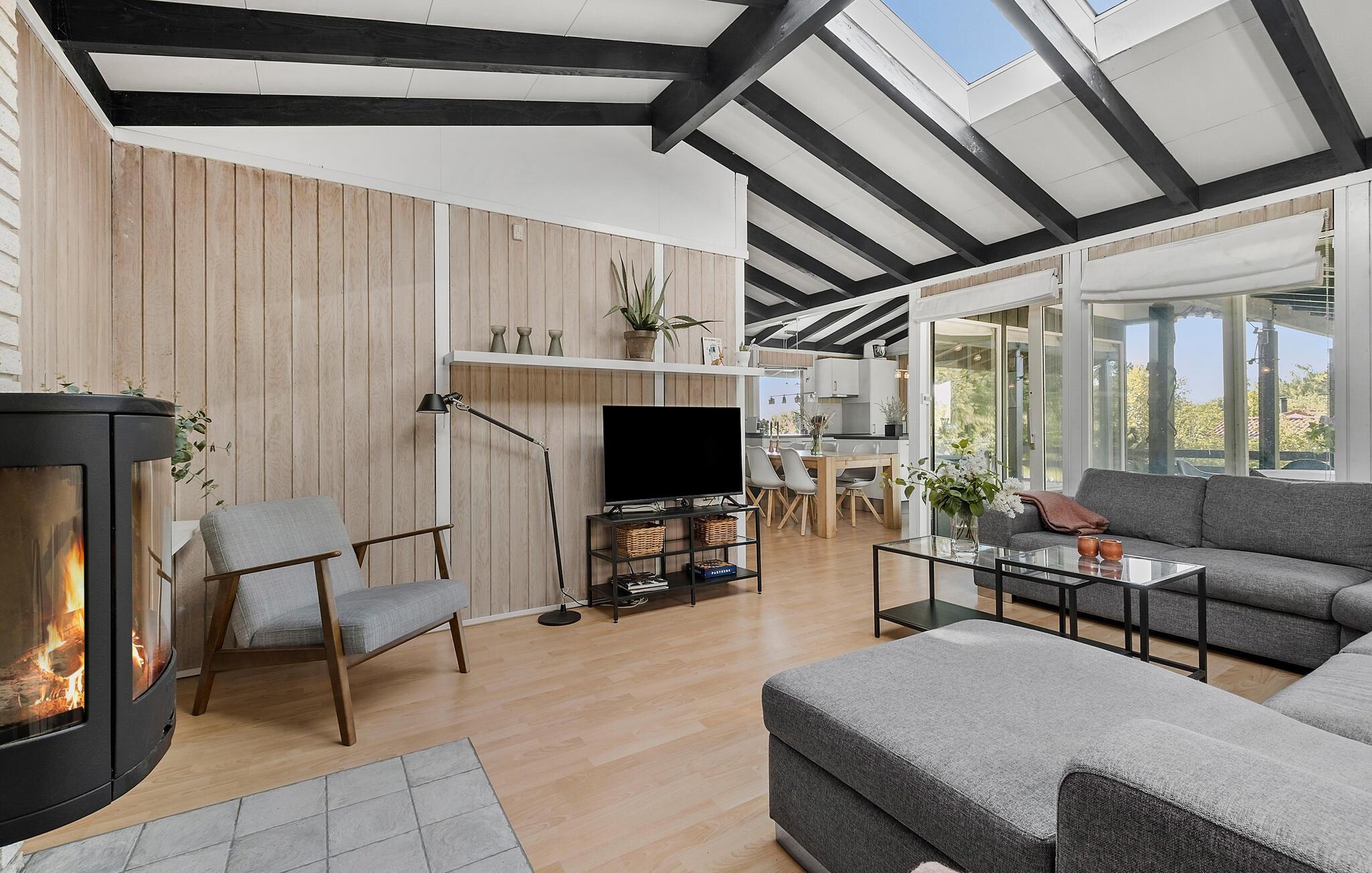 Ontdek dit lichte en moderne vakantiehuis met prachtig uitzicht in Vejby Strand.