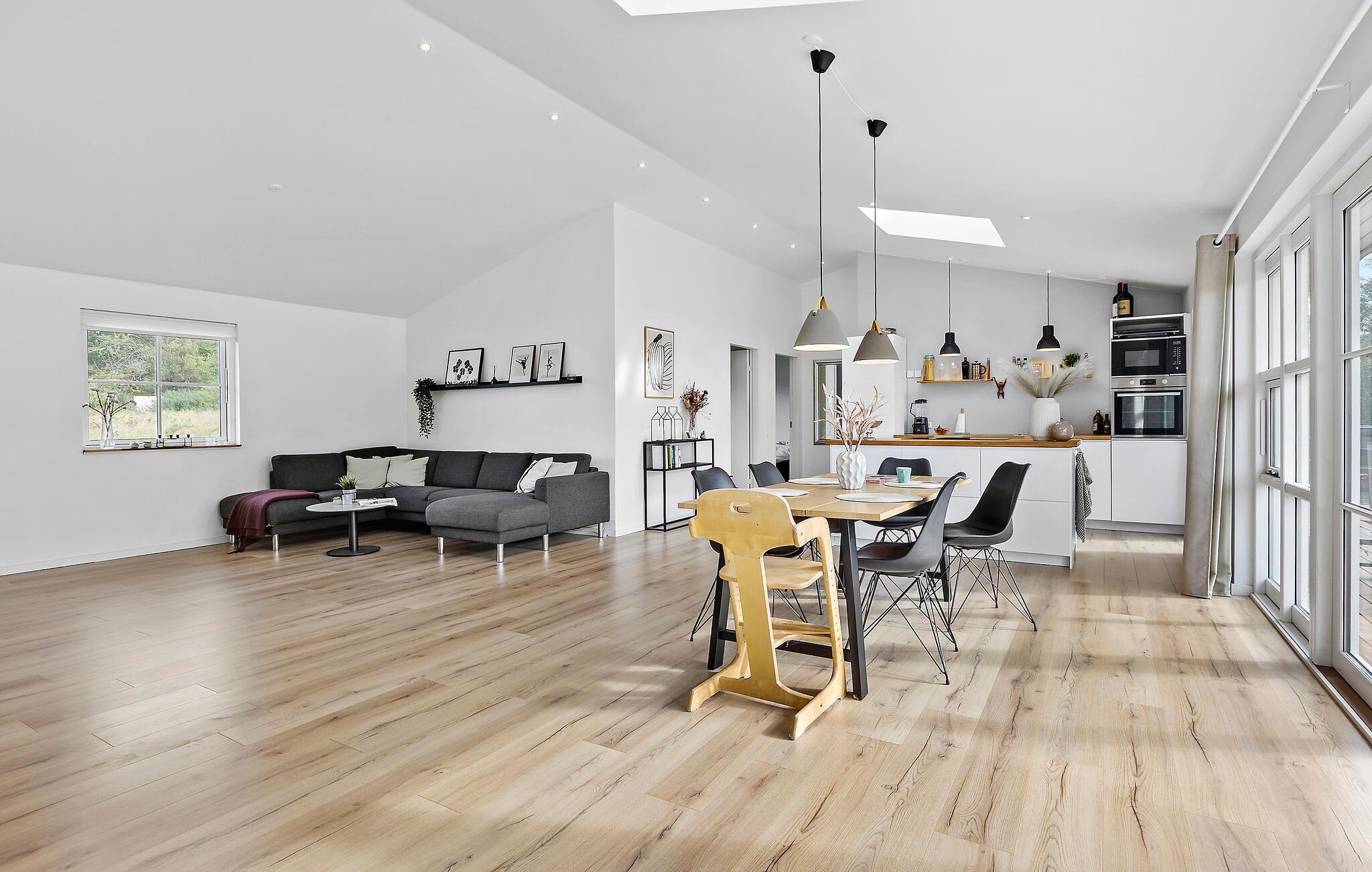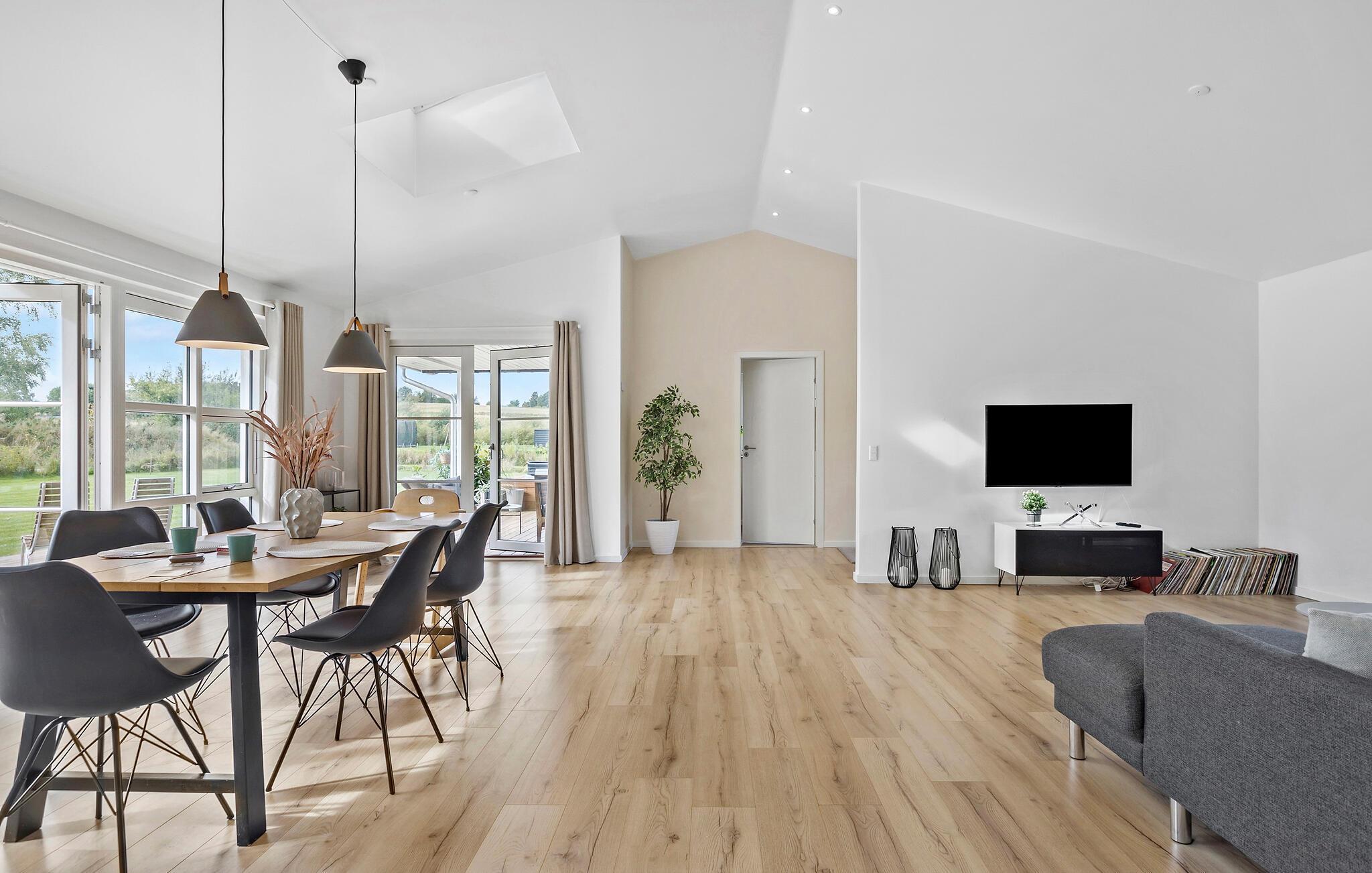 Dit elegante, lichtovergoten vakantiehuis in de buurt van Vejby Strand nodigt u uit om te genieten van een ontspannen vakantie in modern comfort. De stijlvolle en luchtige inrichting en het ontwerp creëren een ontspannen sfeer waarin je je meteen thuis zult voelen. Geniet van het samenzijn met je familie in de open woonkamer, waar je kunt koken, eten, spelletjes spelen of samen filmavonden doorbrengen.