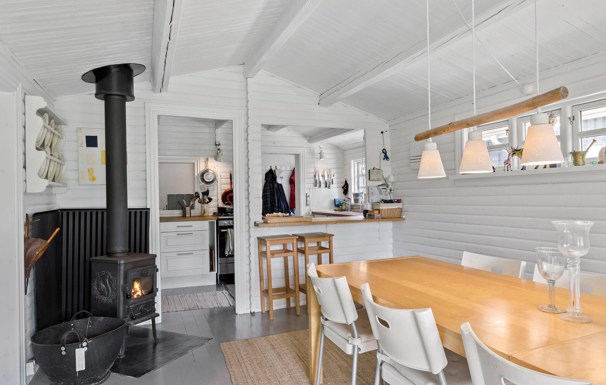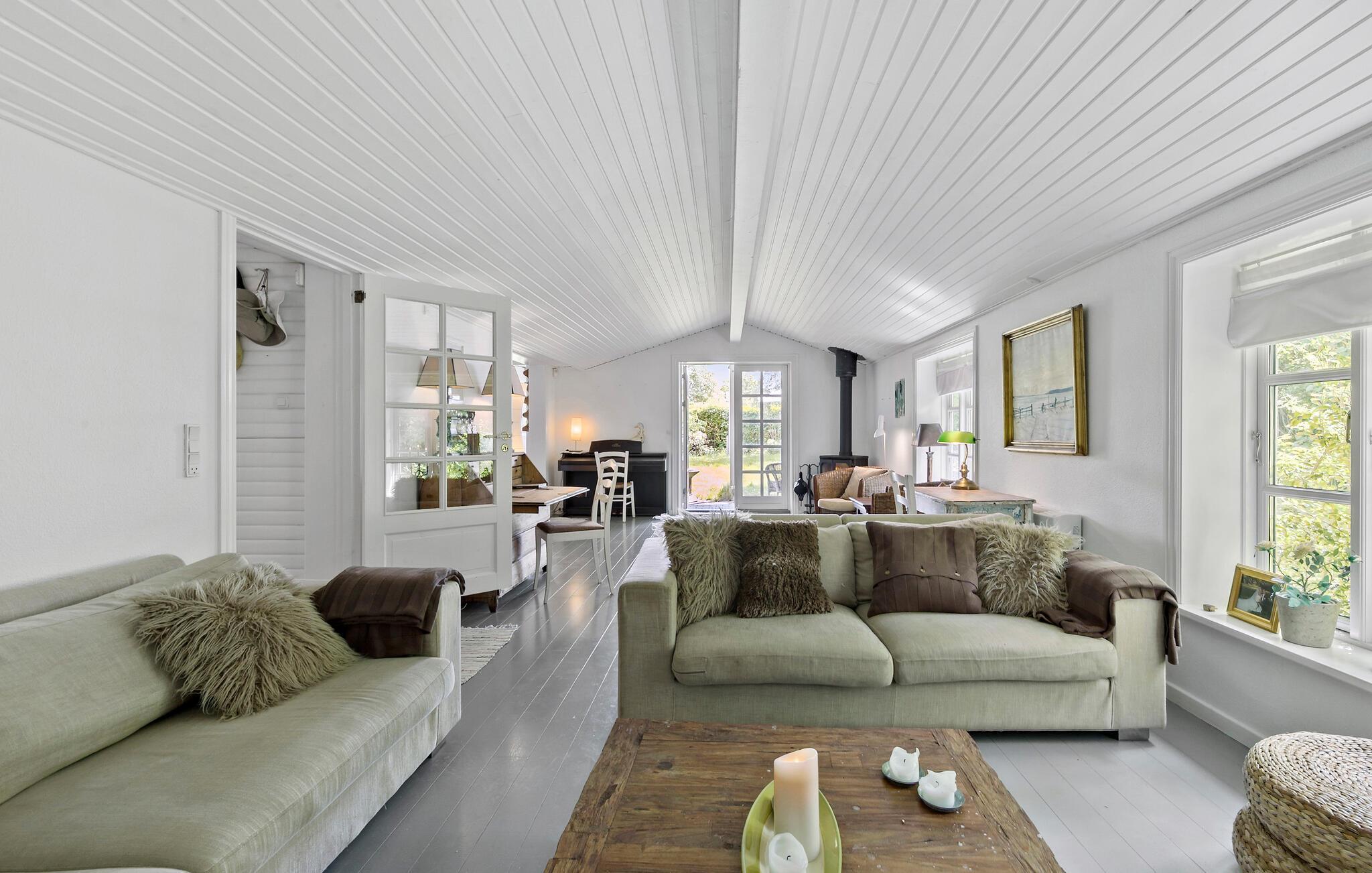 Je vakantiehuis ligt in een van de mooiste vakantieregio's van Denemarken en verwelkomt je met een gezellige inrichting en een uitnodigende tuin voor ontspannen dagen en rustgevende nachten. Blijf hangen in de gezellige sfeer van je vakantiehuis en geniet van de ochtendrust terwijl je een uitgebreid ontbijt bereidt. De ruime woonkamer van het vakantiehuis met zijn lichte en vriendelijke inrichting nodigt je uit om te ontspannen op de comfortabele banken. Geniet van de avonden samen tv kijken of een goed boek lezen. Of zing samen vrolijke liedjes met pianobegeleiding. Op koelere dagen zorgt de houtkachel voor behaaglijke warmte en een nog gezelliger sfeer.