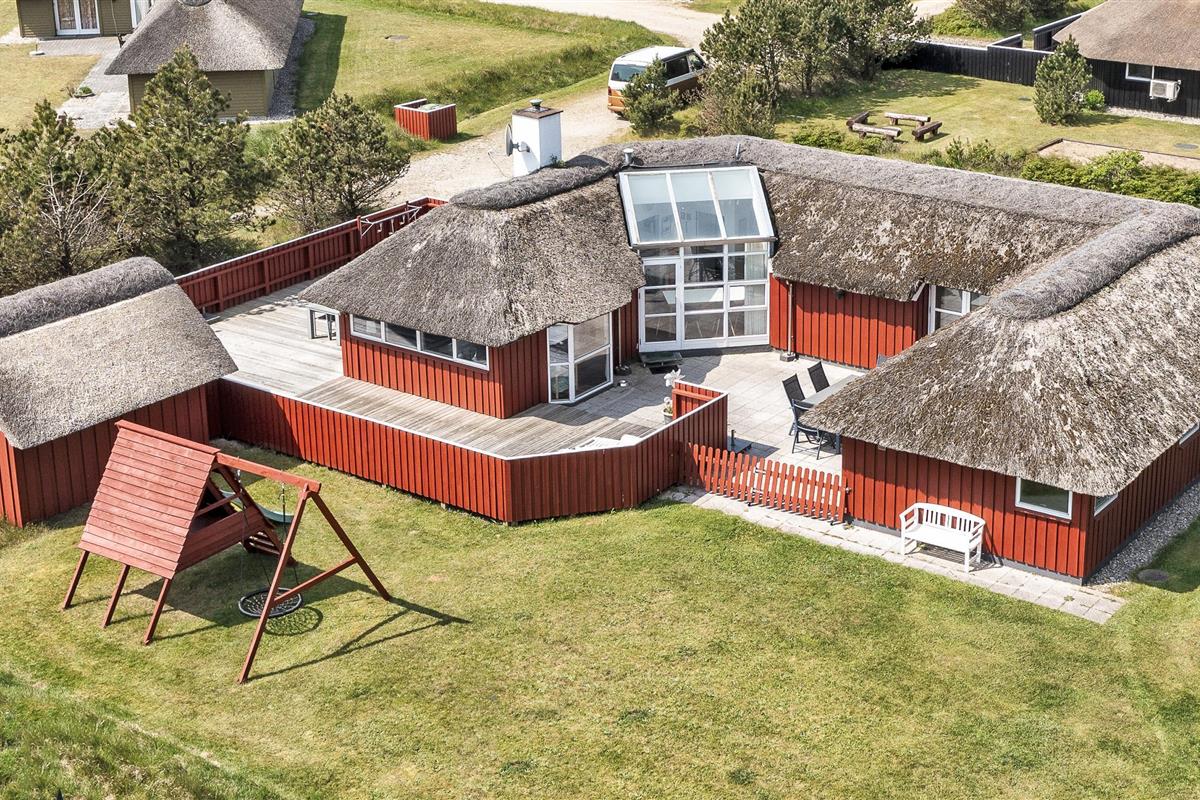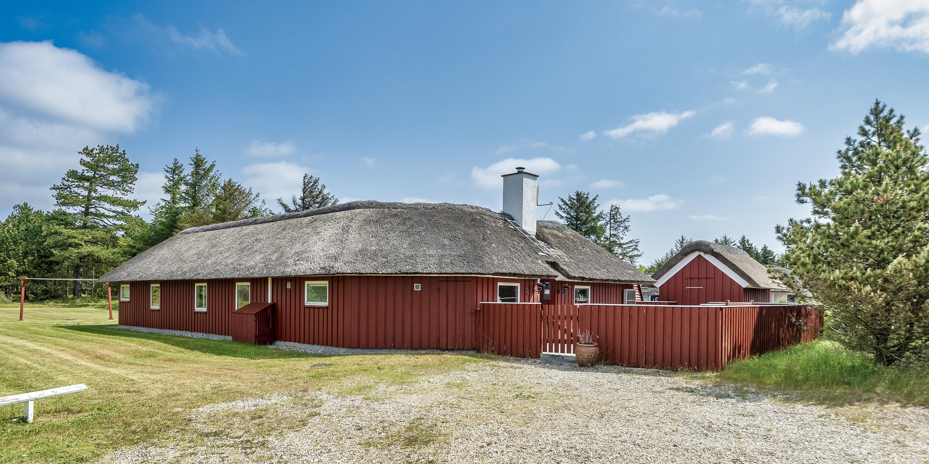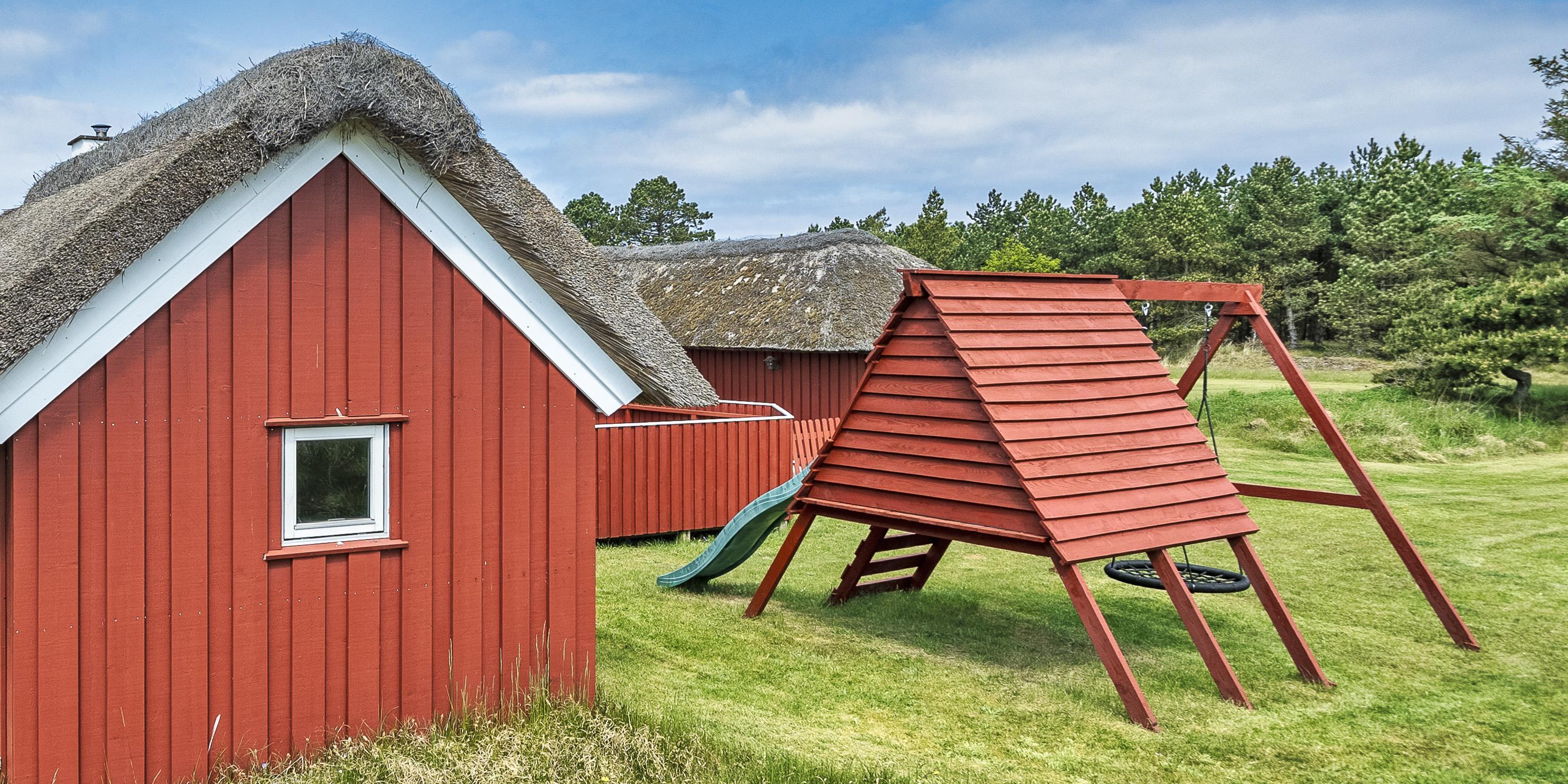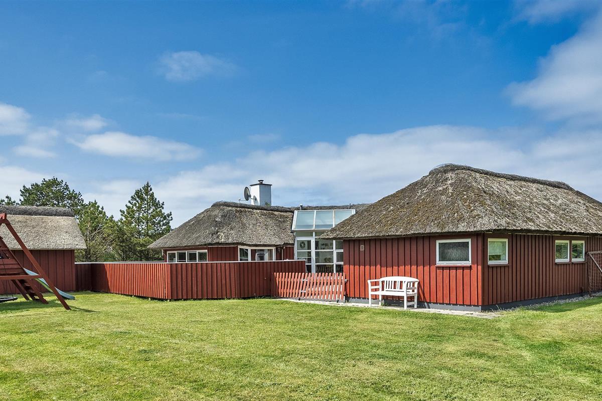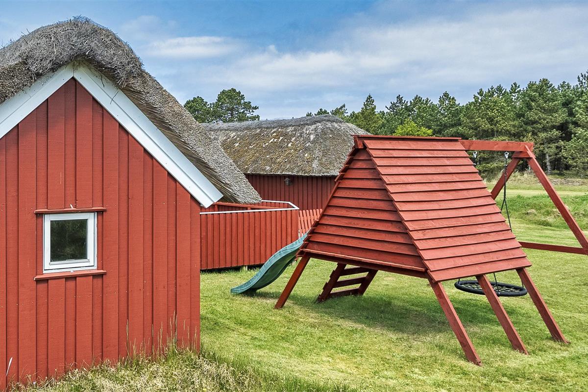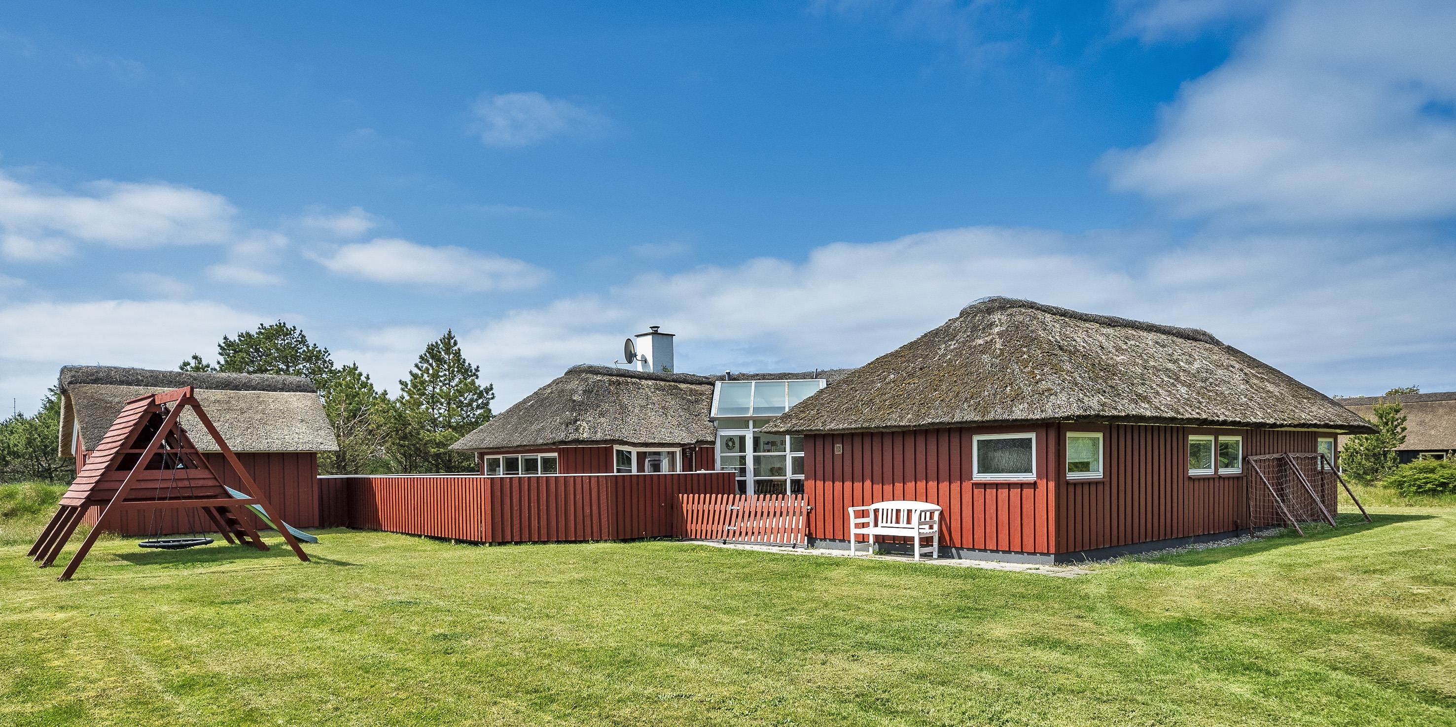 Tasteful summer house for 9 people, located on a natural plot approx. 1,500 meters from the beach. The house contains: Living room with wood-burning stove, television, Chromecast and satellite dish (no Danish programmes). Docking station for I-phone with built-in music. Kitchen with dishwasher and microwave. Large dining area with games room. Bathroom with shower/wc and spa. Washing machine and dryer. Guest toilet with shower. 4 bedrooms: DB + DB + DB + 3B. The house is partially heated by solar energy. Heat pump (air to air). Large, partially enclosed terrace with garden furniture. Play tower with swing for children. 1 dog ist allowed. Wi-Fi. Rying is not allowed! Year of construction 1988, renovated 2005.