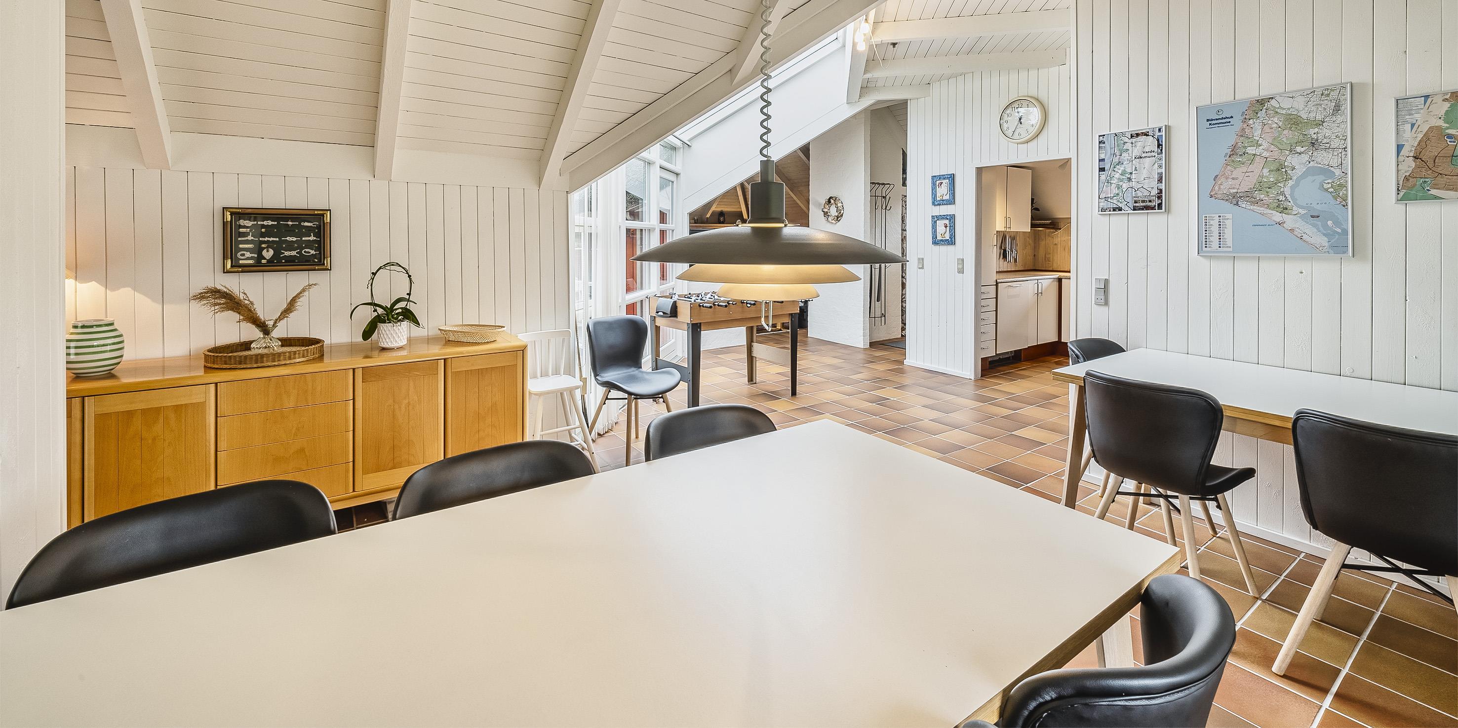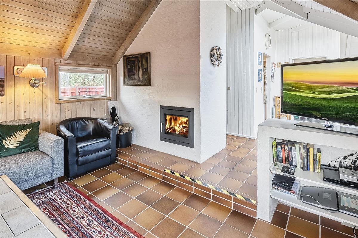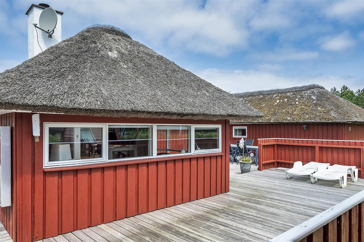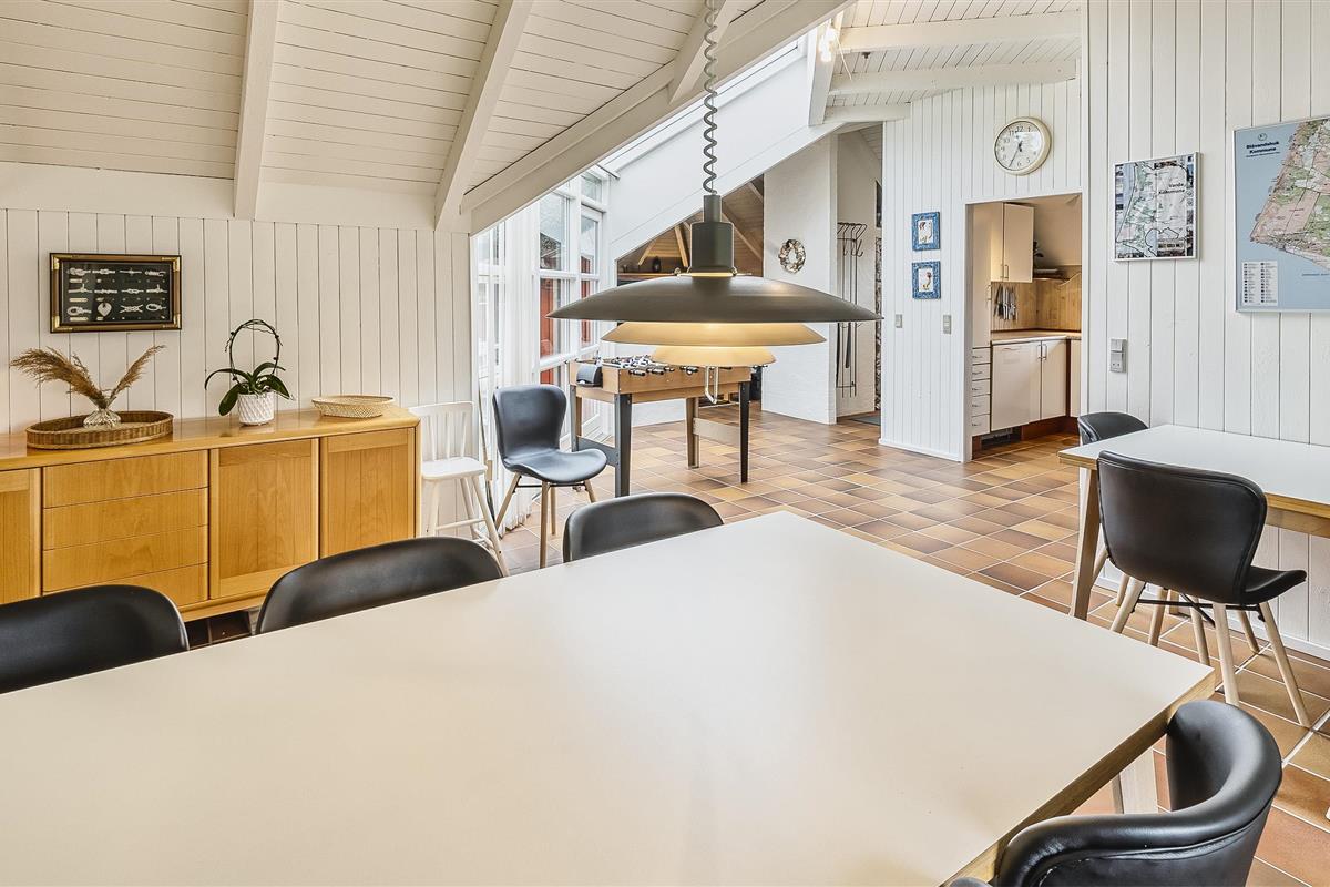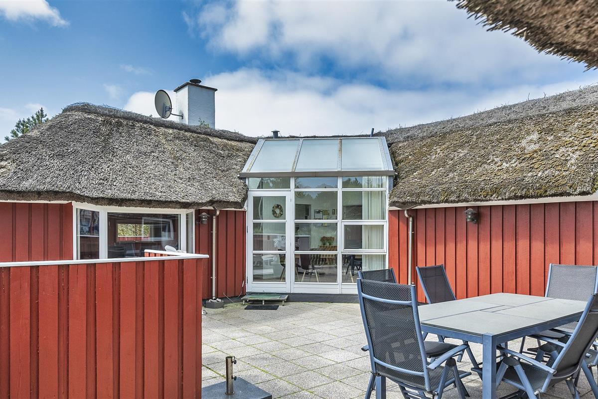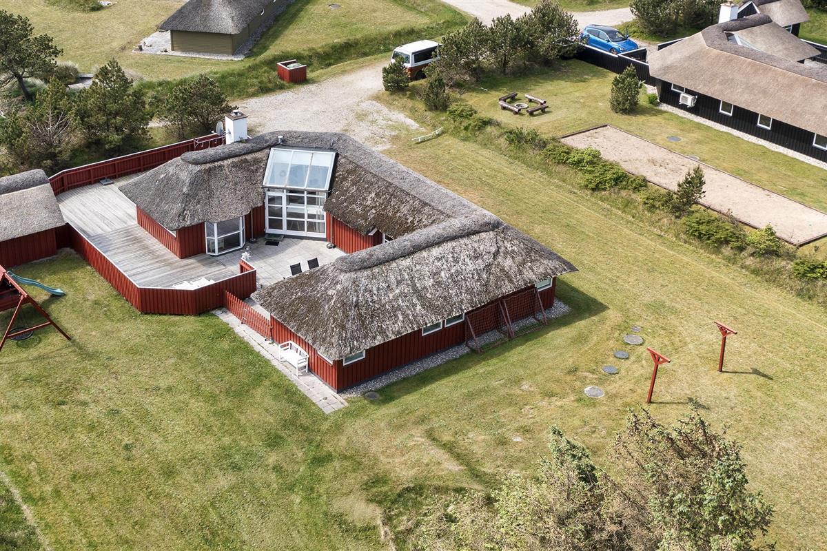 Tasteful summer house for 9 people, located on a natural plot approx. 1,500 meters from the beach. The house contains: Living room with wood-burning stove, television, Chromecast and satellite dish (no Danish programmes). Docking station for I-phone with built-in music. Kitchen with dishwasher and microwave. Large dining area with games room. Bathroom with shower/wc and spa. Washing machine and dryer. Guest toilet with shower. 4 bedrooms: DB + DB + DB + 3B. The house is partially heated by solar energy. Heat pump (air to air). Large, partially enclosed terrace with garden furniture. Play tower with swing for children. 1 dog ist allowed. Wi-Fi. Rying is not allowed! Year of construction 1988, renovated 2005.