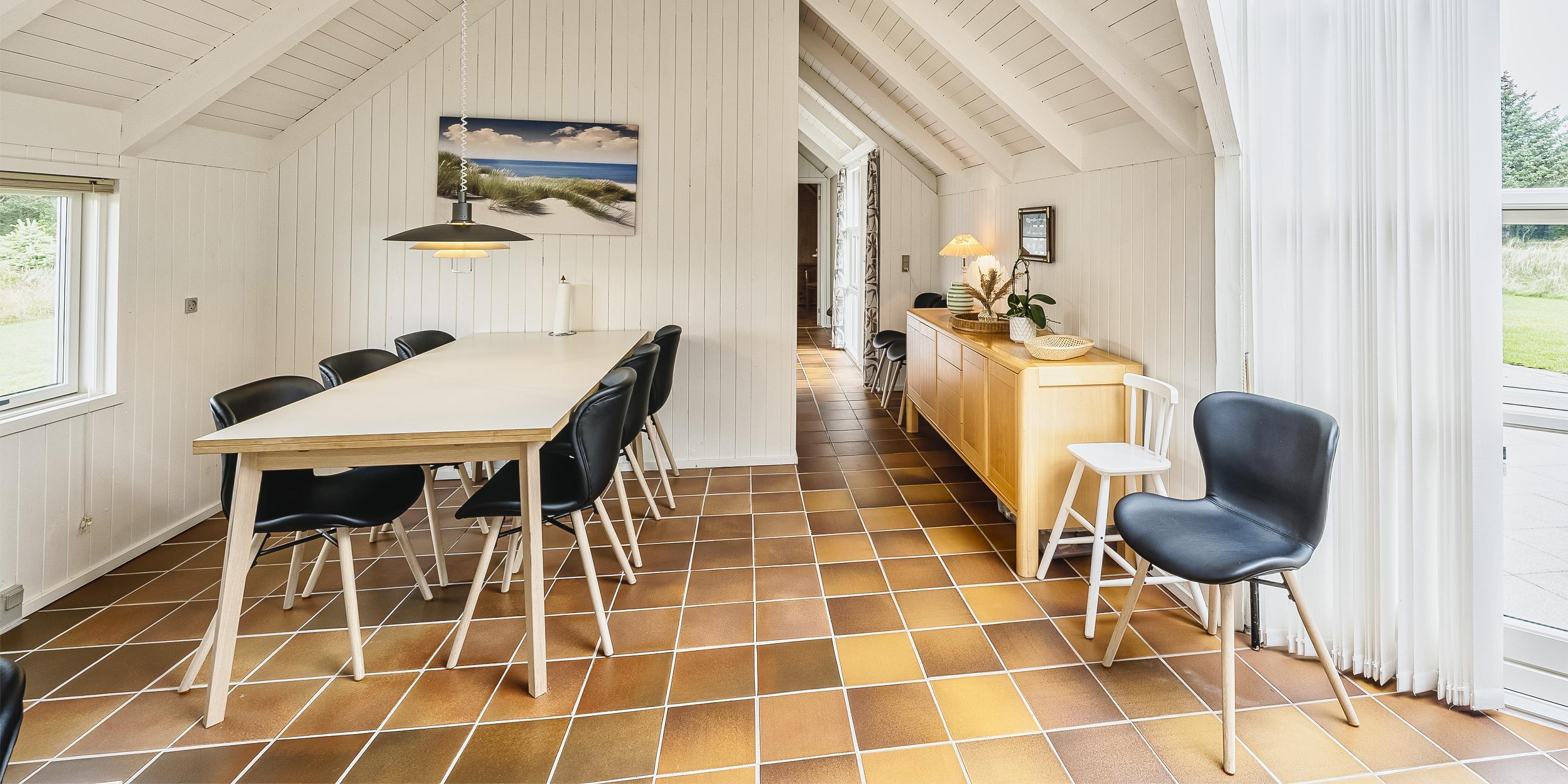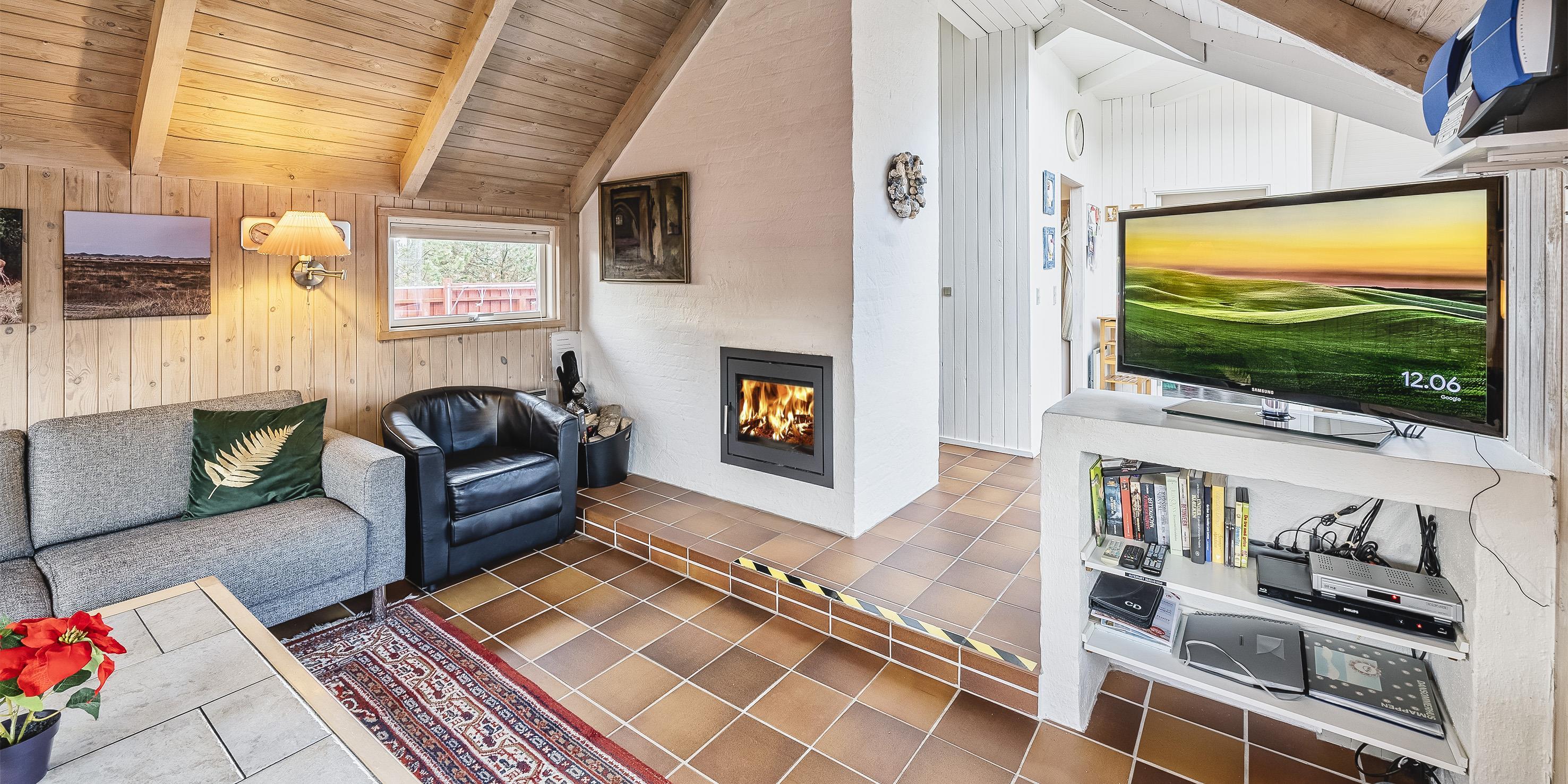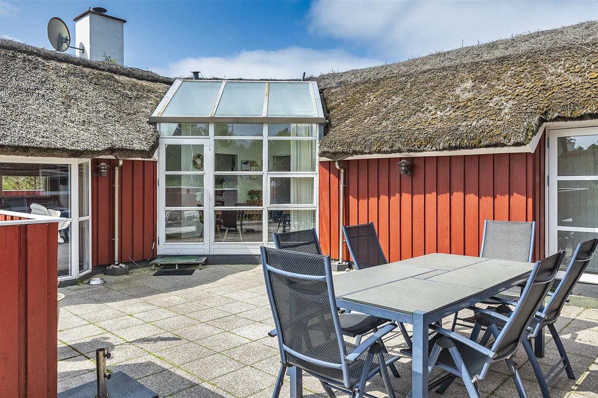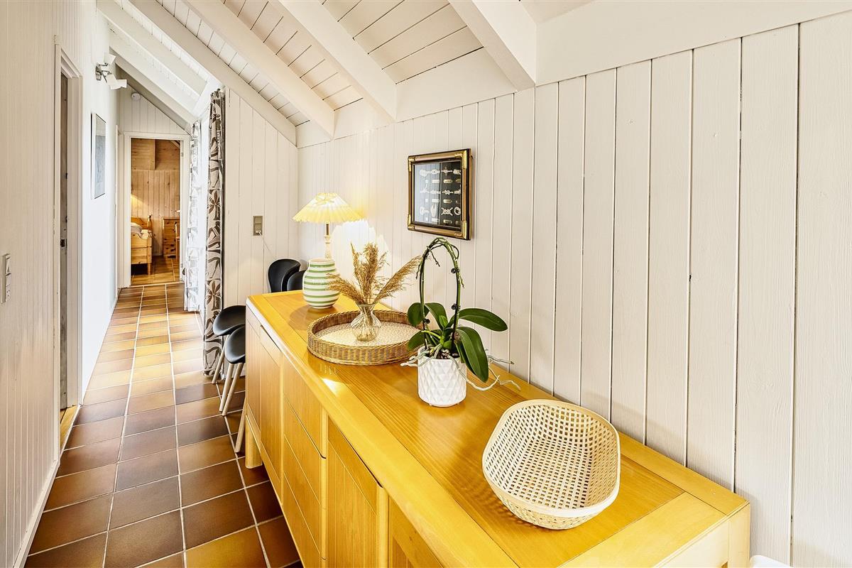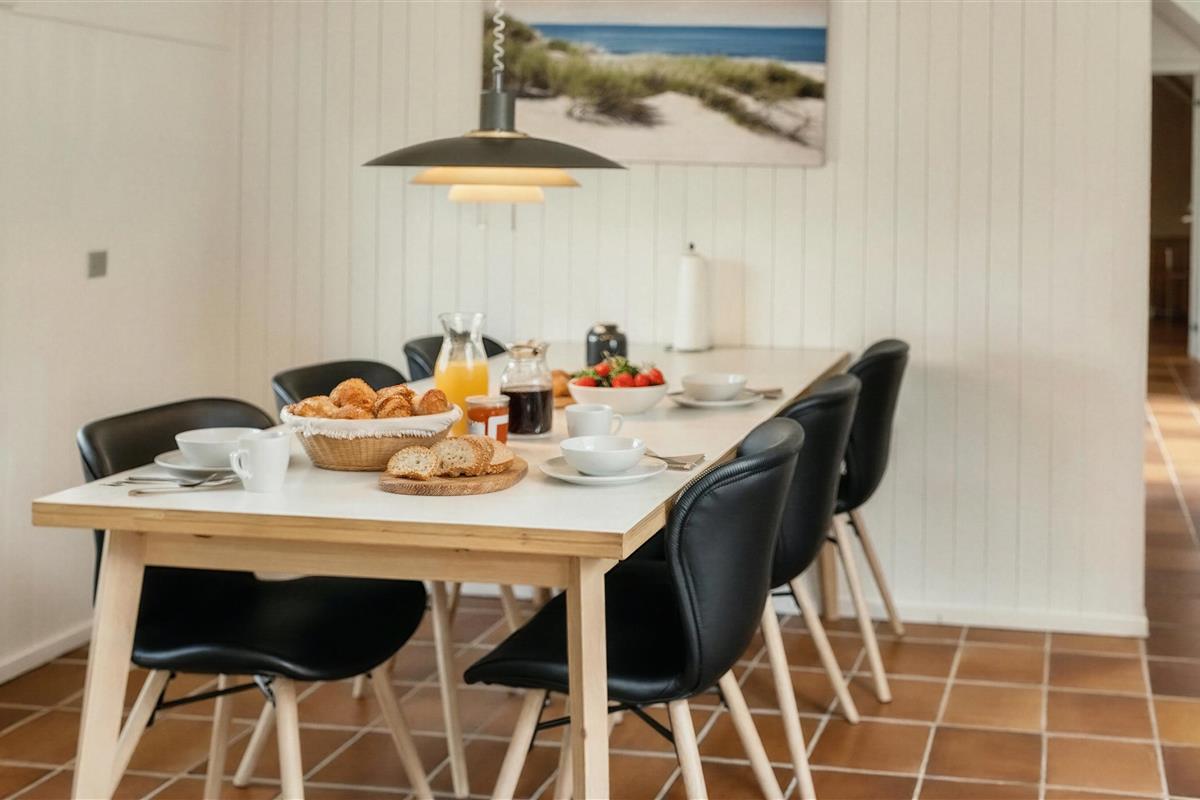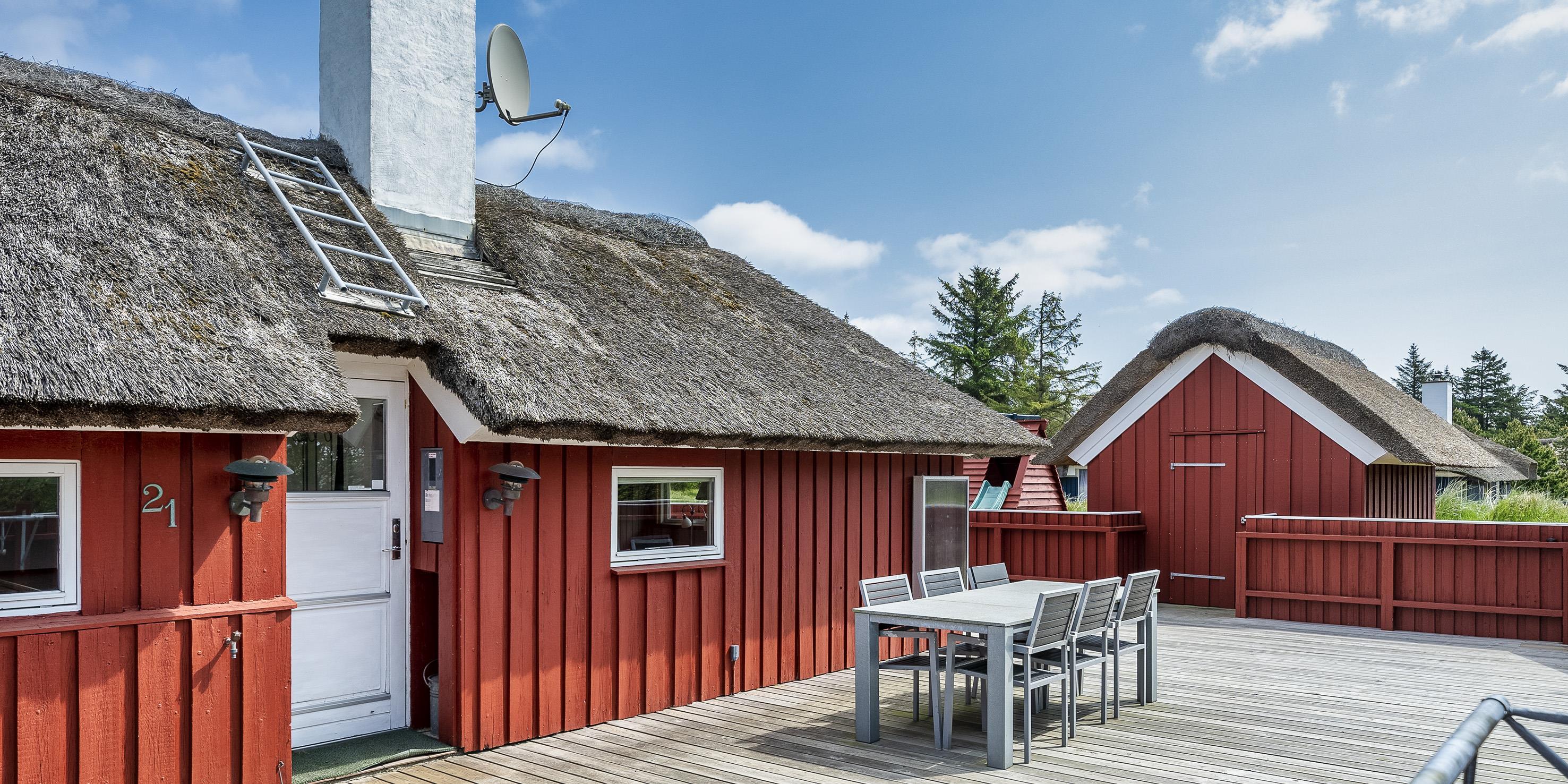 Tasteful summer house for 9 people, located on a natural plot approx. 1,500 meters from the beach. The house contains: Living room with wood-burning stove, television, Chromecast and satellite dish (no Danish programmes). Docking station for I-phone with built-in music. Kitchen with dishwasher and microwave. Large dining area with games room. Bathroom with shower/wc and spa. Washing machine and dryer. Guest toilet with shower. 4 bedrooms: DB + DB + DB + 3B. The house is partially heated by solar energy. Heat pump (air to air). Large, partially enclosed terrace with garden furniture. Play tower with swing for children. 1 dog ist allowed. Wi-Fi. Rying is not allowed! Year of construction 1988, renovated 2005.