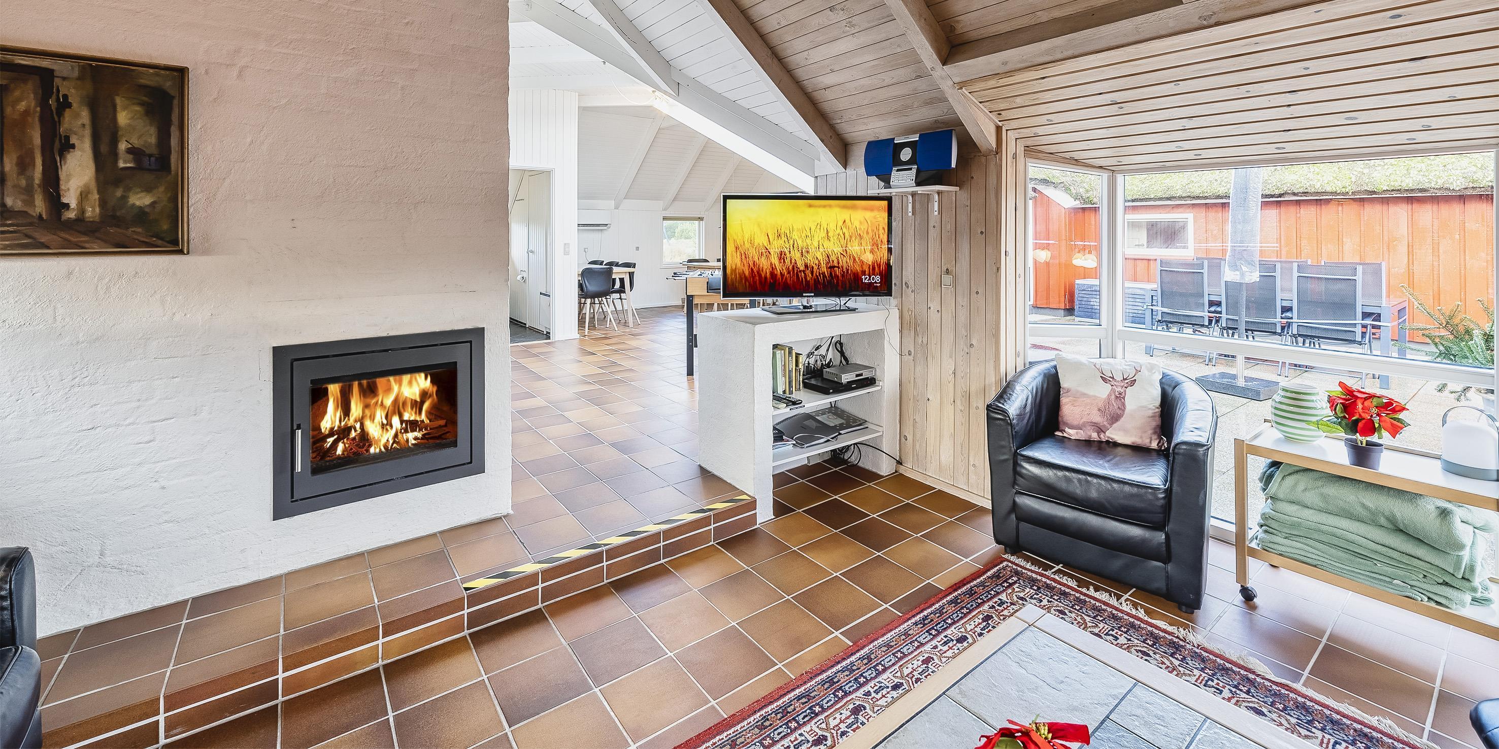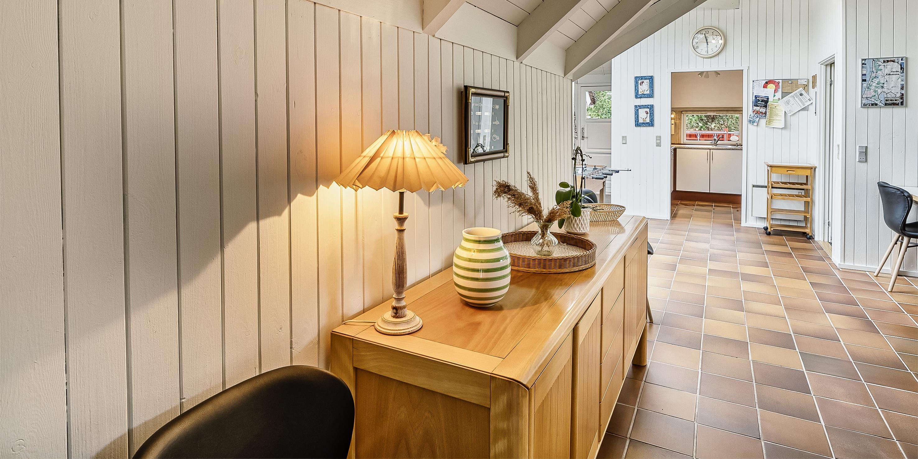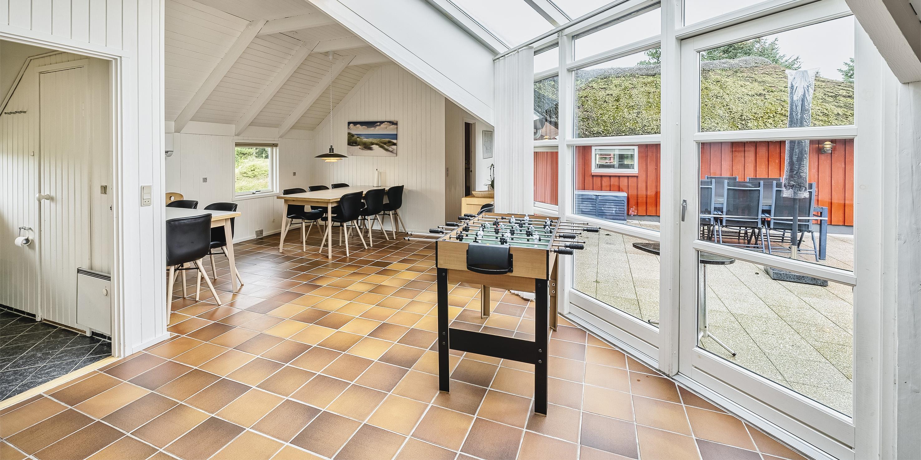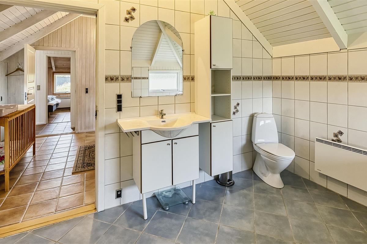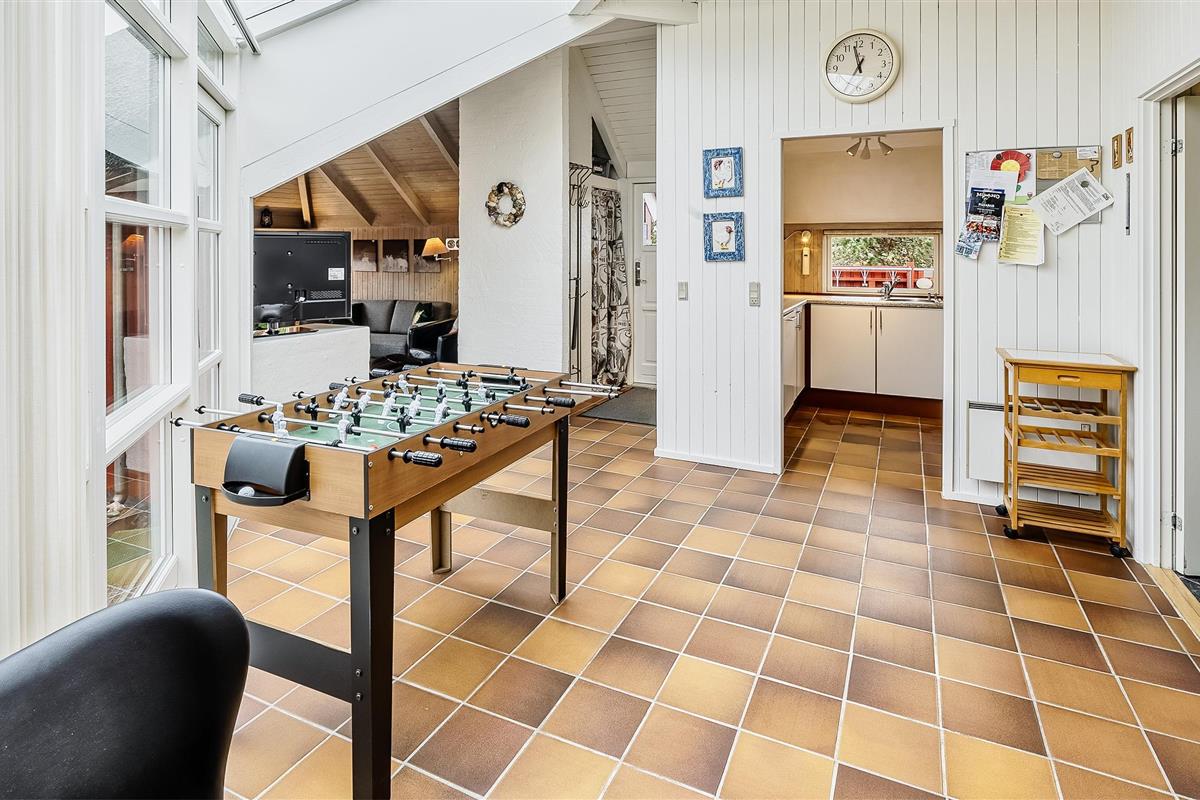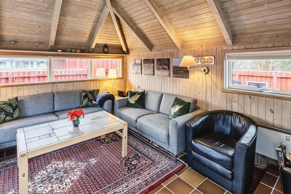 Tasteful summer house for 9 people, located on a natural plot approx. 1,500 meters from the beach. The house contains: Living room with wood-burning stove, television, Chromecast and satellite dish (no Danish programmes). Docking station for I-phone with built-in music. Kitchen with dishwasher and microwave. Large dining area with games room. Bathroom with shower/wc and spa. Washing machine and dryer. Guest toilet with shower. 4 bedrooms: DB + DB + DB + 3B. The house is partially heated by solar energy. Heat pump (air to air). Large, partially enclosed terrace with garden furniture. Play tower with swing for children. 1 dog ist allowed. Wi-Fi. Rying is not allowed! Year of construction 1988, renovated 2005.
