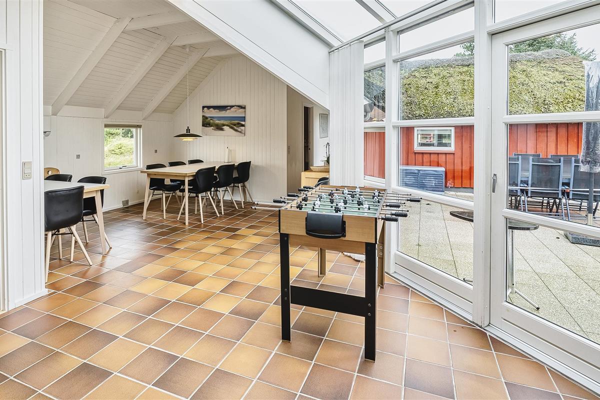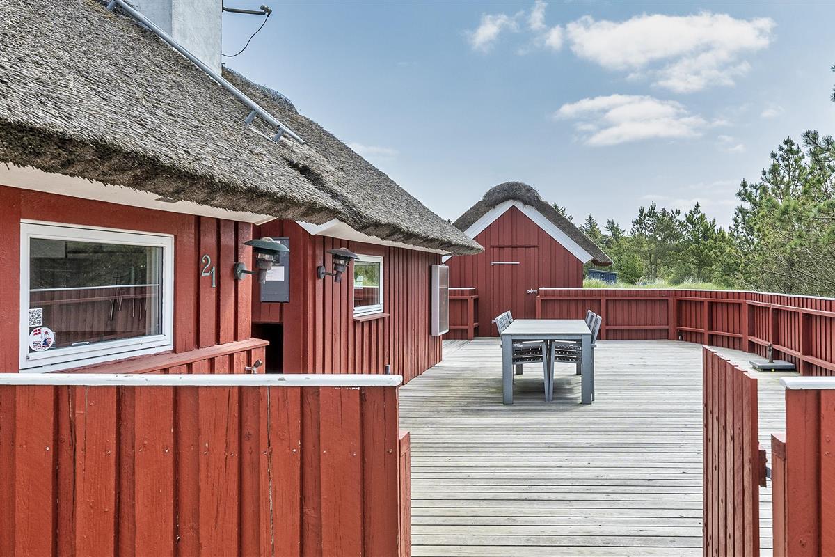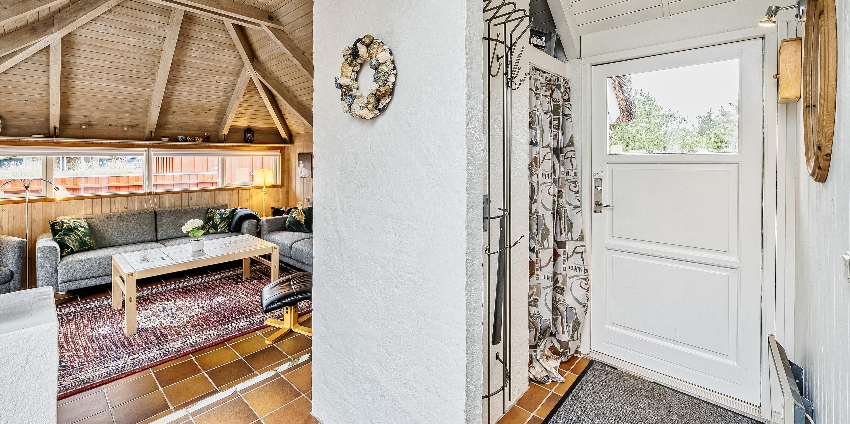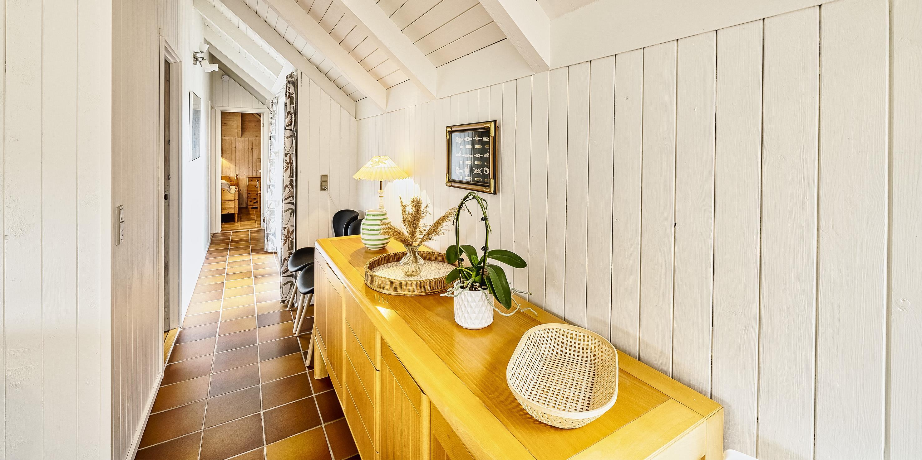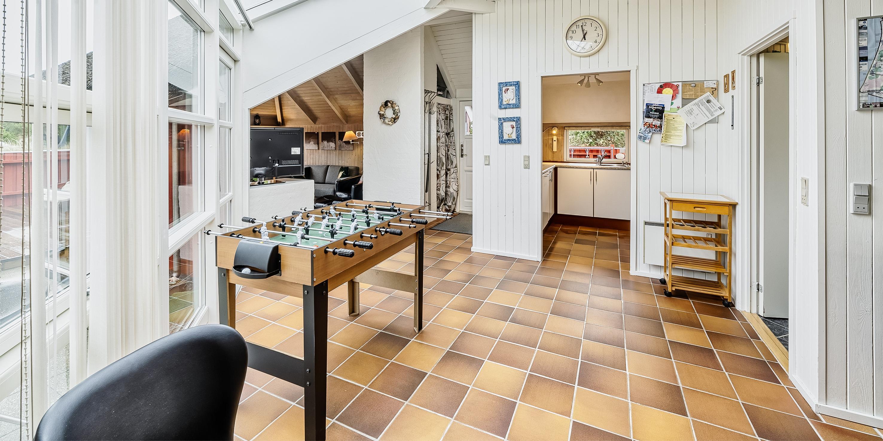 Tasteful summer house for 9 people, located on a natural plot approx. 1,500 meters from the beach. The house contains: Living room with wood-burning stove, television, Chromecast and satellite dish (no Danish programmes). Docking station for I-phone with built-in music. Kitchen with dishwasher and microwave. Large dining area with games room. Bathroom with shower/wc and spa. Washing machine and dryer. Guest toilet with shower. 4 bedrooms: DB + DB + DB + 3B. The house is partially heated by solar energy. Heat pump (air to air). Large, partially enclosed terrace with garden furniture. Play tower with swing for children. 1 dog ist allowed. Wi-Fi. Rying is not allowed! Year of construction 1988, renovated 2005.