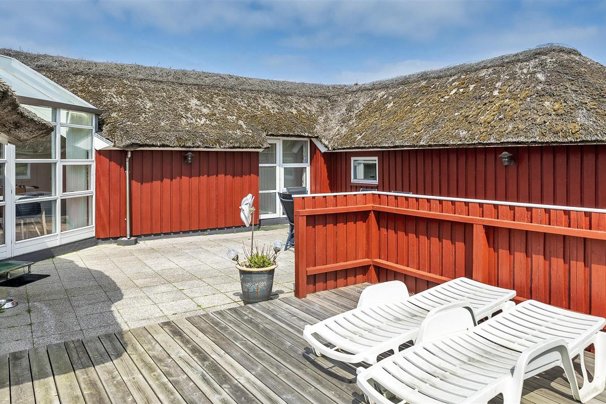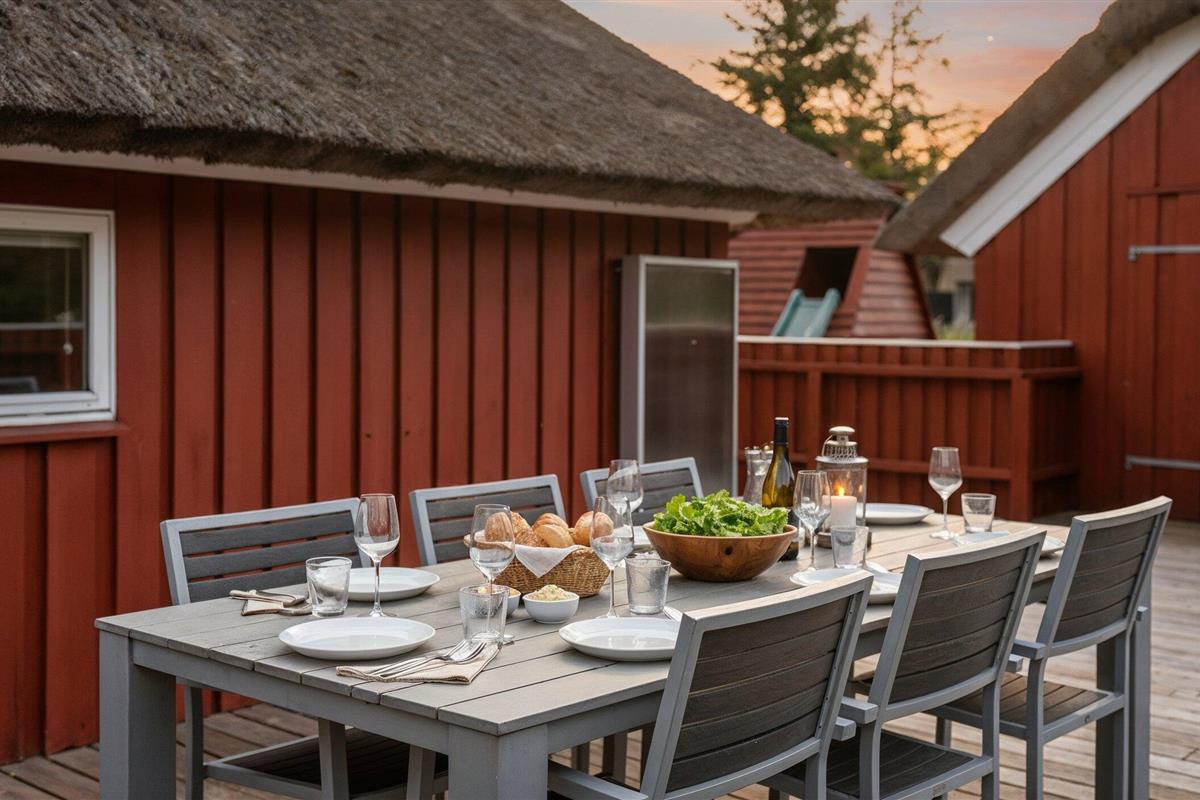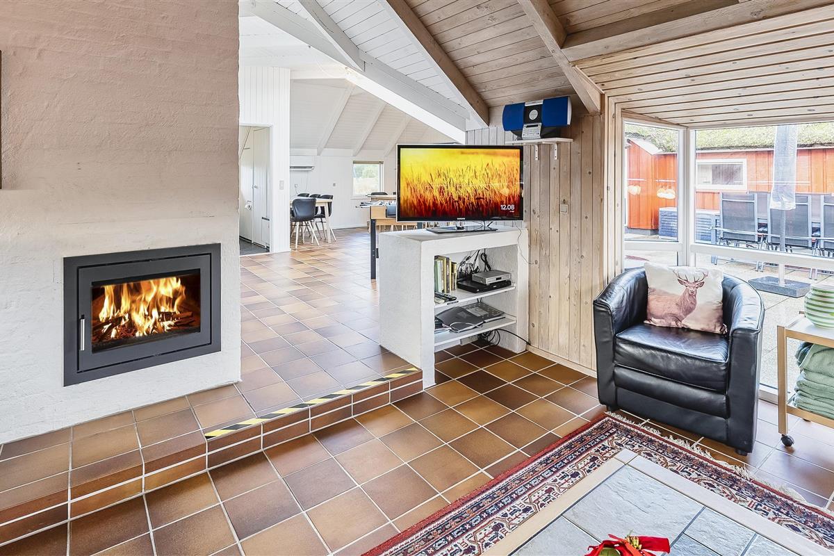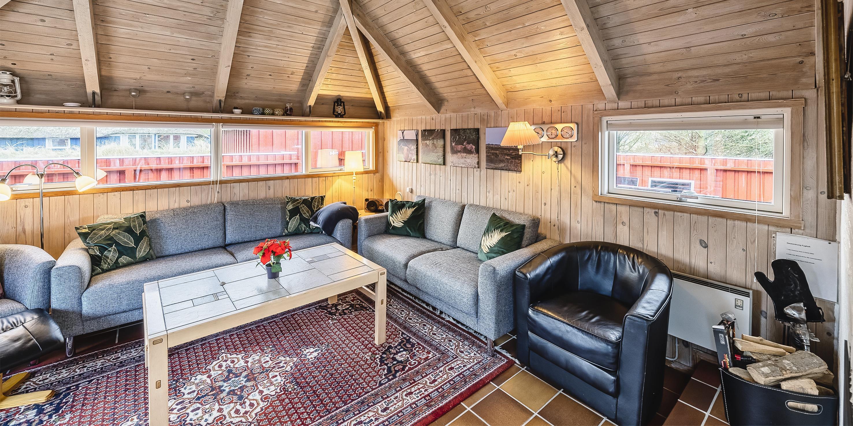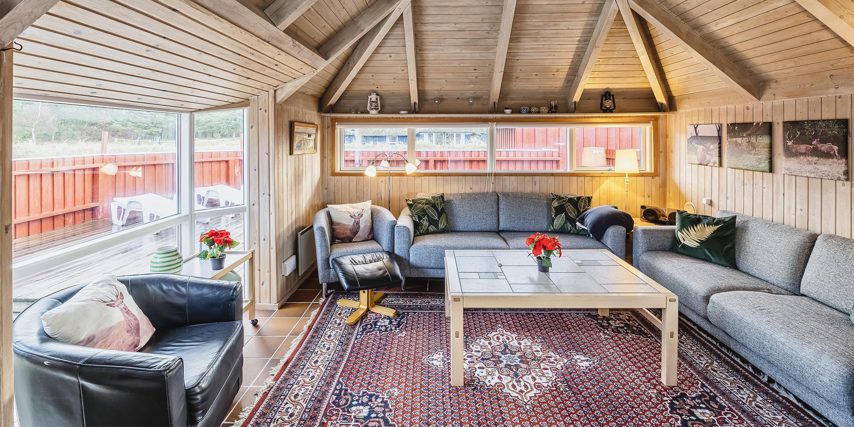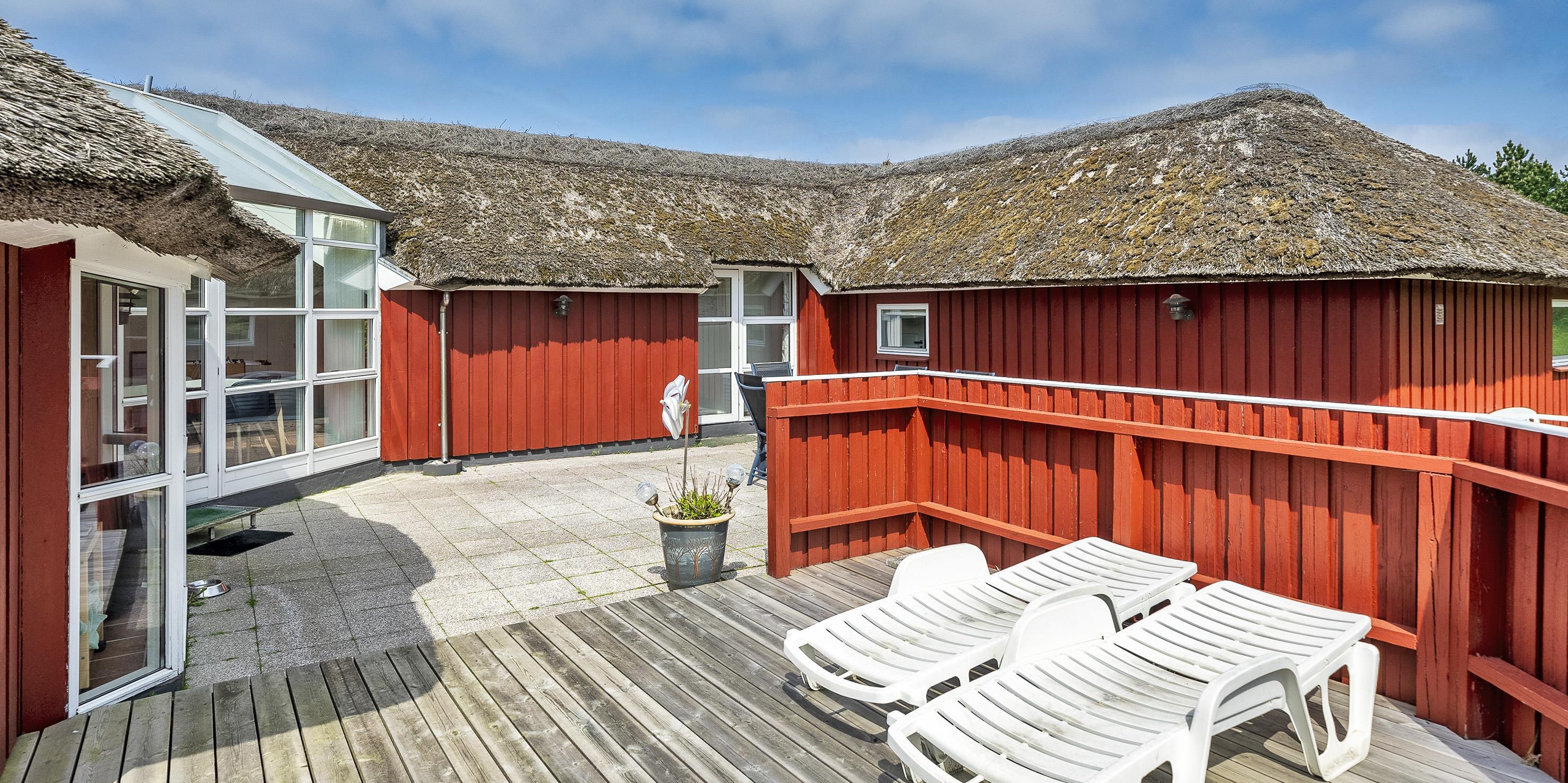 Tasteful summer house for 9 people, located on a natural plot approx. 1,500 meters from the beach. The house contains: Living room with wood-burning stove, television, Chromecast and satellite dish (no Danish programmes). Docking station for I-phone with built-in music. Kitchen with dishwasher and microwave. Large dining area with games room. Bathroom with shower/wc and spa. Washing machine and dryer. Guest toilet with shower. 4 bedrooms: DB + DB + DB + 3B. The house is partially heated by solar energy. Heat pump (air to air). Large, partially enclosed terrace with garden furniture. Play tower with swing for children. 1 dog ist allowed. Wi-Fi. Rying is not allowed! Year of construction 1988, renovated 2005.