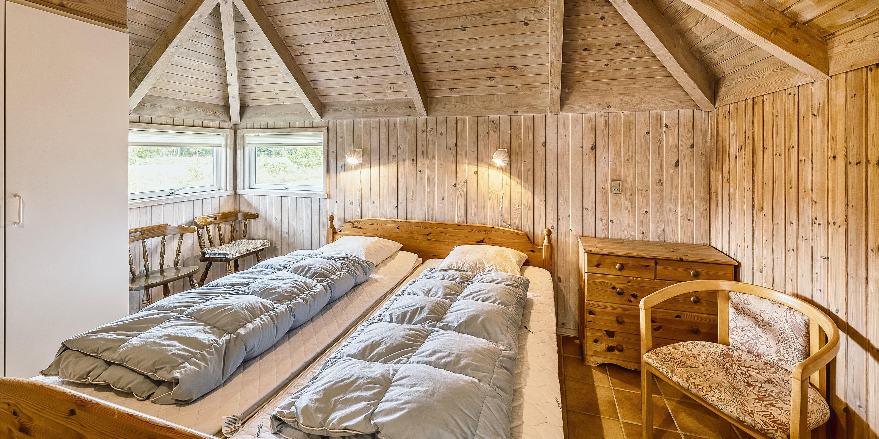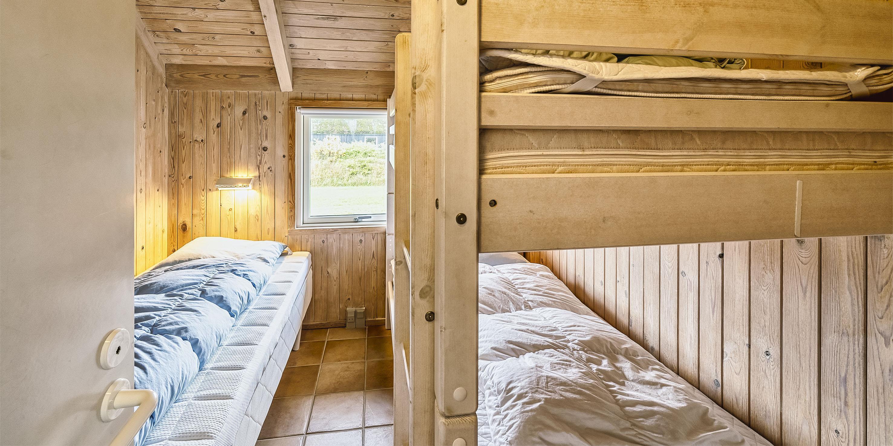 4 bedrooms - 3 bedrooms with double bed 180x200 cm. 1 with 2 single beds (90x200 cm each) and 1 bunk bed.