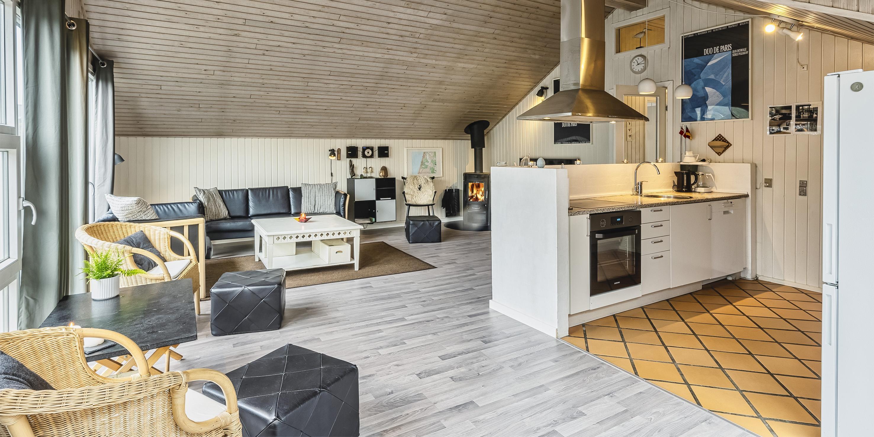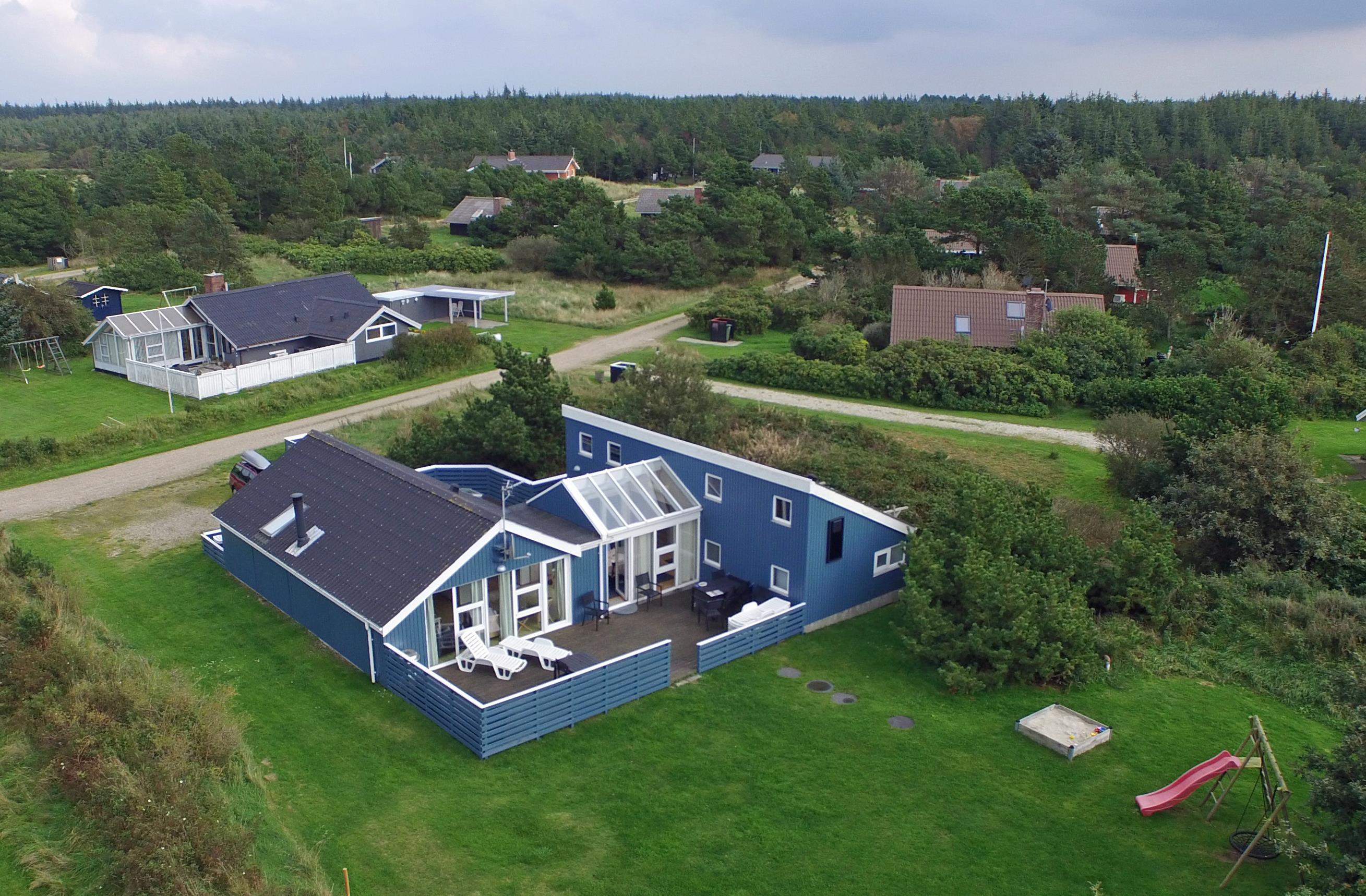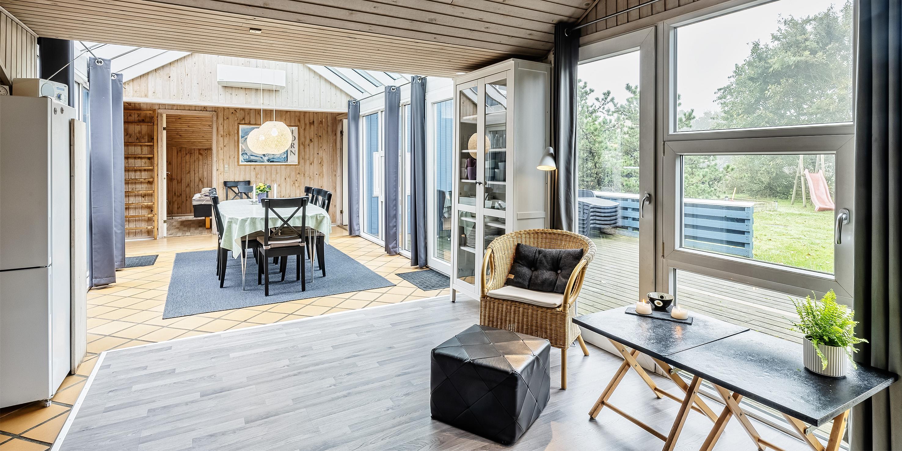 Tasteful and well-furnished cottage for 9 people, approx. 1,200 meters from the beach. Living room with wood-burning stove, television with danish programs and satellite dish. Open kitchen with dishwasher, microwave and small freezer. 5 bedrooms: DB + DB + DB + 2B + B. 2 bathrooms with shower/wc, one of which has a standing water spa and sauna. Washing machine and dryer. Chromecast. Wireless Internet access. Partially enclosed terrace, swing and sandbox. Smoking is not allowed. Year of construction 1974, renovated 2004.