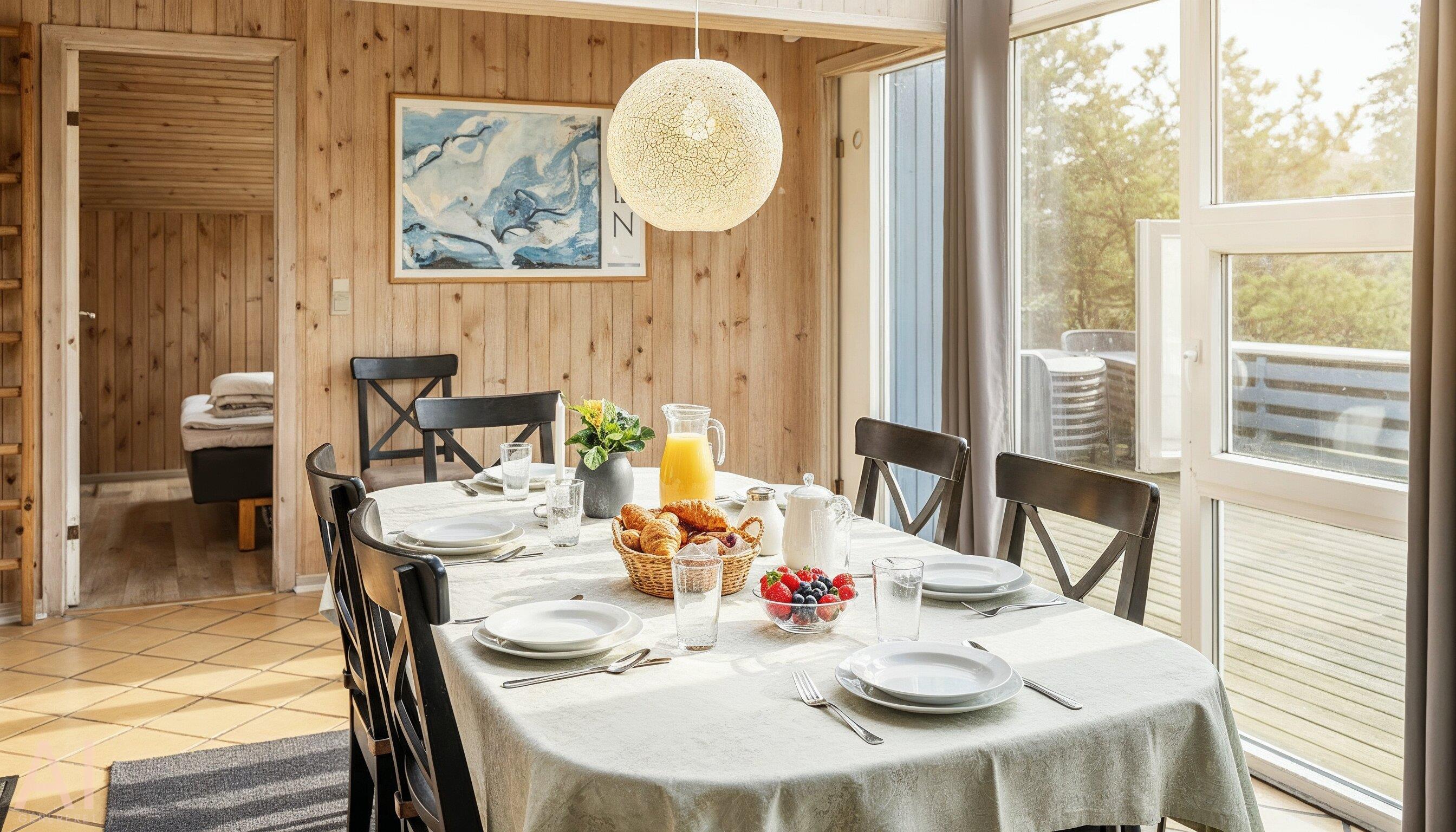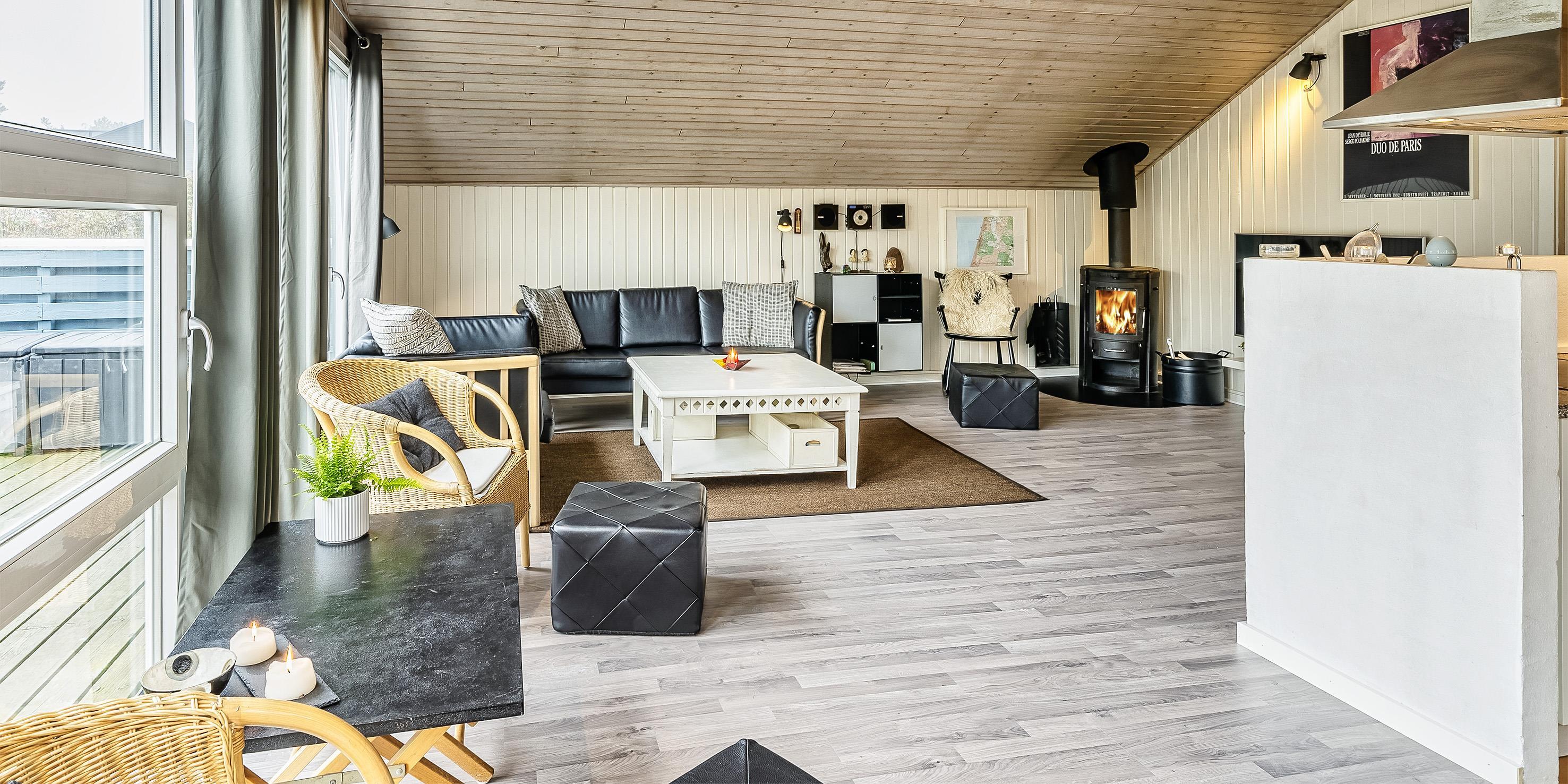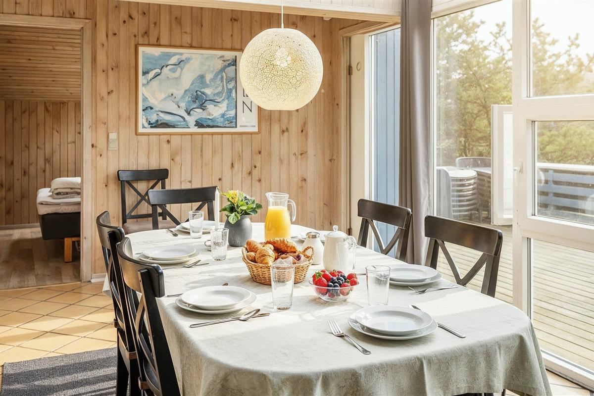 Tasteful and well-furnished cottage for 9 people, approx. 1,200 meters from the beach. Living room with wood-burning stove, television with danish programs and satellite dish. Open kitchen with dishwasher, microwave and small freezer. 5 bedrooms: DB + DB + DB + 2B + B. 2 bathrooms with shower/wc, one of which has a standing water spa and sauna. Washing machine and dryer. Chromecast. Wireless Internet access. Partially enclosed terrace, swing and sandbox. Smoking is not allowed. Year of construction 1974, renovated 2004.