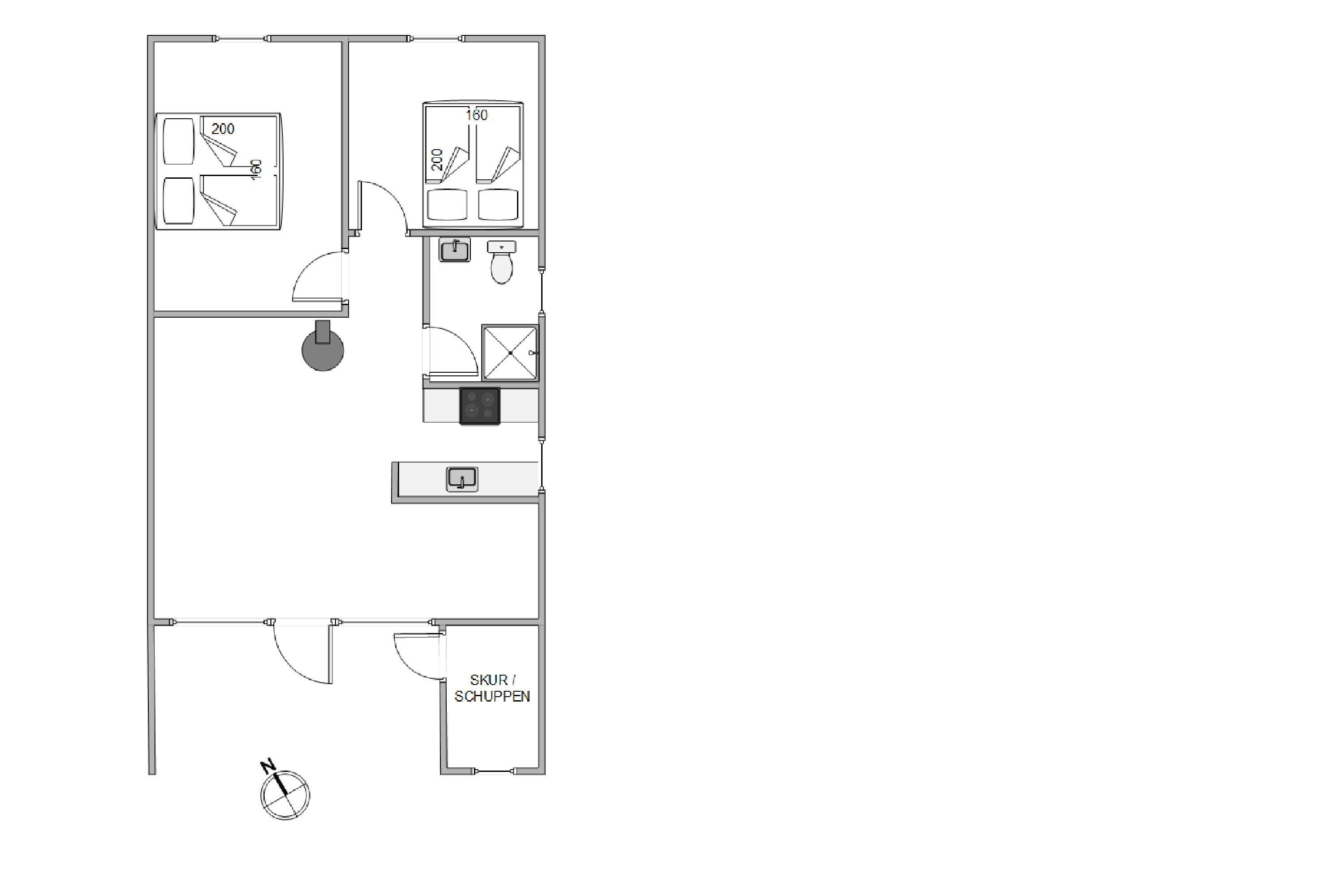 The holiday home has two bright and welcoming bedrooms with double beds where you can rest and sleep in. The compact bathroom provides everything you need for your holiday. The heat pump is the best way to warm the house, saving both energy and costs.