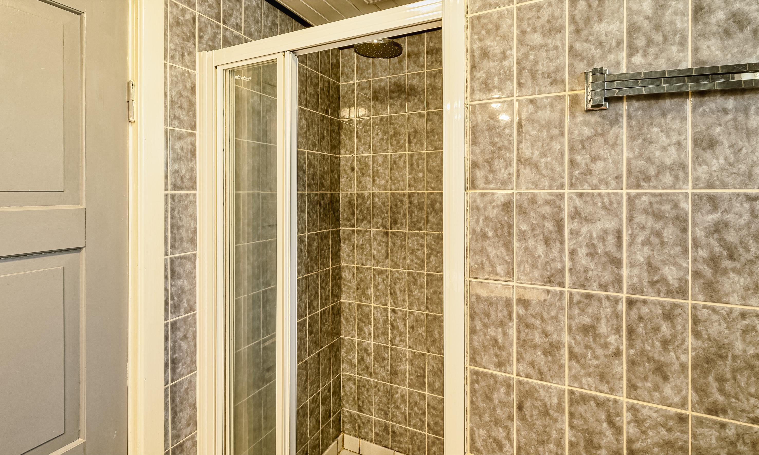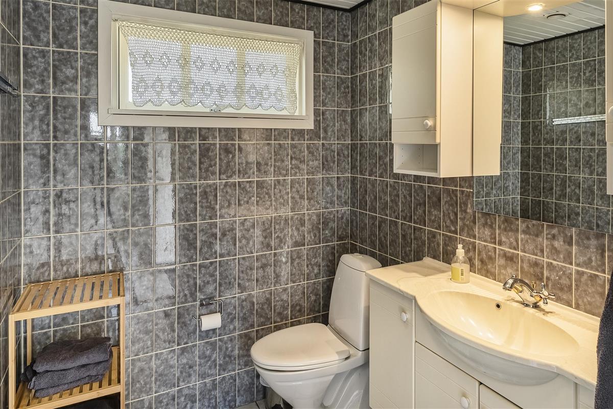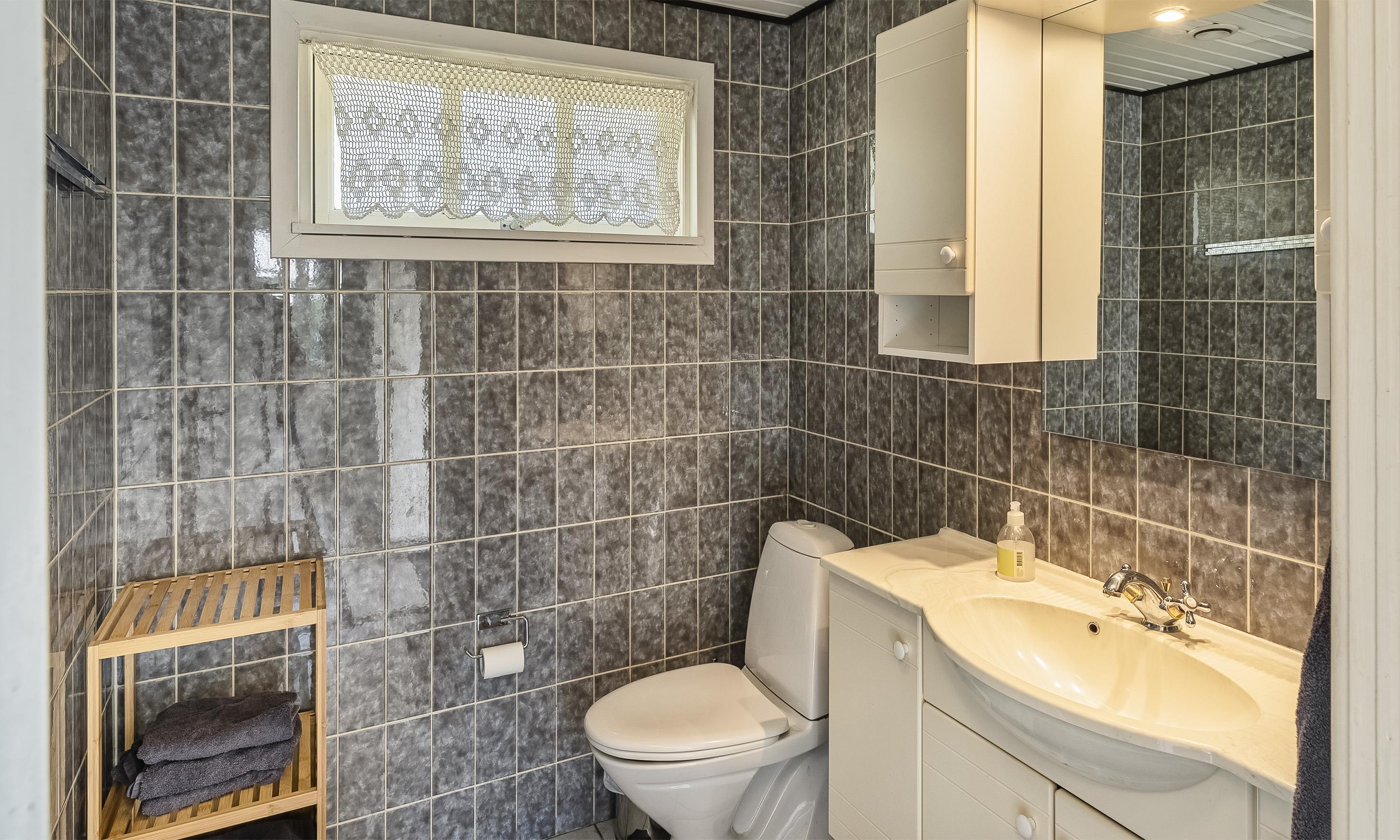 The bathroom is equipped with a toilet, sink, shower, and underfloor heating.