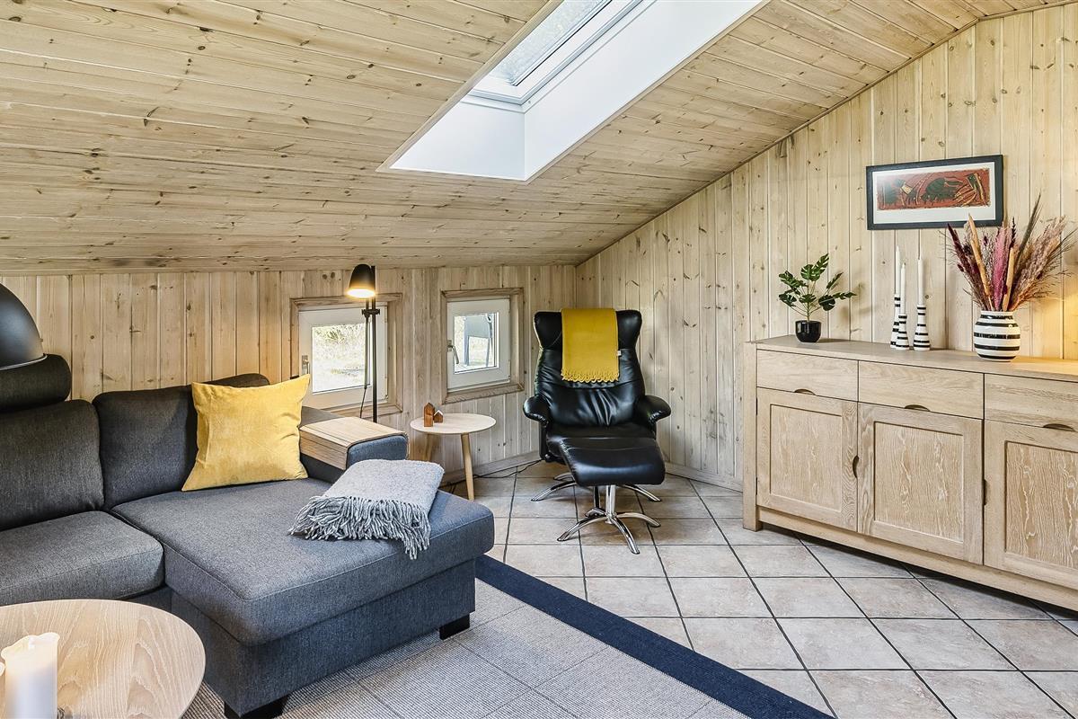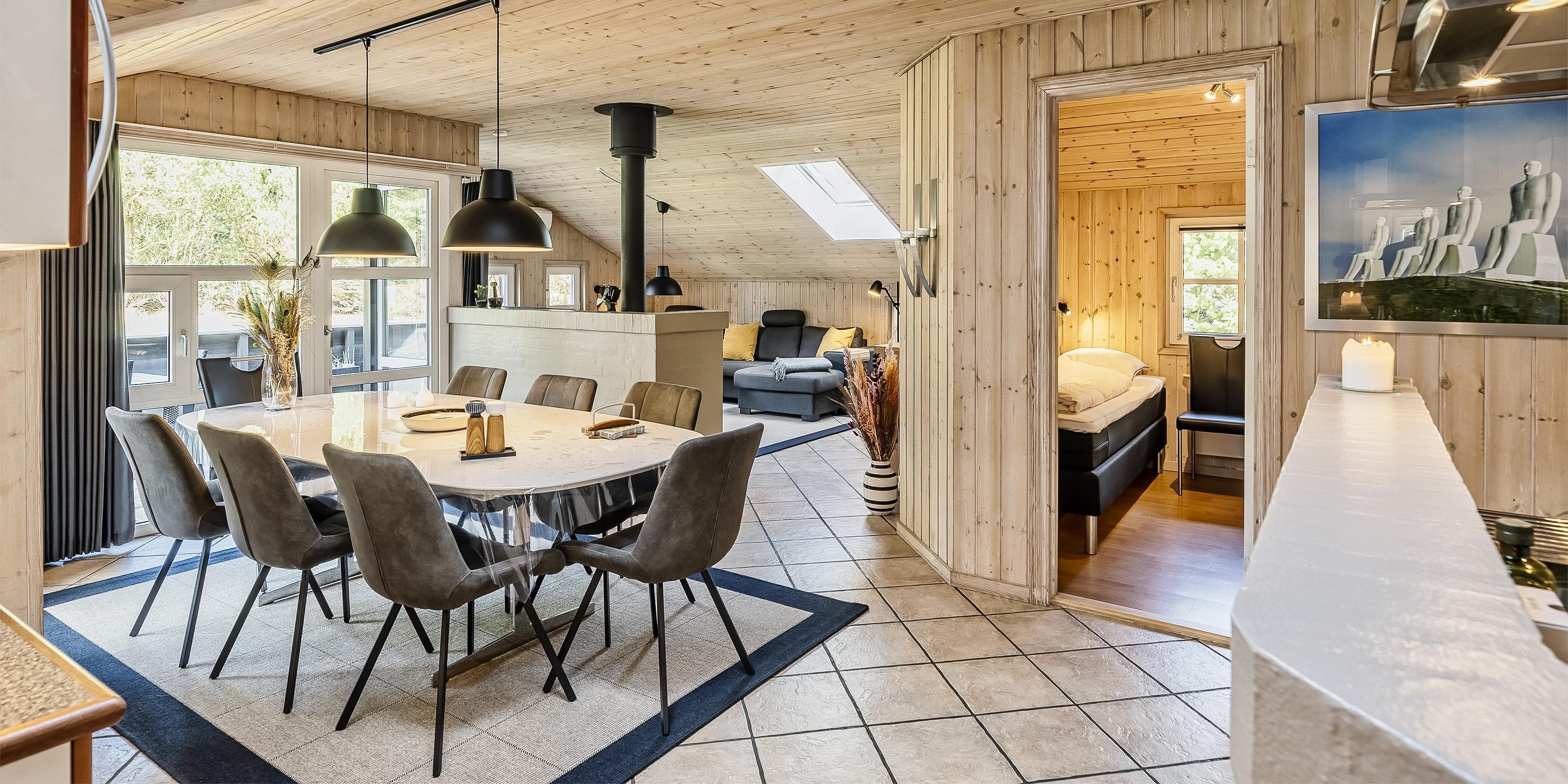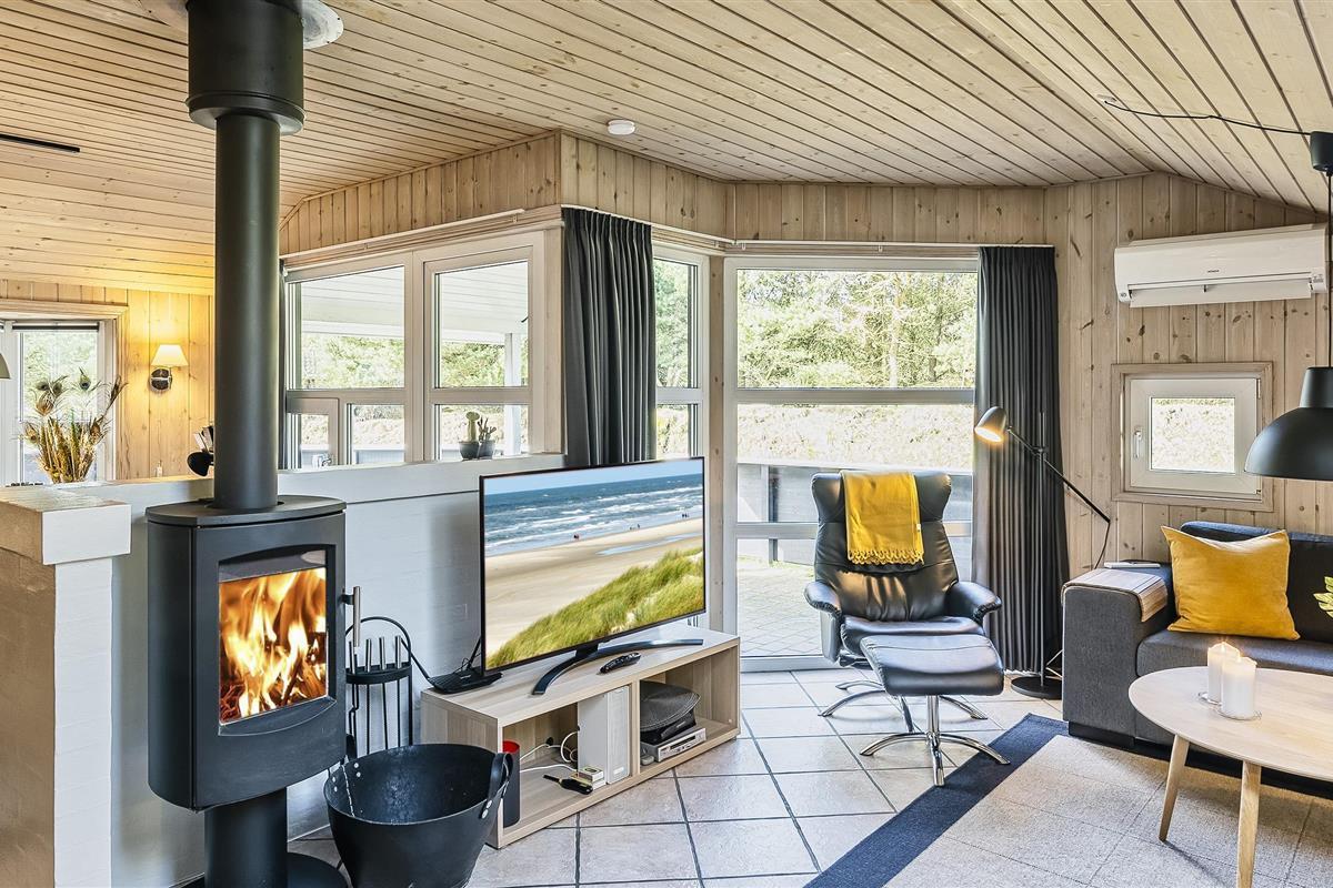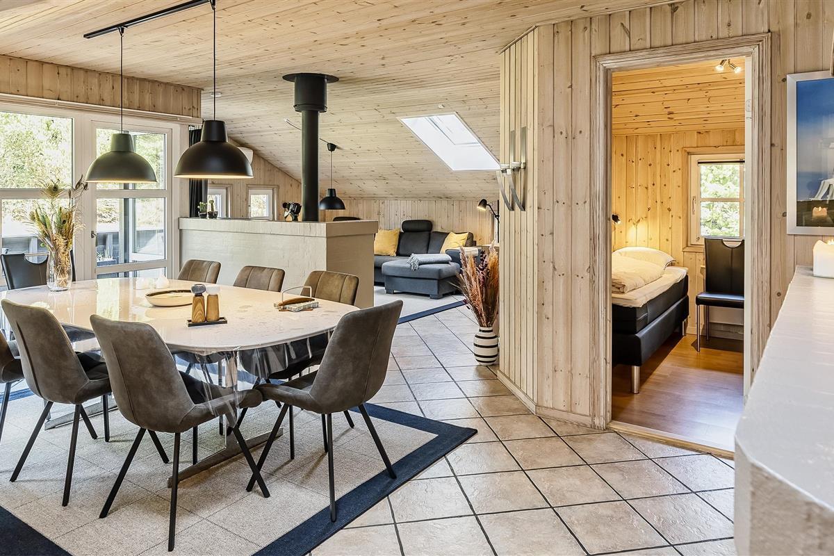 Tasteful cottage for 8 people, approx. 1,000 meters from the beach. Living room with wood-burning stove, television and satellite dish (Stofa summer house package). Open kitchen with dishwasher, microwave and dining area. 4 bedrooms: DB + DB + DB +2B. Large bathroom with shower/wc, spa, sauna and changing table. Guest toilet with shower. Additional room with washing machine and dryer. Heat pump. Wireless internet access. Pets are not allowed. Smoking is not allowed! Terrace as well as a shelter for sleeping and cozying up. Carport. Year of construction 2001.