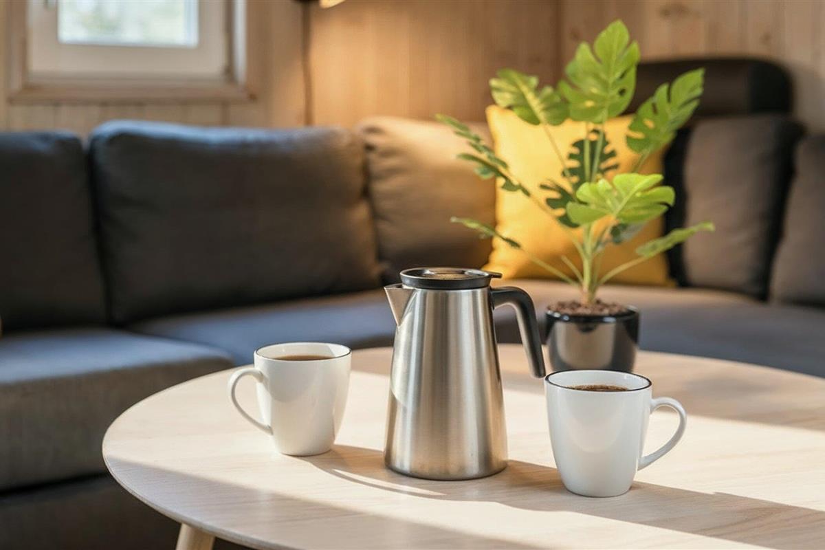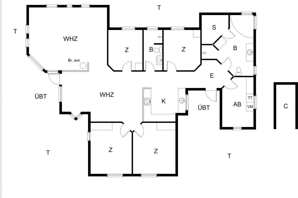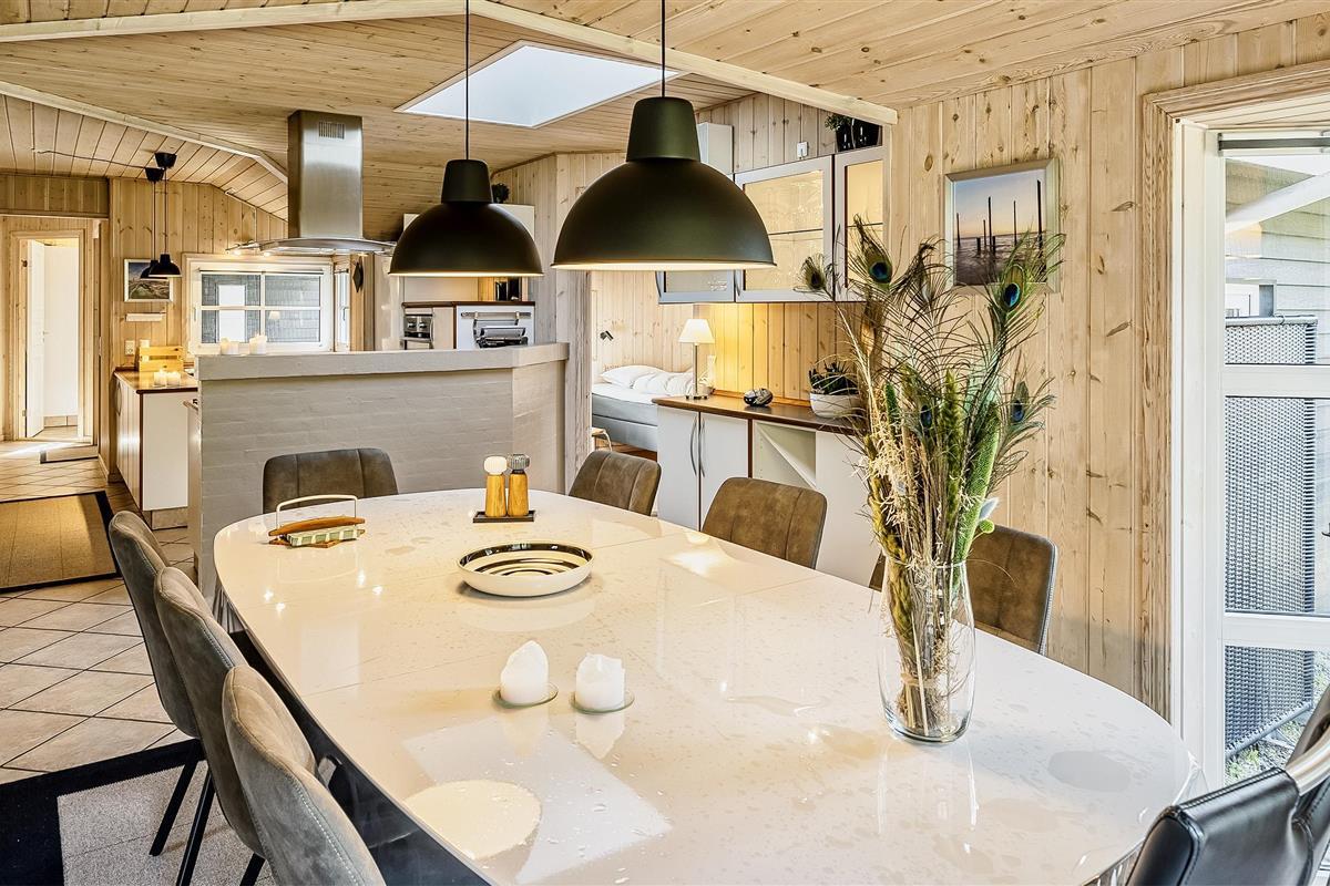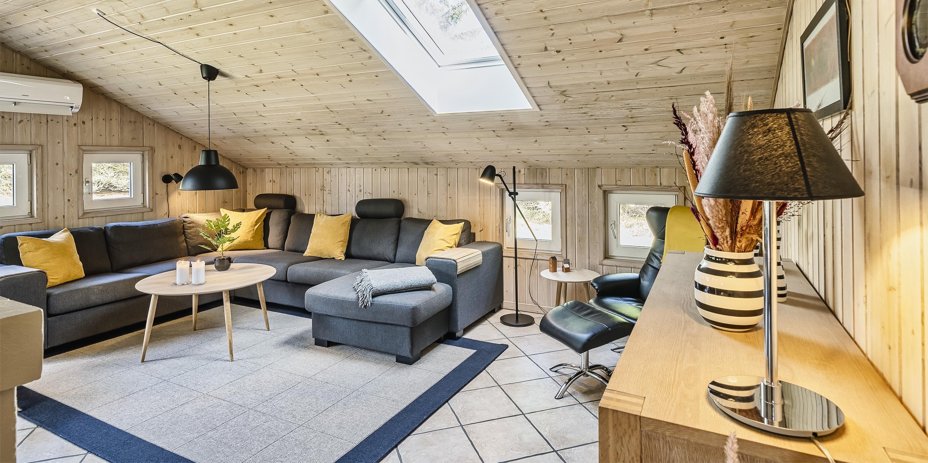 Tasteful cottage for 8 people, approx. 1,000 meters from the beach. Living room with wood-burning stove, television and satellite dish (Stofa summer house package). Open kitchen with dishwasher, microwave and dining area. 4 bedrooms: DB + DB + DB +2B. Large bathroom with shower/wc, spa, sauna and changing table. Guest toilet with shower. Additional room with washing machine and dryer. Heat pump. Wireless internet access. Pets are not allowed. Smoking is not allowed! Terrace as well as a shelter for sleeping and cozying up. Carport. Year of construction 2001.