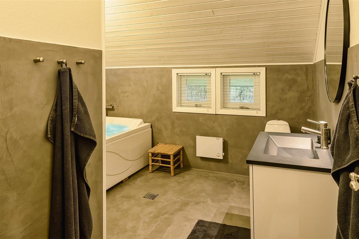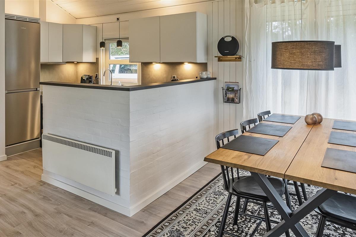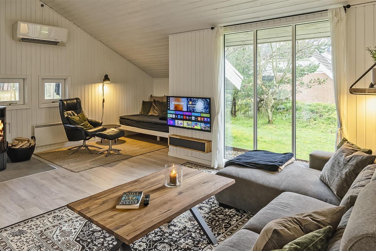 Tasteful summer house for 6 people, located on a partially enclosed plot close to the forest, approx. 2,000 meters from the beach. Living room with wood-burning stove, television with stove cottage package. Wireless Internet access. Open kitchen with dishwasher. Bathroom with shower/wc, spa and sauna. Guest toilet with shower. 3 bedrooms: Db + 2B + 2B. Large terrace. Swing. Non-smoking house. 1 animal allowed. No youth groups. Year of construction 1991. Renovated 2024.