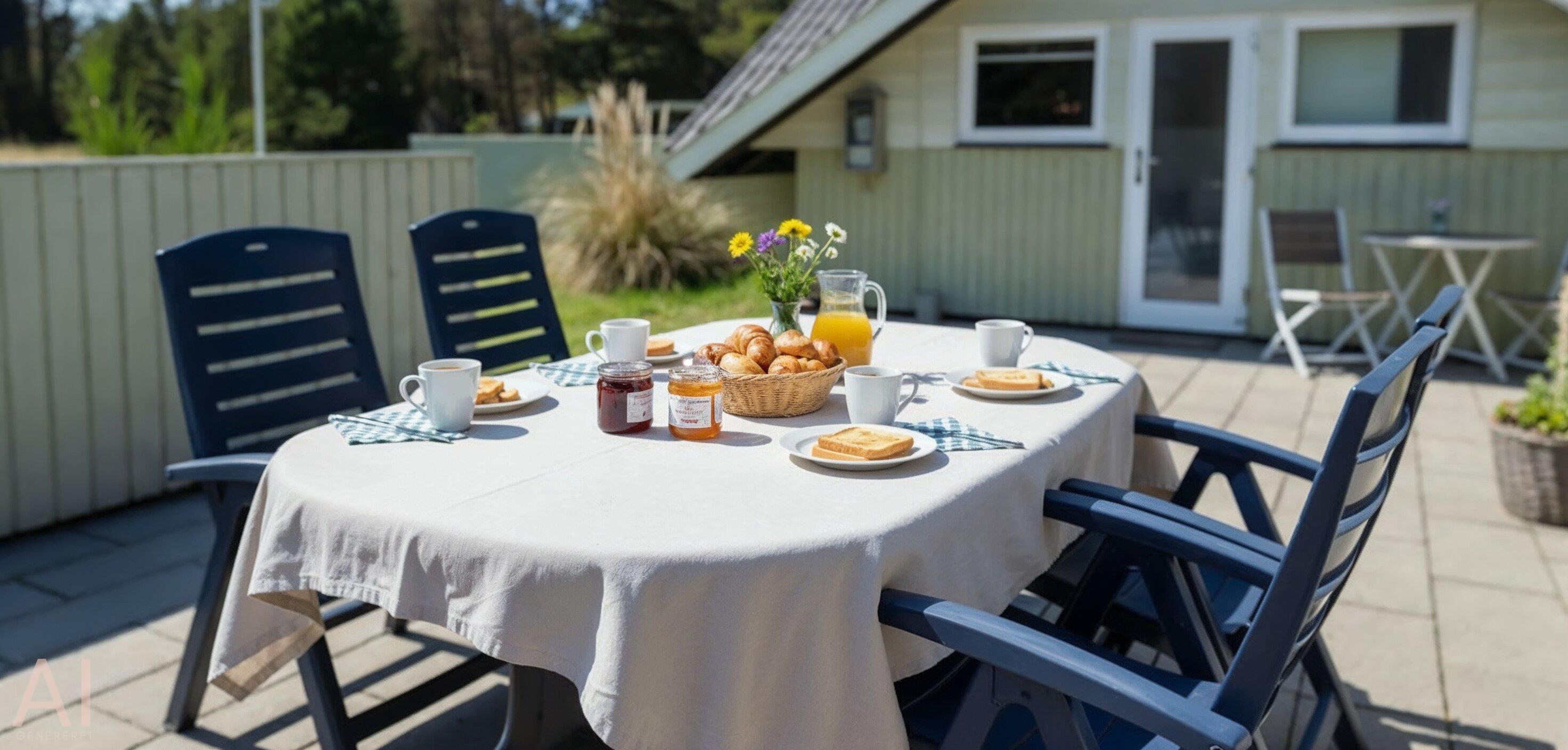 Cozy rustic cottage for 6 people, located on scenic grounds, approx. 1,500 meters from the beach. Living room with wood-burning stove, television and satellite dish and open kitchen with microwave and fridge-freezer. Danish programs via Boxer TV. Bathroom with shower/wc. 3 bedrooms: DB + DB + 2B. The washing machine. Sandbox and swing. Partially enclosed terrace. Pets are not allowed! Smoking is not allowed. Wireless internet access. Year of construction 1976.