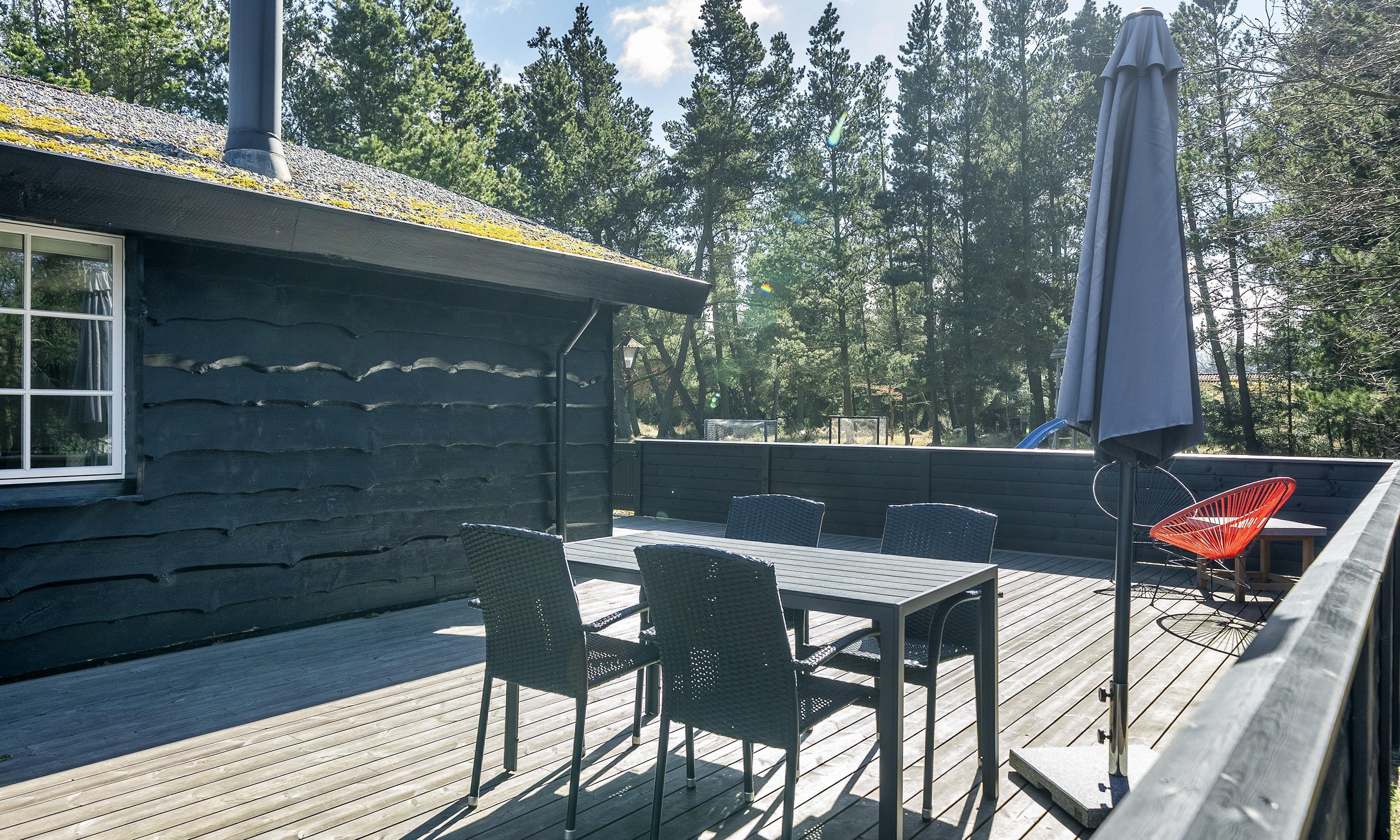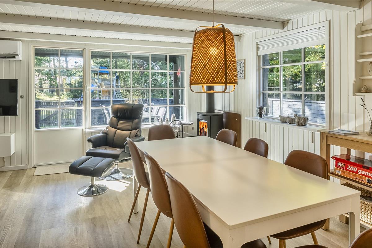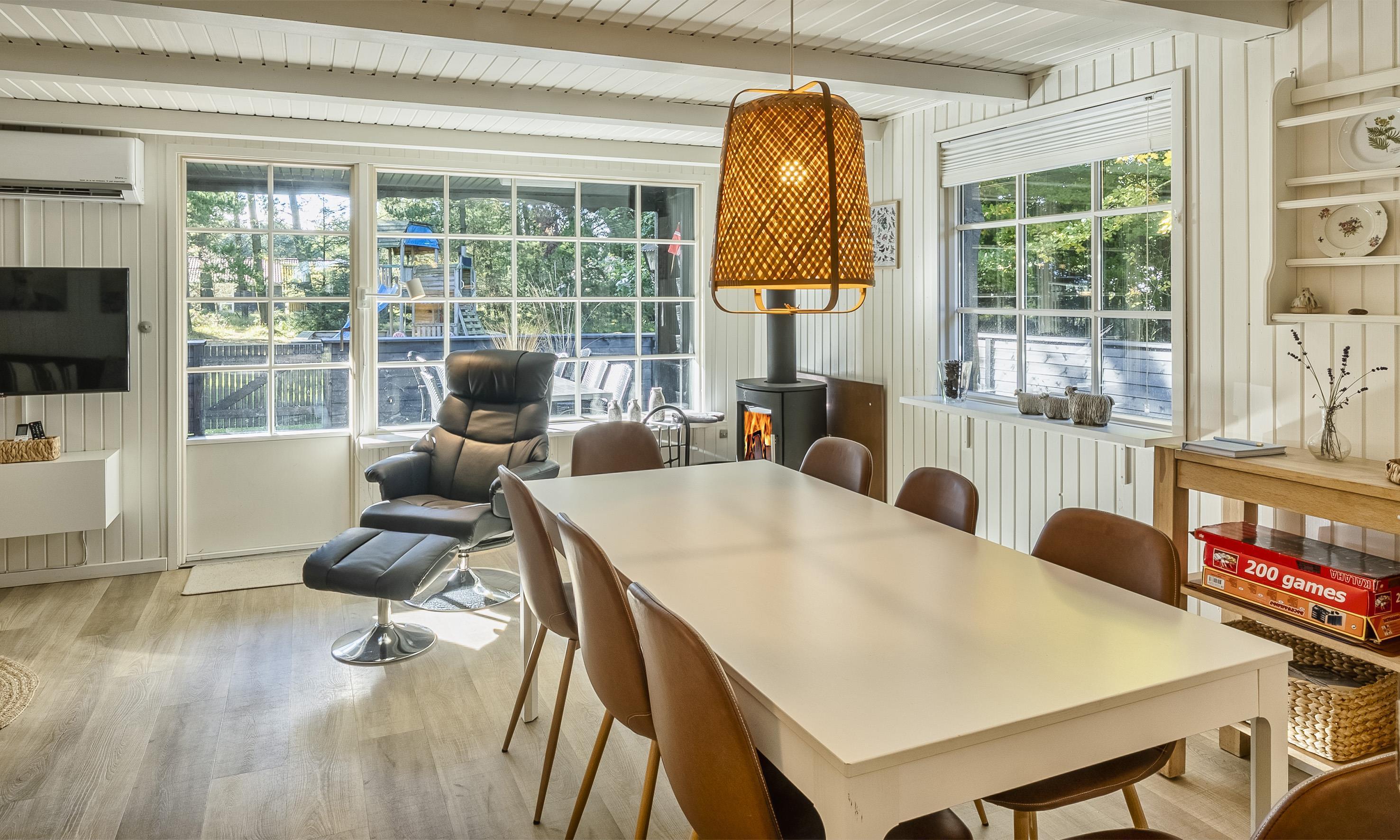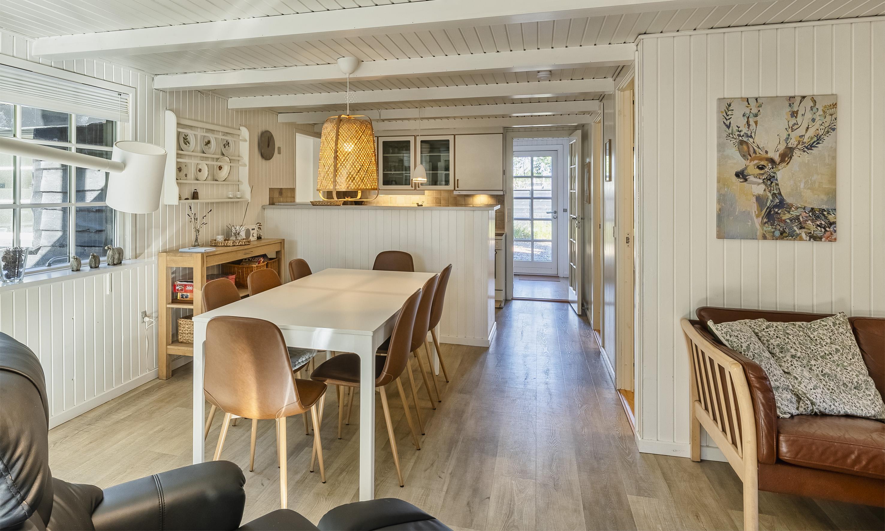 Tasteful cottage for 8 people, 4 adults and 4 children. The cottage in a lovely natural area surrounded by trees, and just 2 km from the beach. There is a short distance to grocery stores, minigolf and restaurants within 800 metres. The cottage is close to the forest, where you can enjoy a nice walk and see one of the area's many red deers.