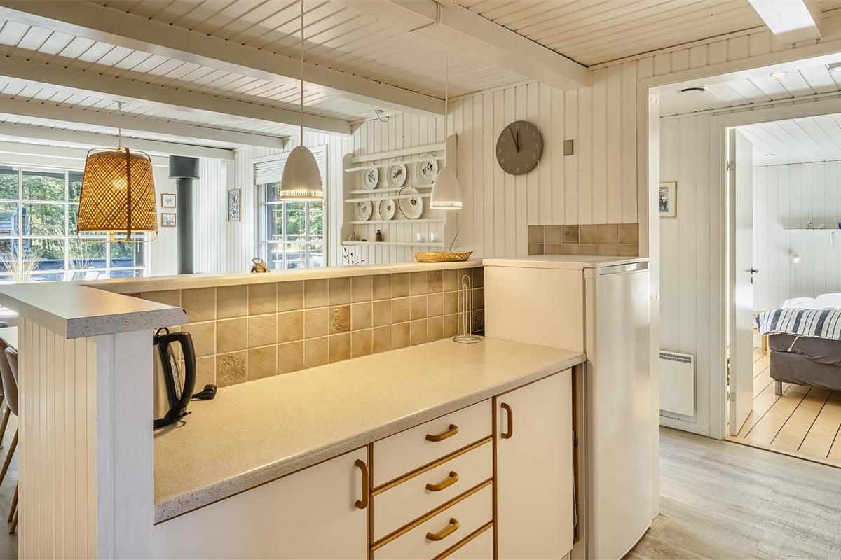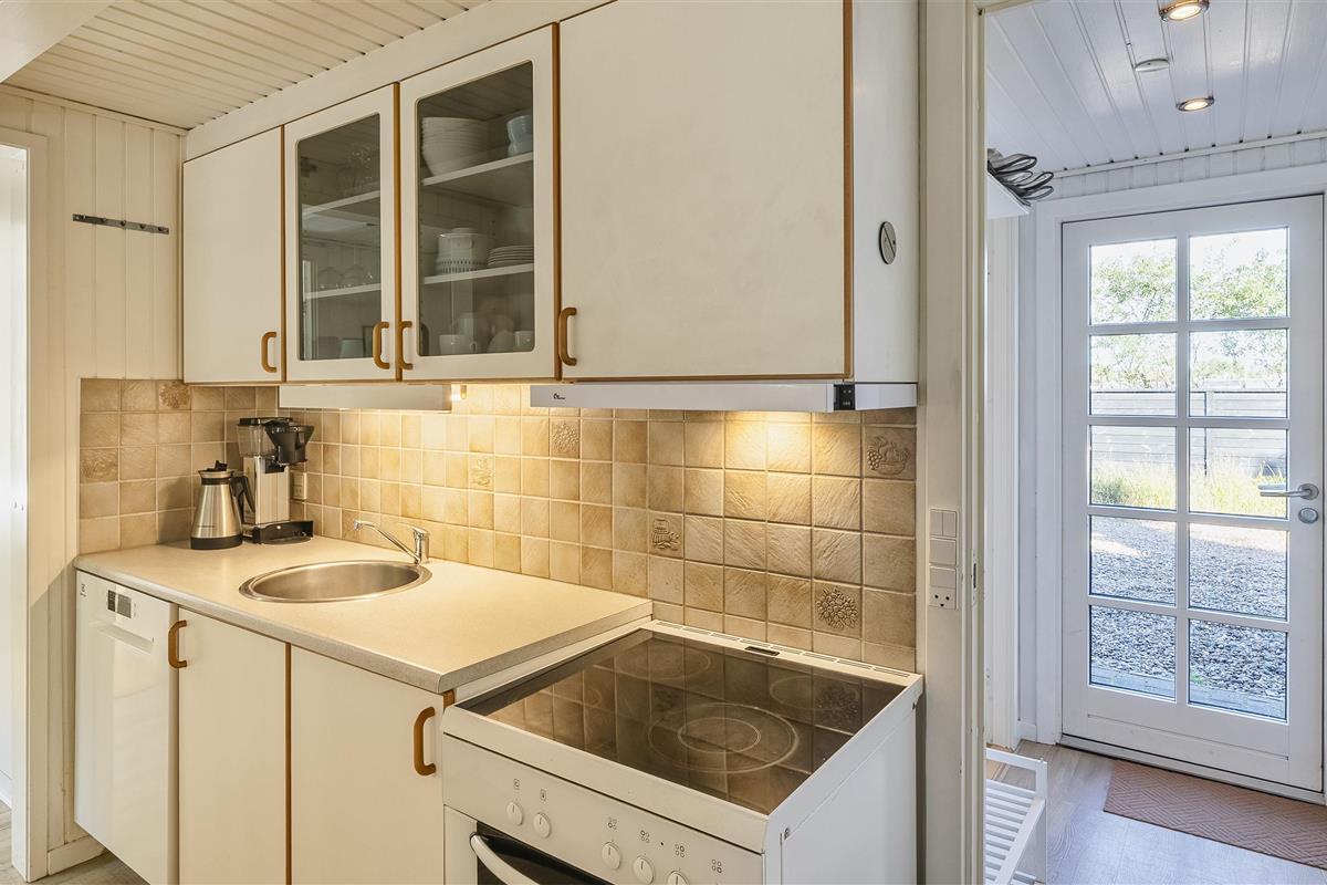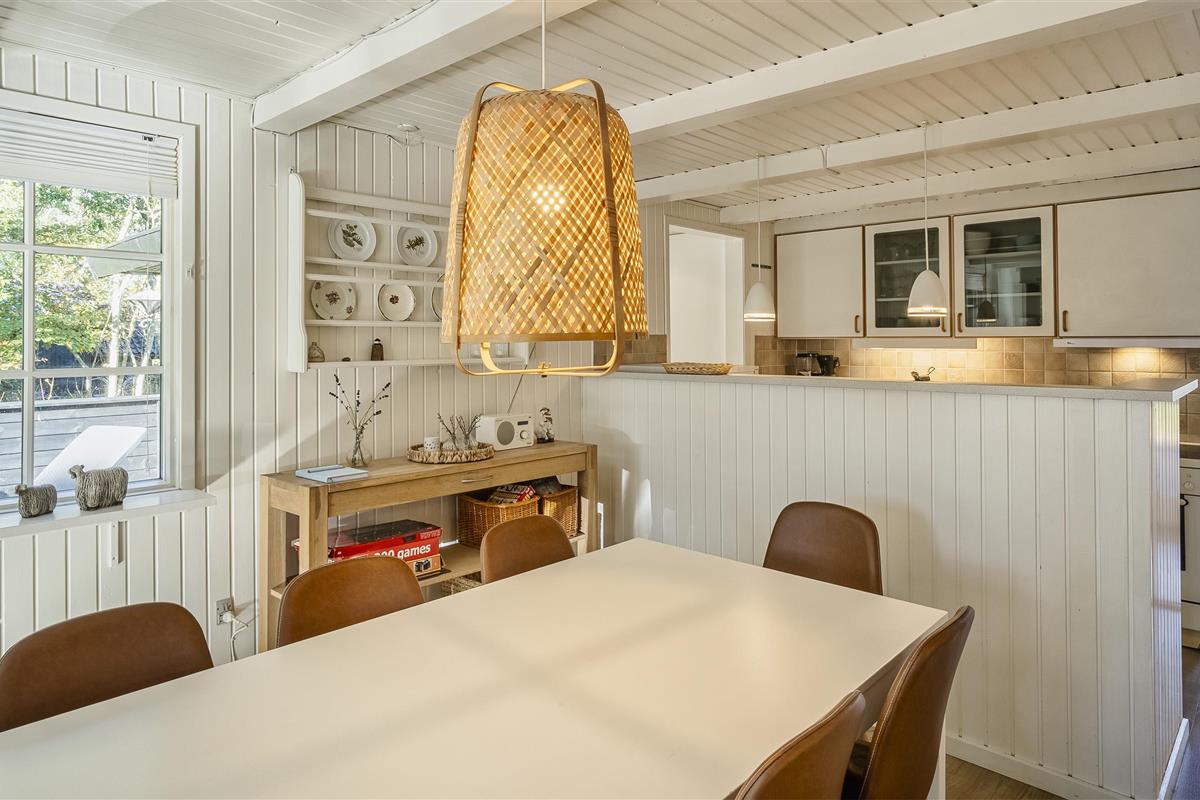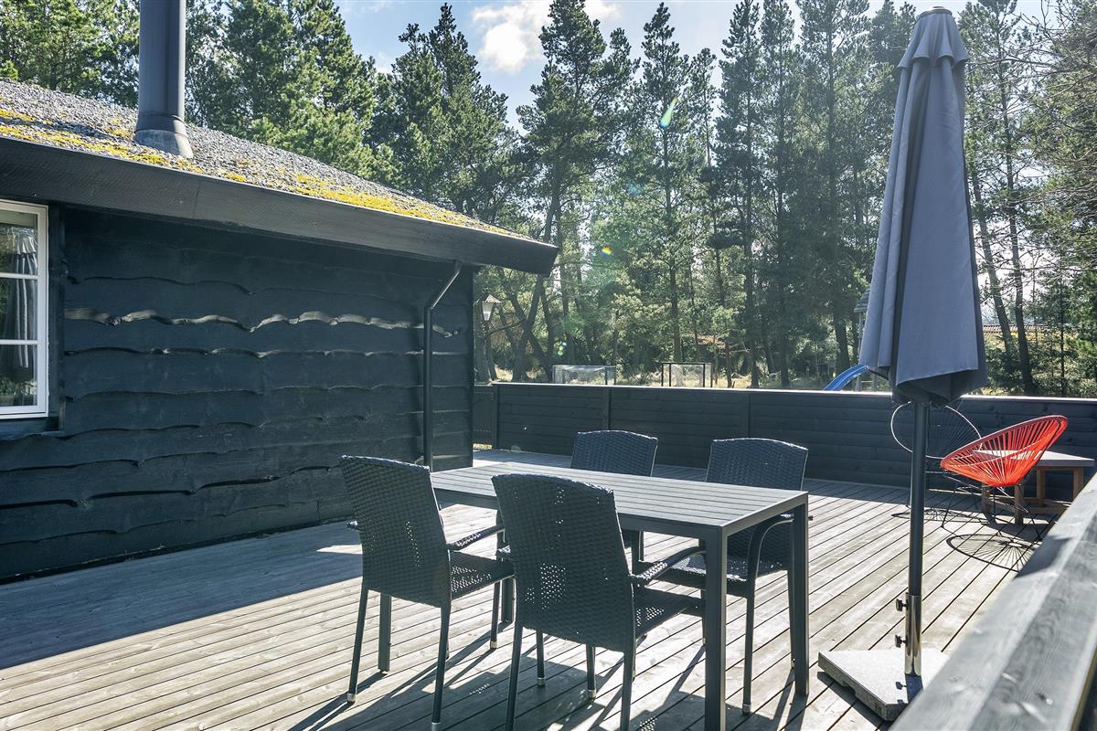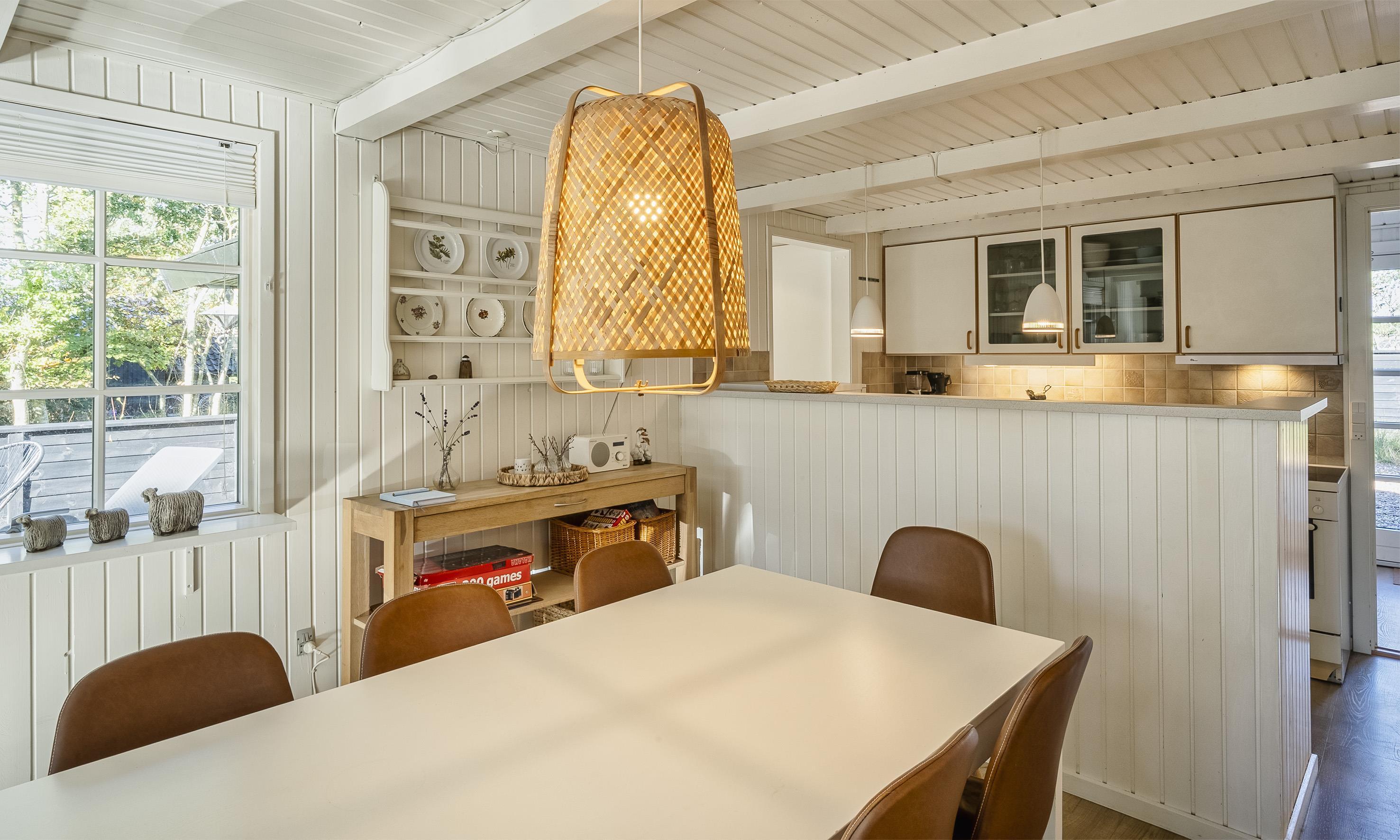 The house contains: Entrance hall, distribution corridor. From the distribution corridor you enter the house's large living room. The living room is furnished with an open kitchen with half a wall facing the dining room. Cozy living room with fireplace, television with Google chrome cast, and satellite. The open kitchen has a microwave, dishwasher and fridge/freezer. From the kitchen you come across an extension that contains a small hallway with access to the terrace, a large bedroom with a double bed and wardrobes, a bathroom with shower/wc, sink and heated towel rail. 4 bedrooms: DB + DB + BB + BB. From the entrance there is a bedroom with 1 three quarter bed, and a bathroom with shower/wc and washing arrangement. Combined washing machine with tumble dryer. From the dining room there are also 3 bedrooms, 1 bedroom with double bed and 2 bedrooms with 1 bunk bed (short). Wi-Fi. Large closed terrace, with a small piece of covered terrace. Smoking is not allowed. Free access to fitness centre in Vejers and Blaavand in 2025. Year of construction 1969, renovated 2006.