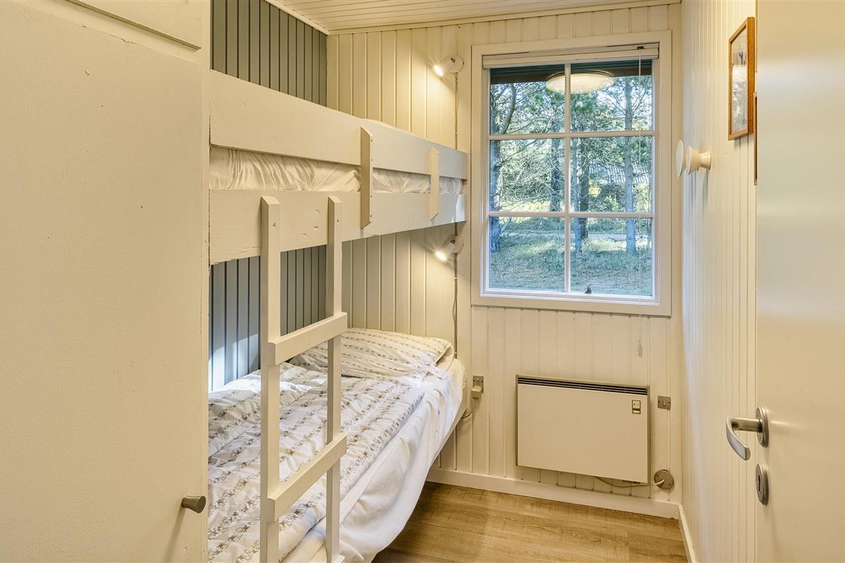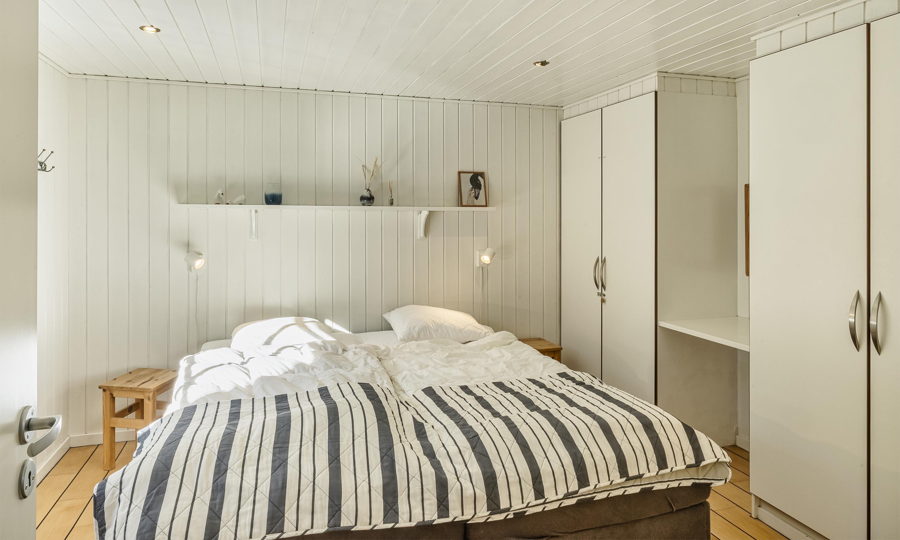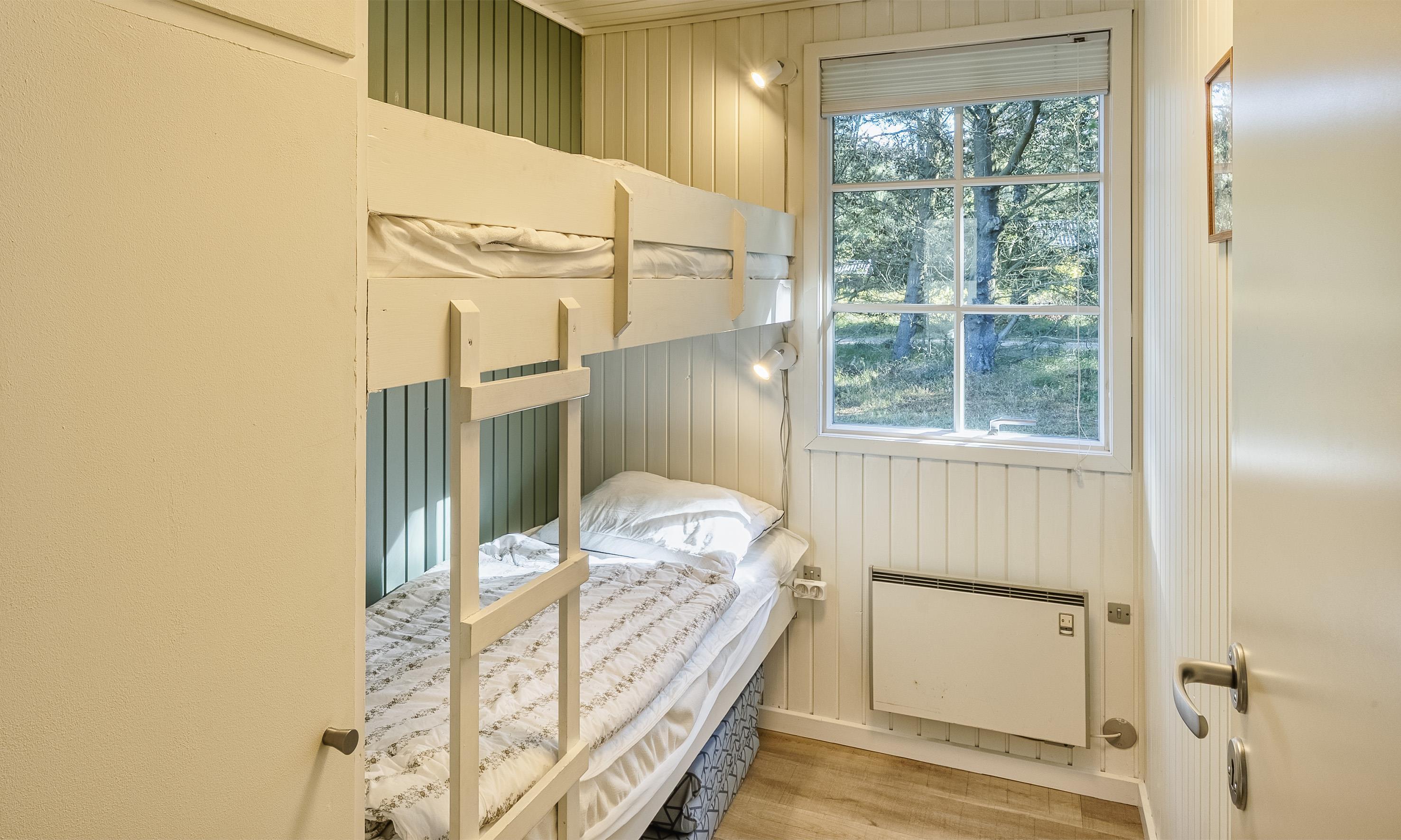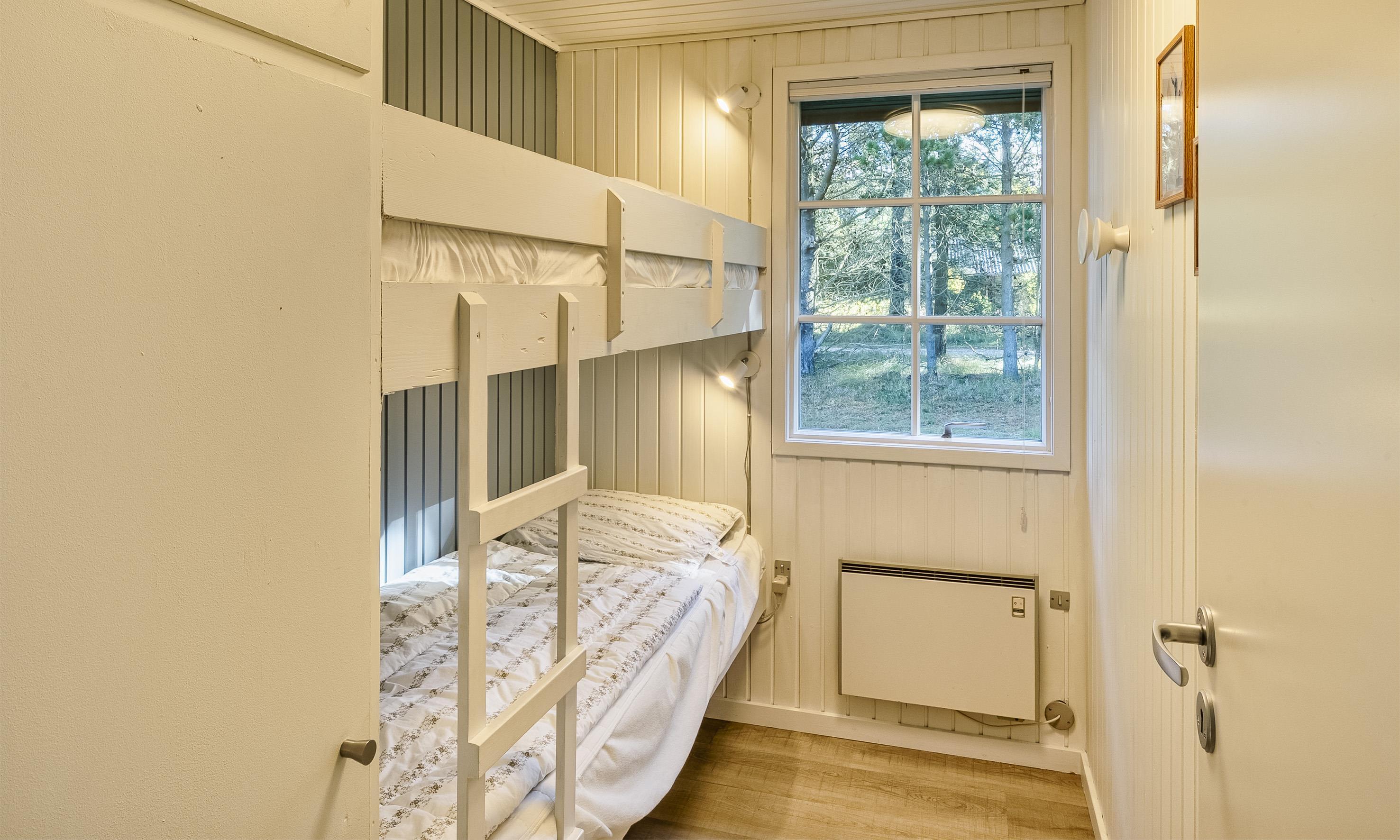4 bedrooms. 1 with double bed 180x200 cm. 1 with tree quarter bed (140x200). 2 with bunk beds (70x190 cm each).
