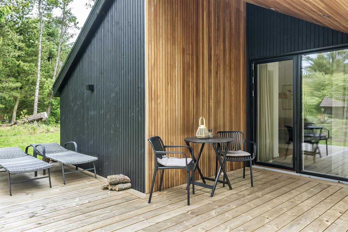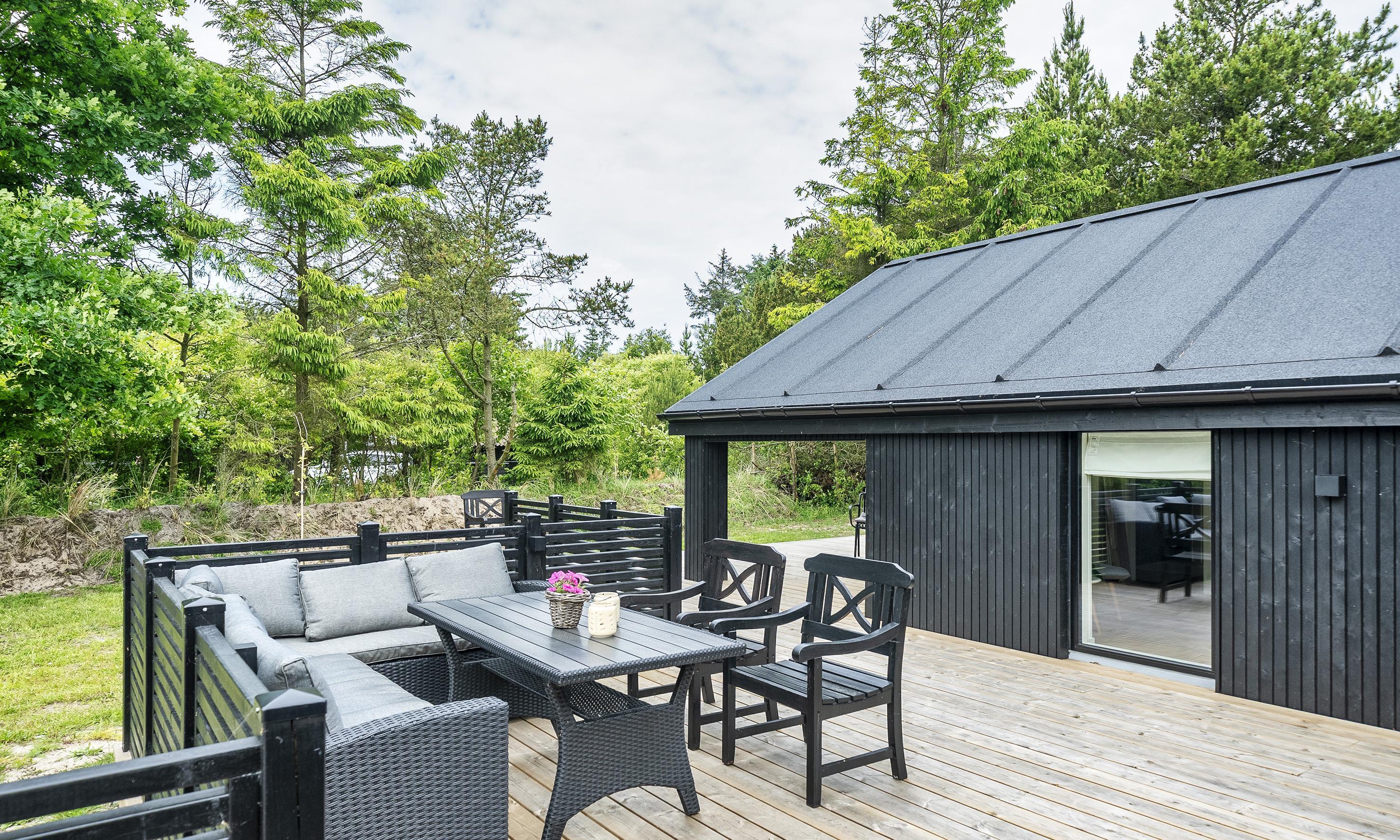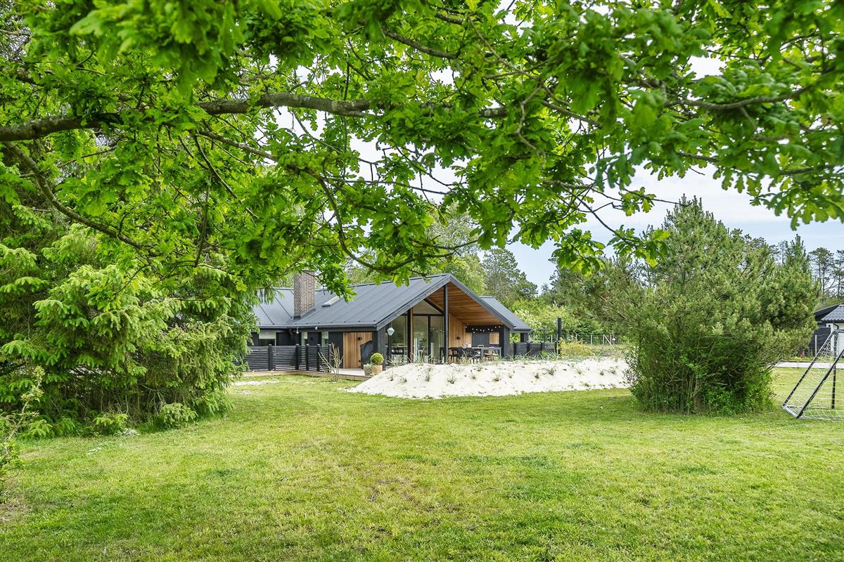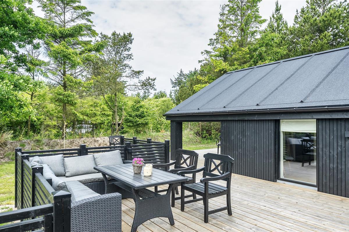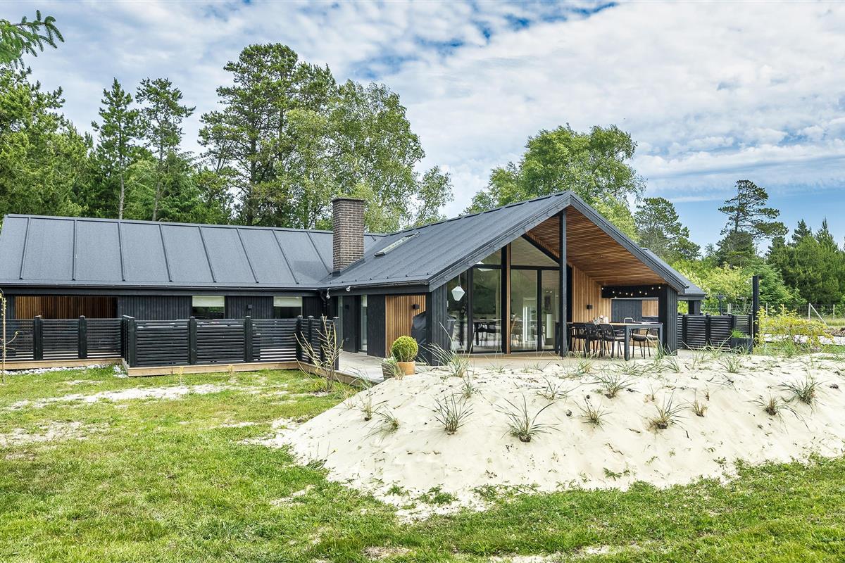 Welcome to this beautiful, newly built holiday home that combines modern comfort with classic summerhouse charm. The house is constructed of wood with a flat roof and features a large, partially covered wooden terrace where you can enjoy your holiday under the open sky – and relax in the wonderful outdoor spa.