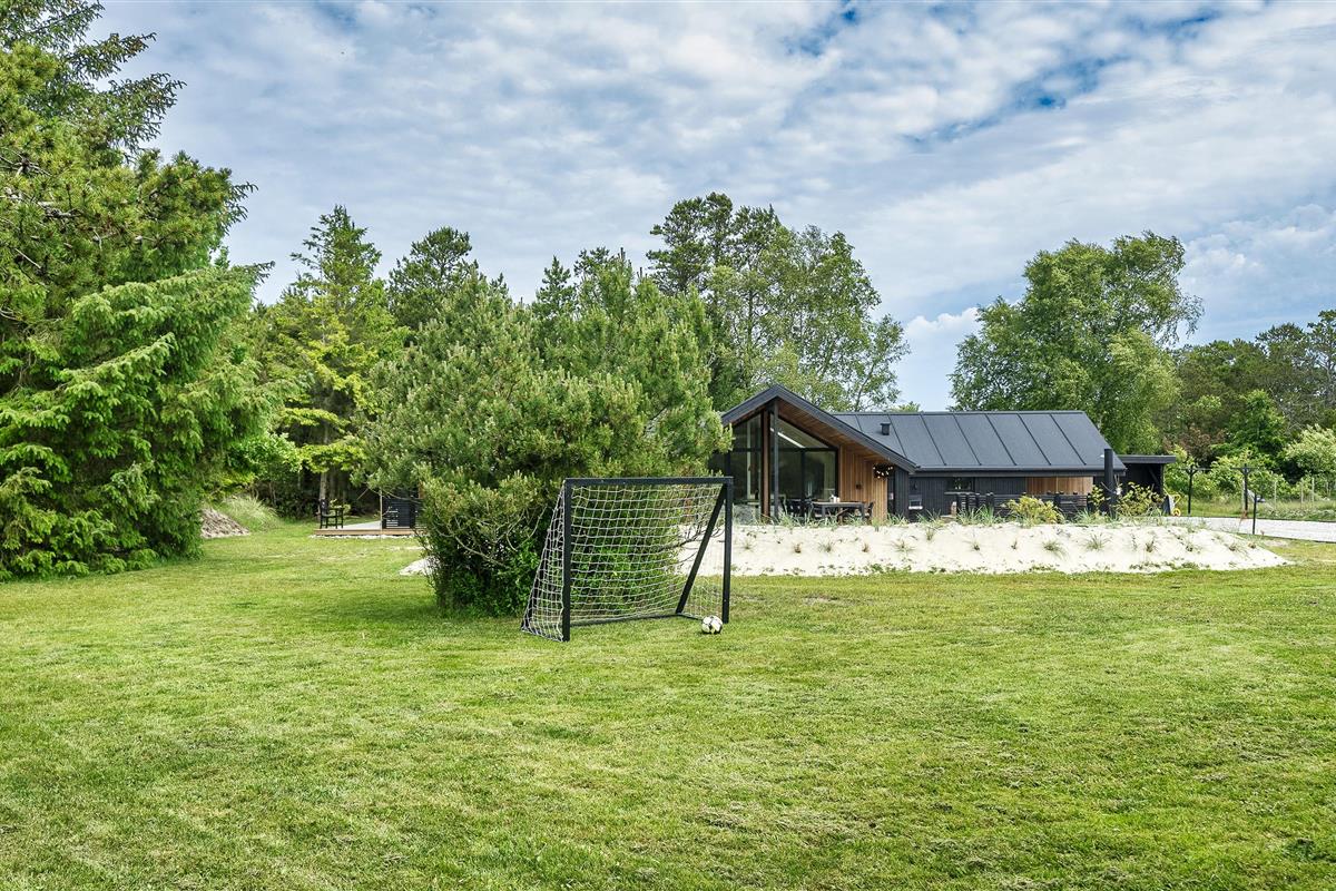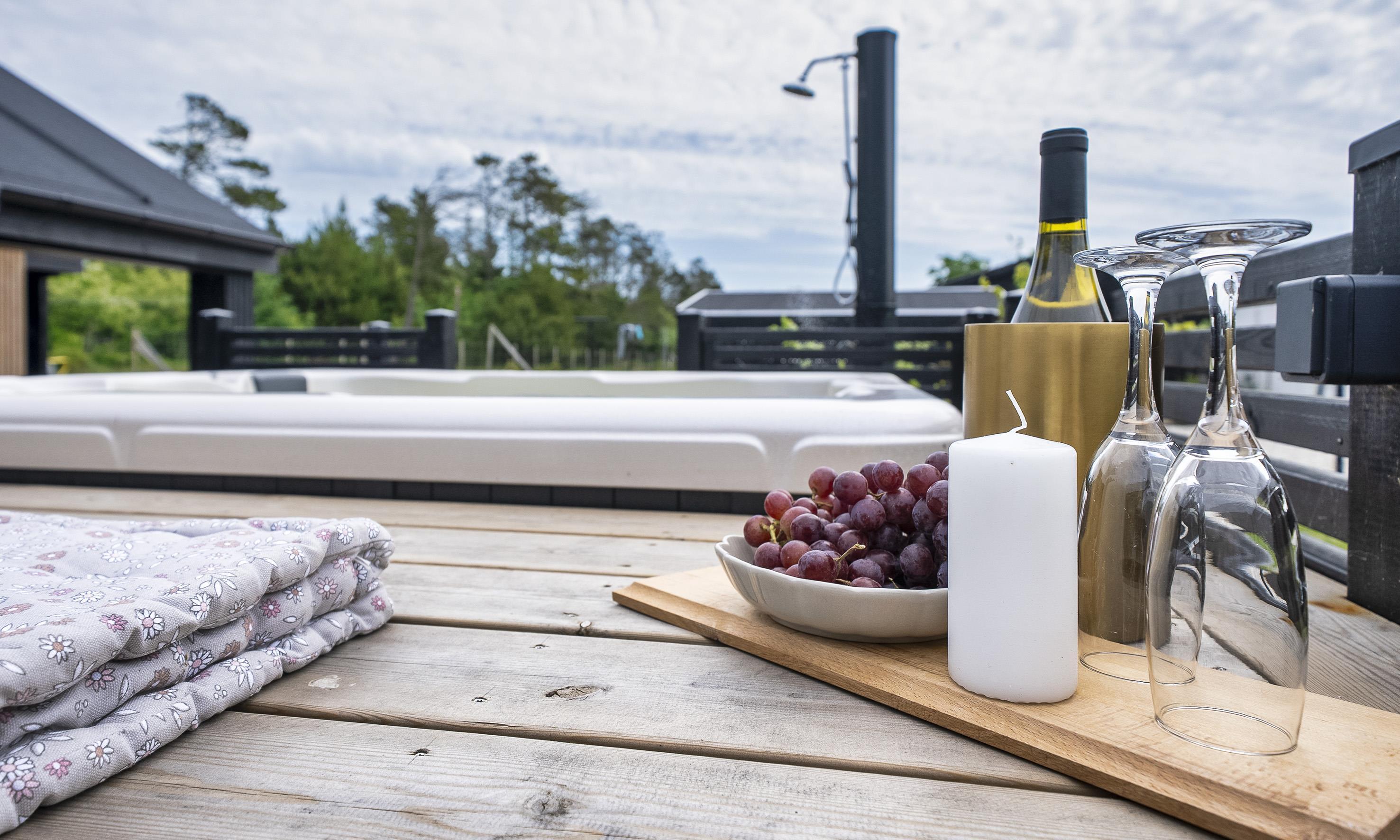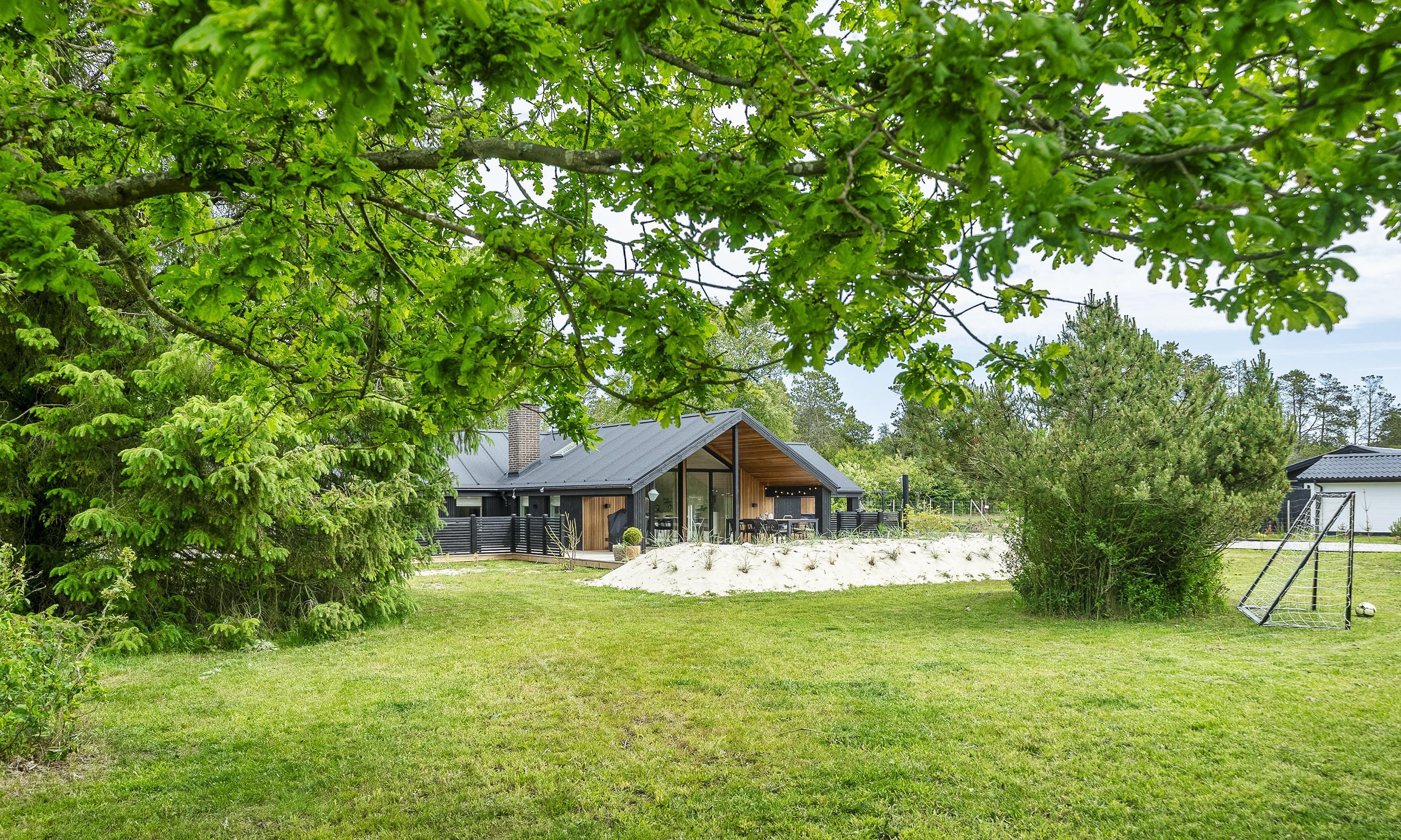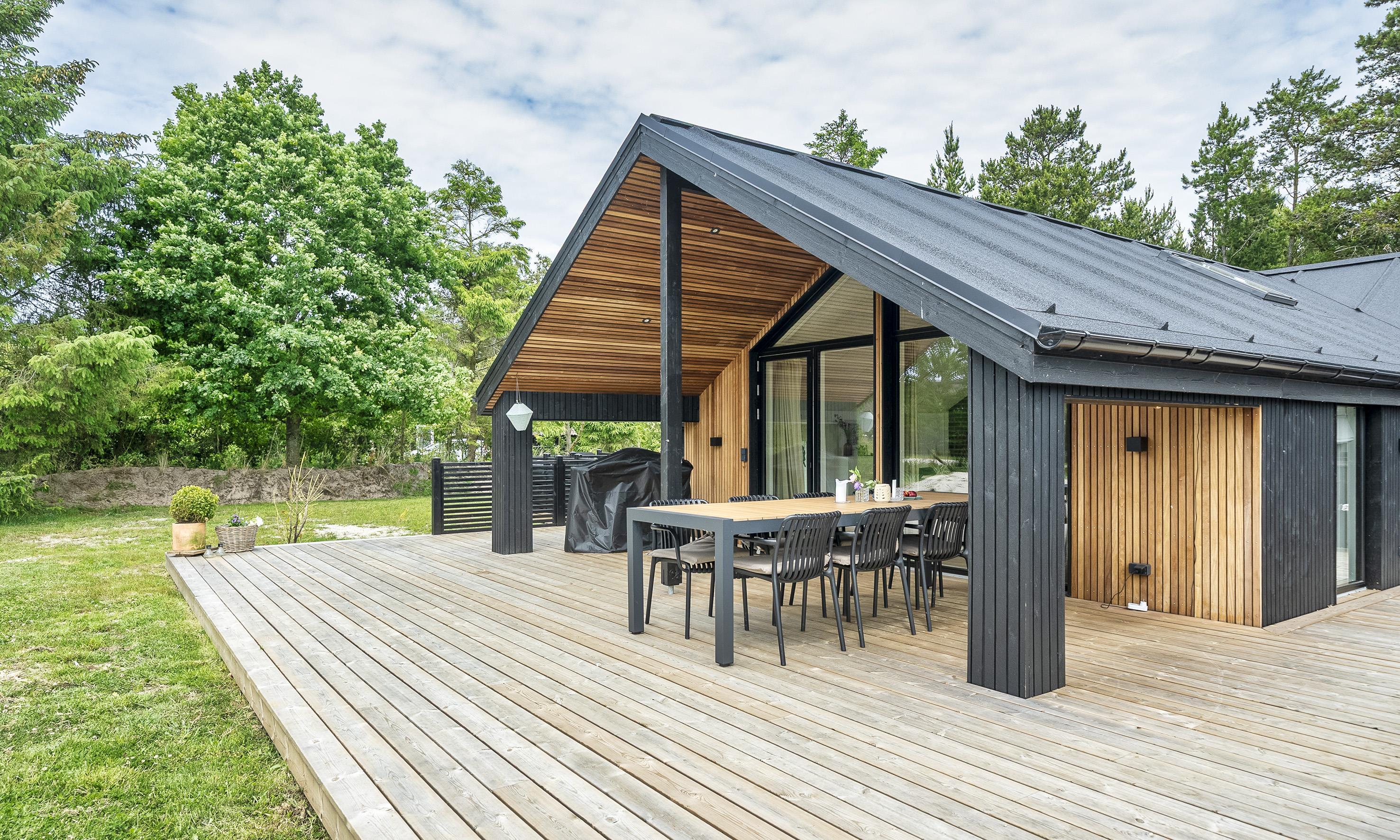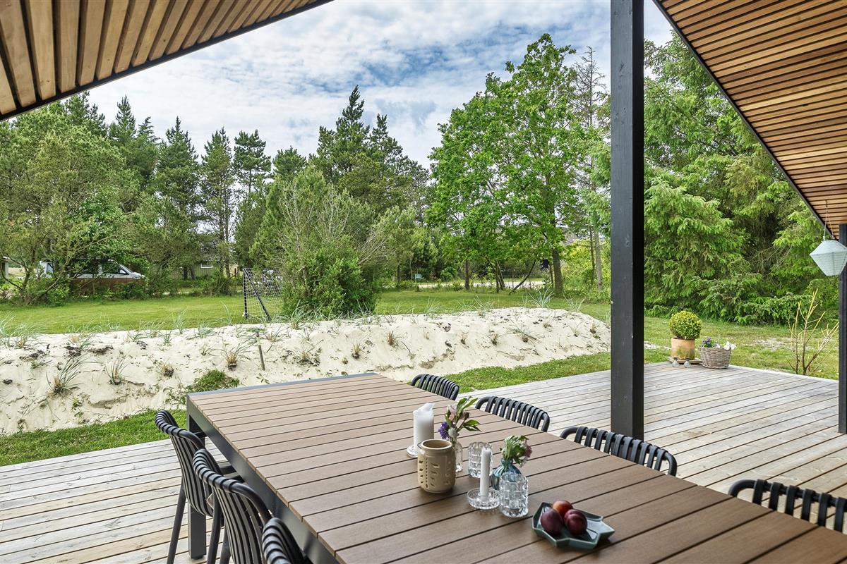 Welcome to this beautiful, newly built holiday home that combines modern comfort with classic summerhouse charm. The house is constructed of wood with a flat roof and features a large, partially covered wooden terrace where you can enjoy your holiday under the open sky – and relax in the wonderful outdoor spa.
