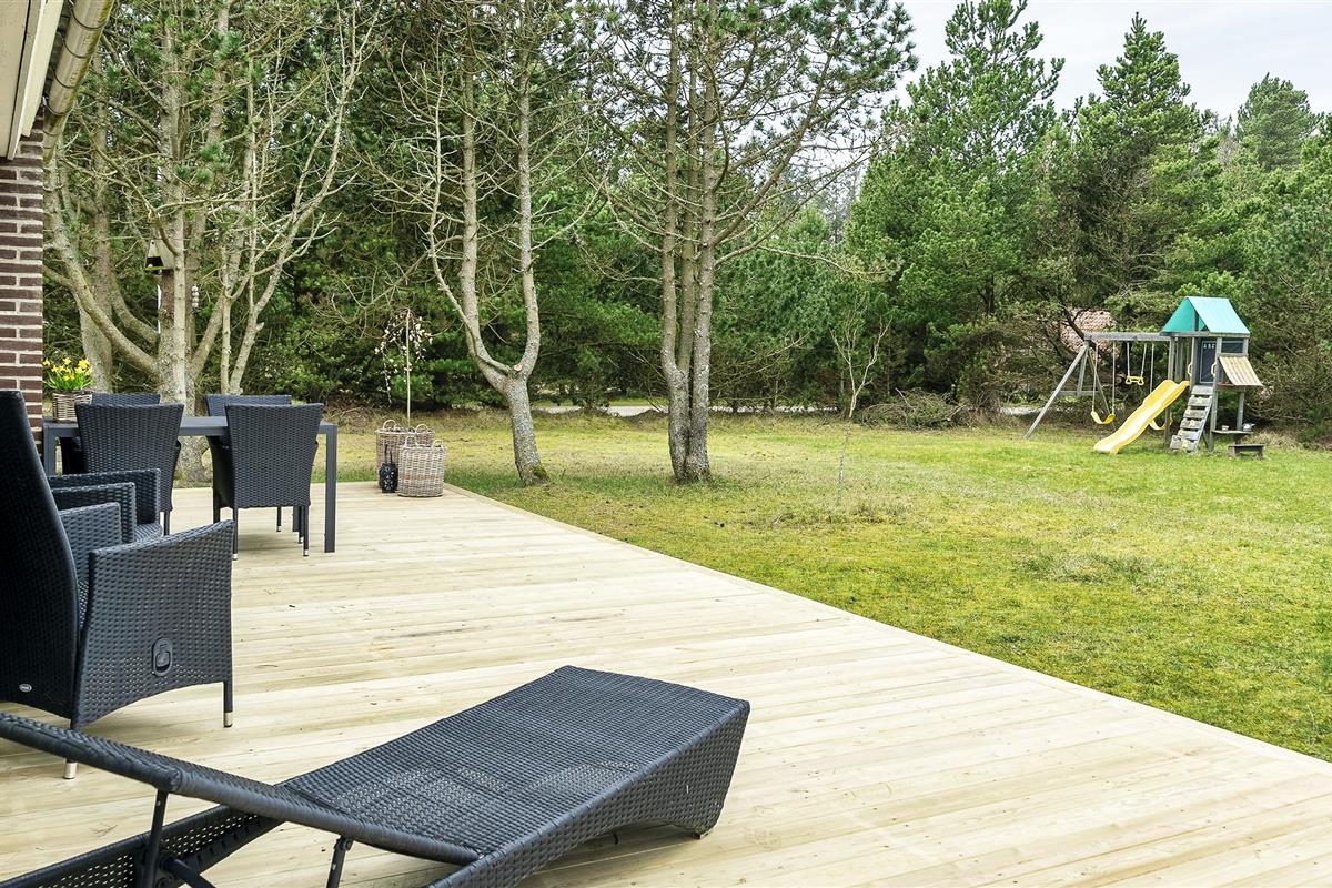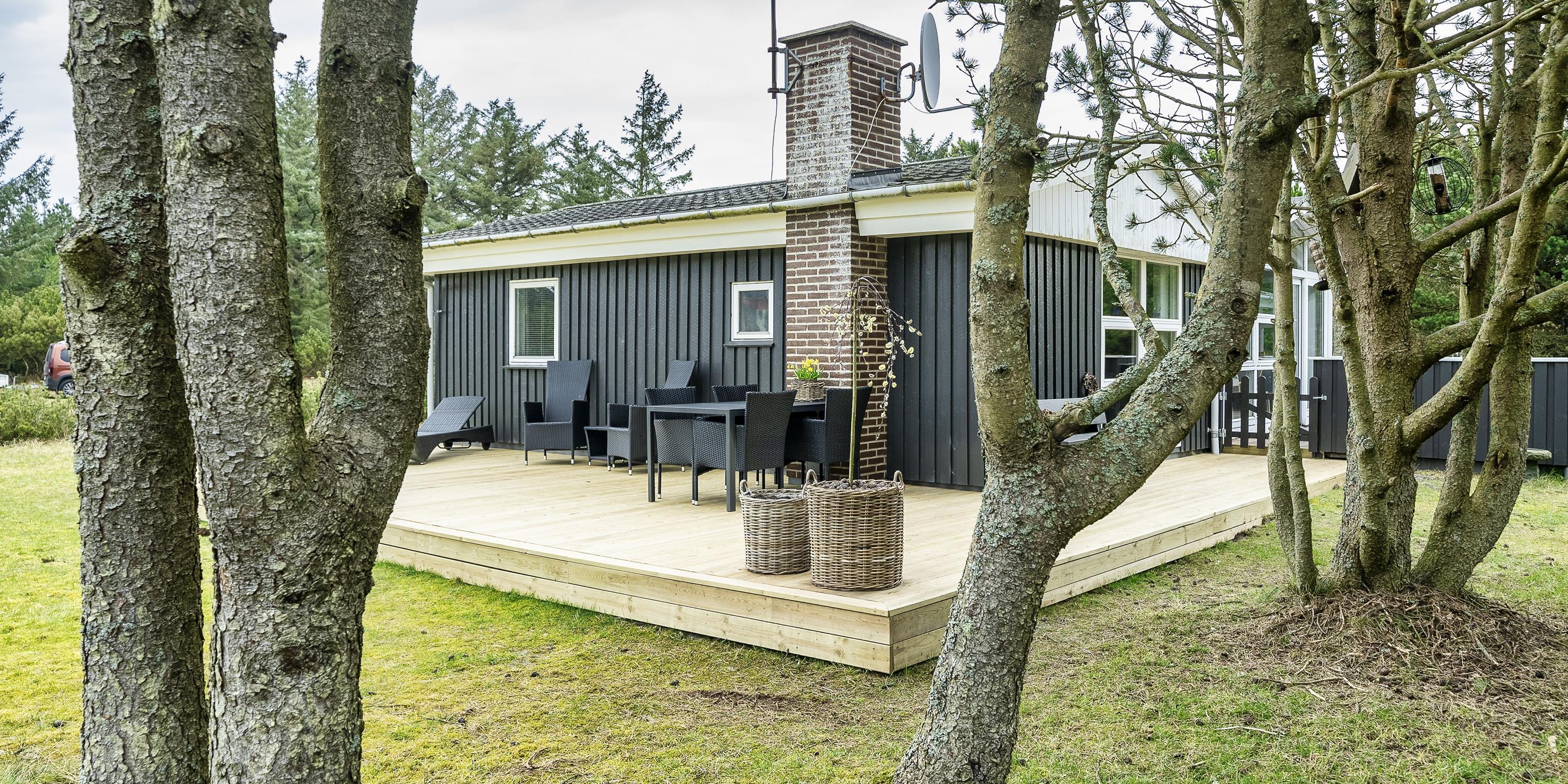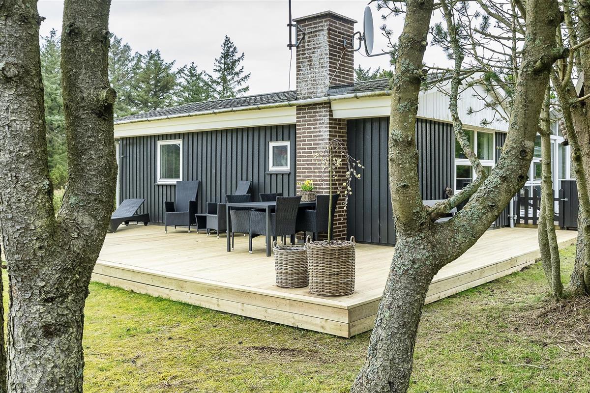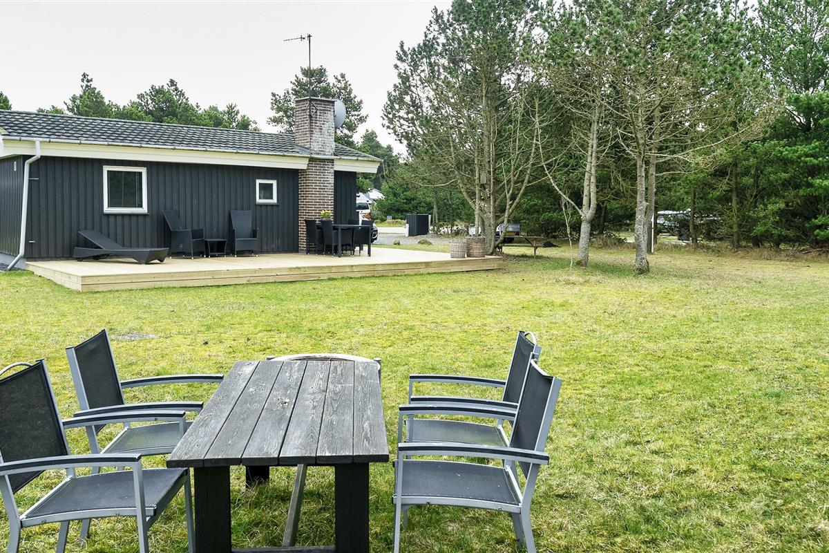 Cozy summer house for 6 people, located on 1753 m2 well-maintained land, approx. 1,500 meters from the beach. The house appears very well maintained with an extension from 1996 that contains a large living room with wood burning stove, television, Chromecast and TV (Stofa summer house package). Wireless Internet access. 1 large bedroom with 1 double bed and wardrobes. Bathroom with shower/wc and underfloor heating. From the living room you come into a raised dining room with a dining nook, and in open connection with the kitchen, which features a stove with ceramic hob, dishwasher, hood and fridge-freezer. A new kitchen has been added in 2023 and the entrance has been renovated. Conservatory with dining area. From the dining room there are also 2 bedrooms, 1 bedroom with 2 single beds and 1 bedroom with 1 bunk bed and a short single bed. Partially closed terrace and covered entrance area. Pets allowed with 2 small dogs! Smoking not allowed.! Year of construction 1967, charging station for electric cars, rebuilt in 1996. 3 bedrooms: DB + 2B + 3B.