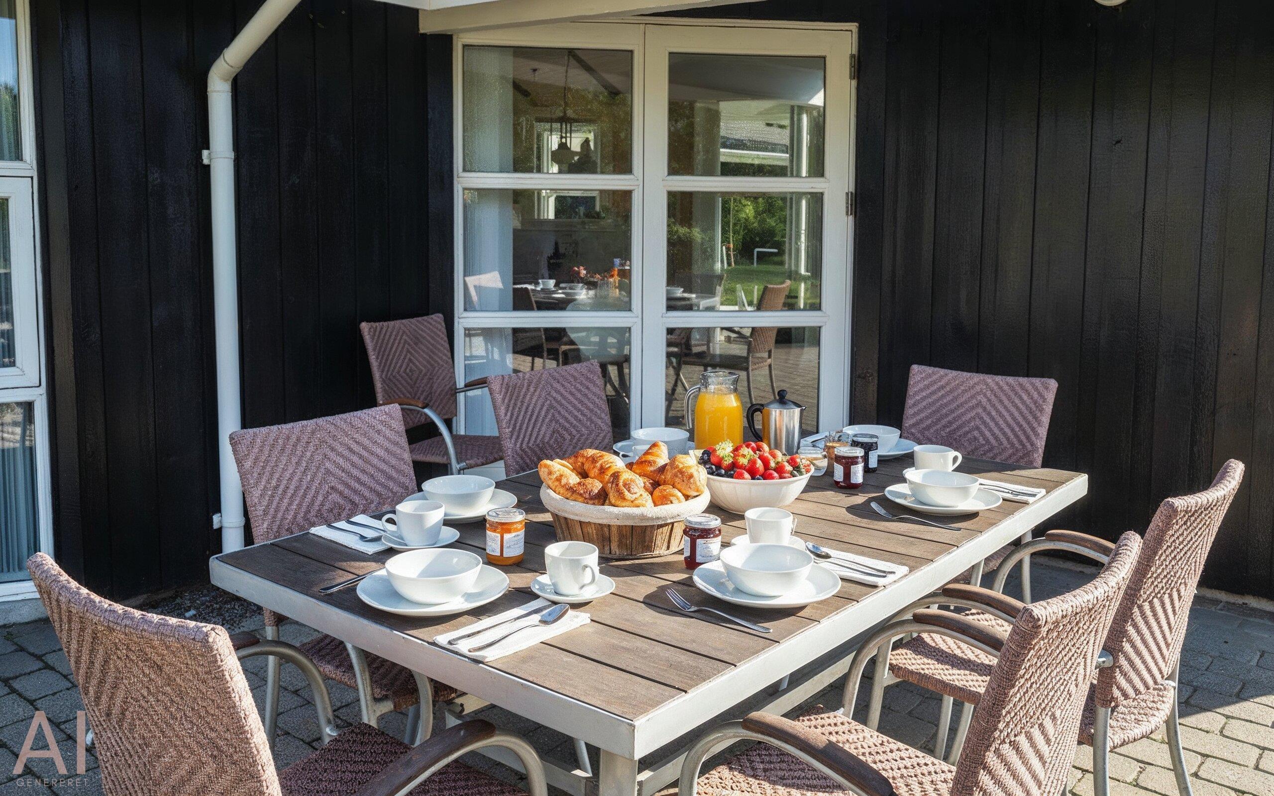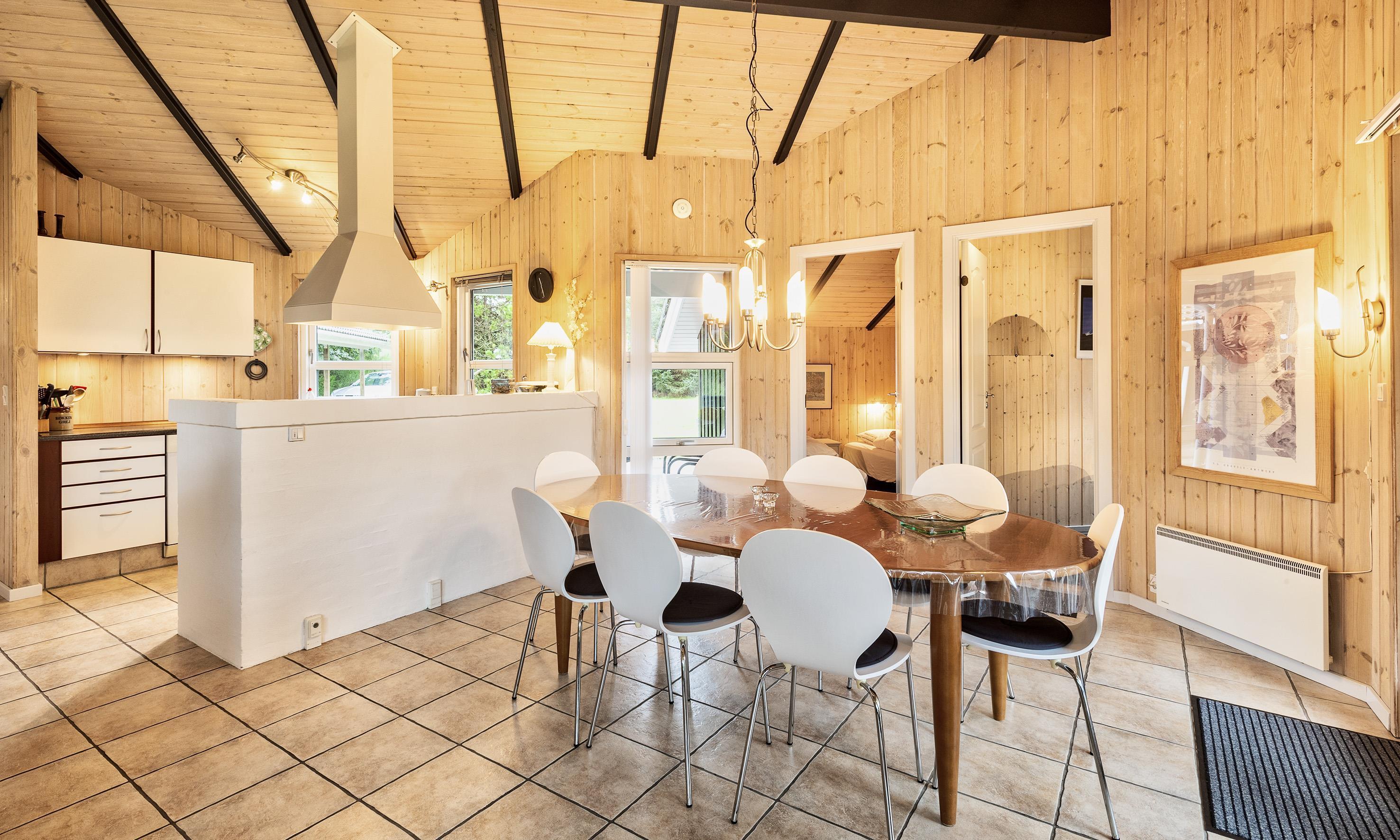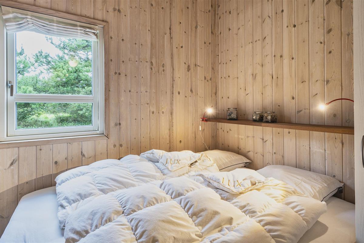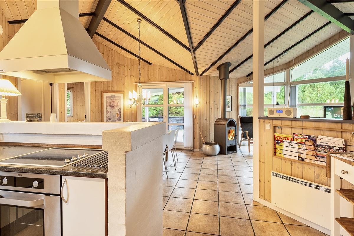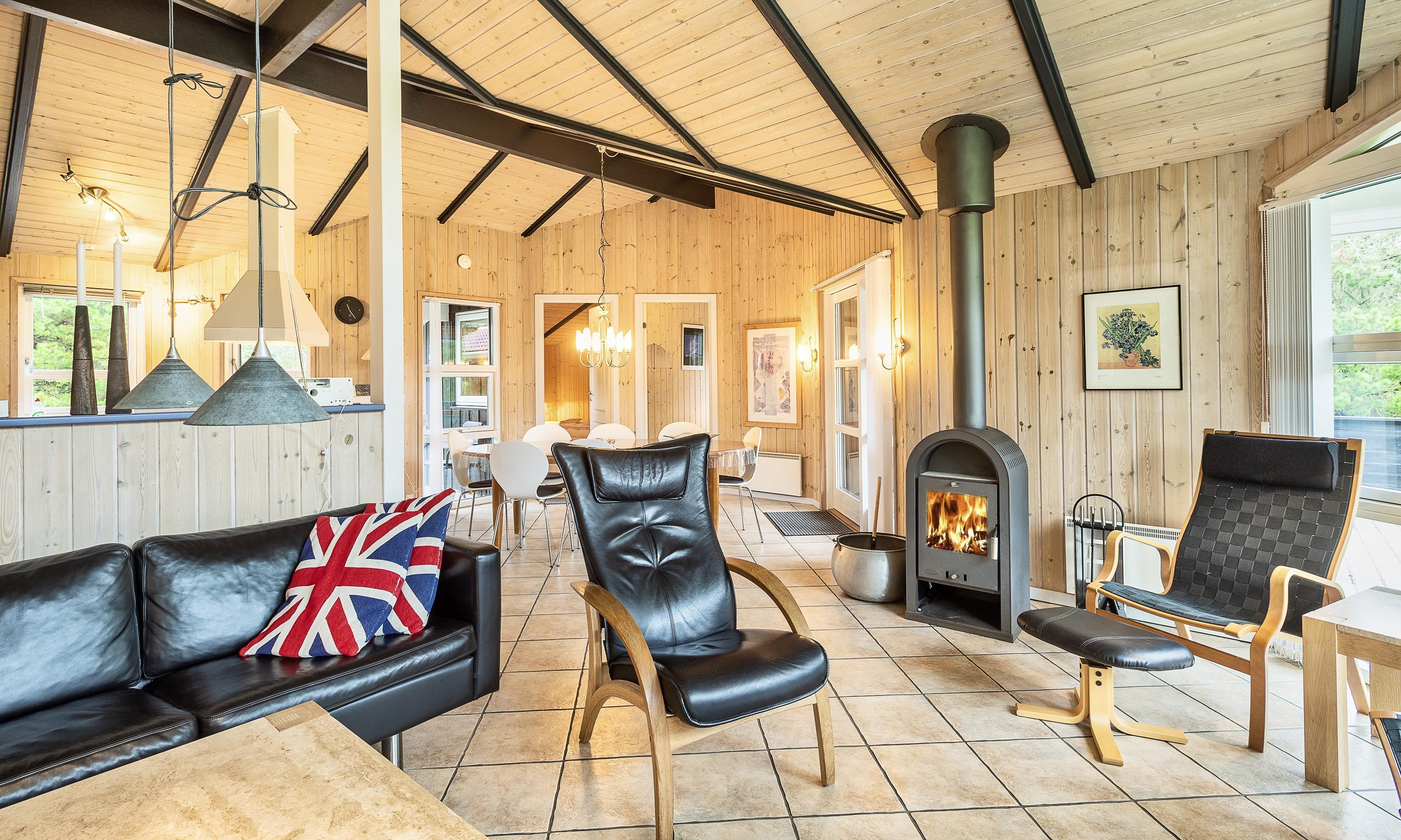 Magnificent summer house for 8 people, approx. 1000 meters from the beach. The house is situated on a 2250 m2 plot surrounded by trees.