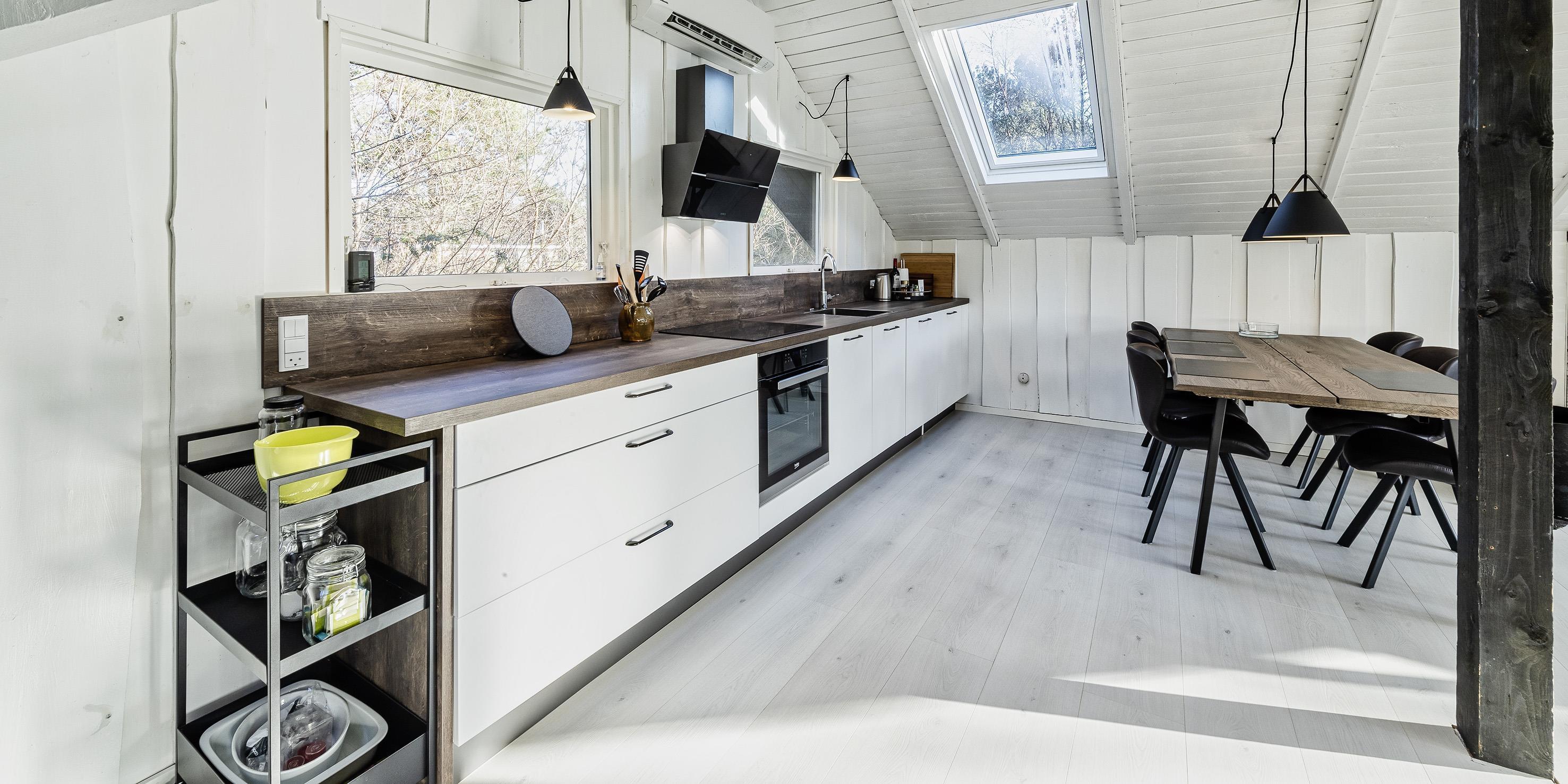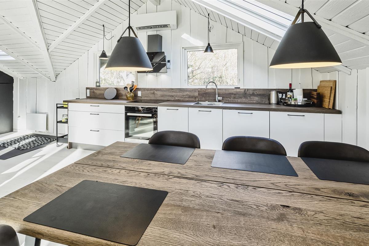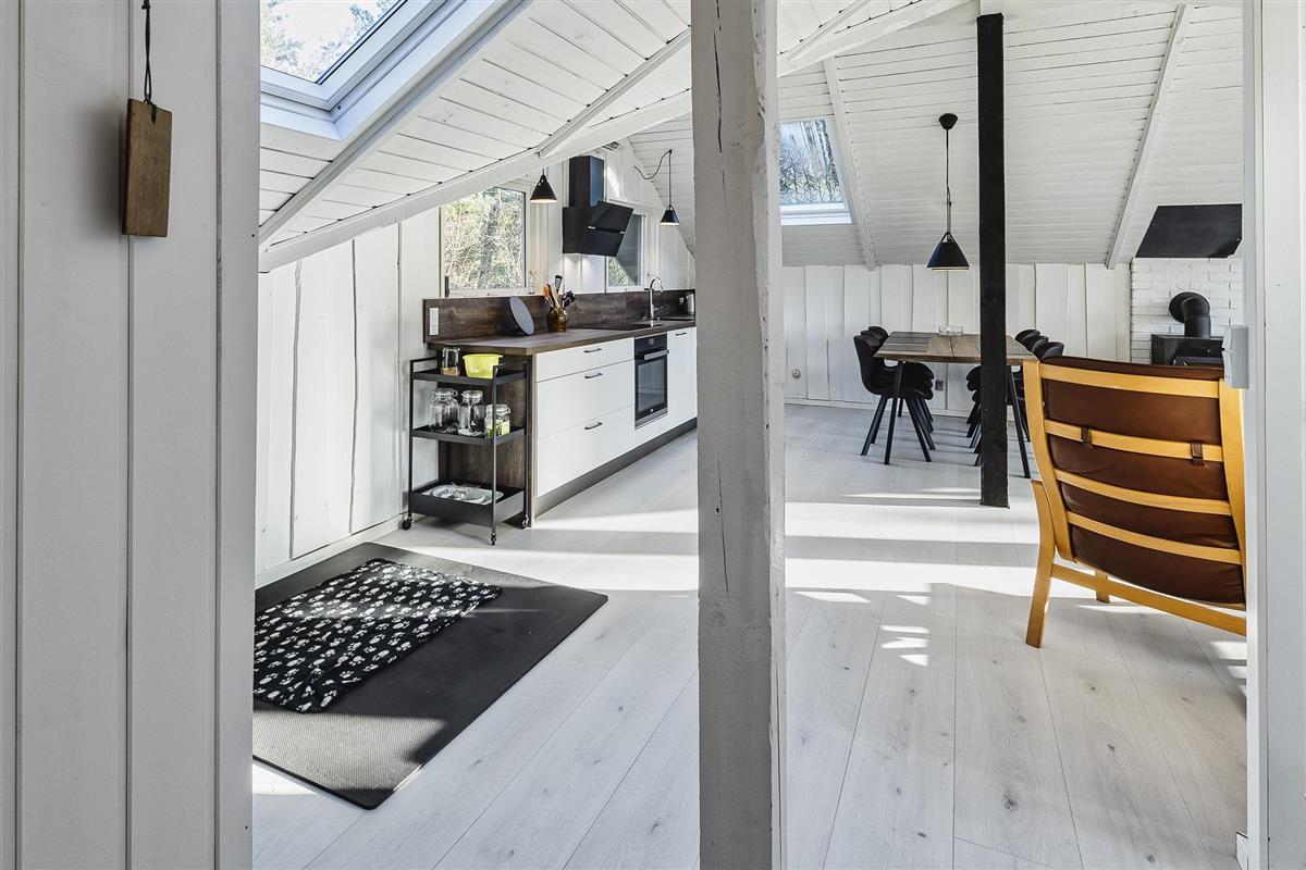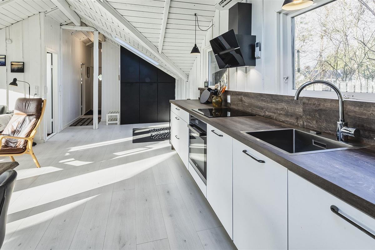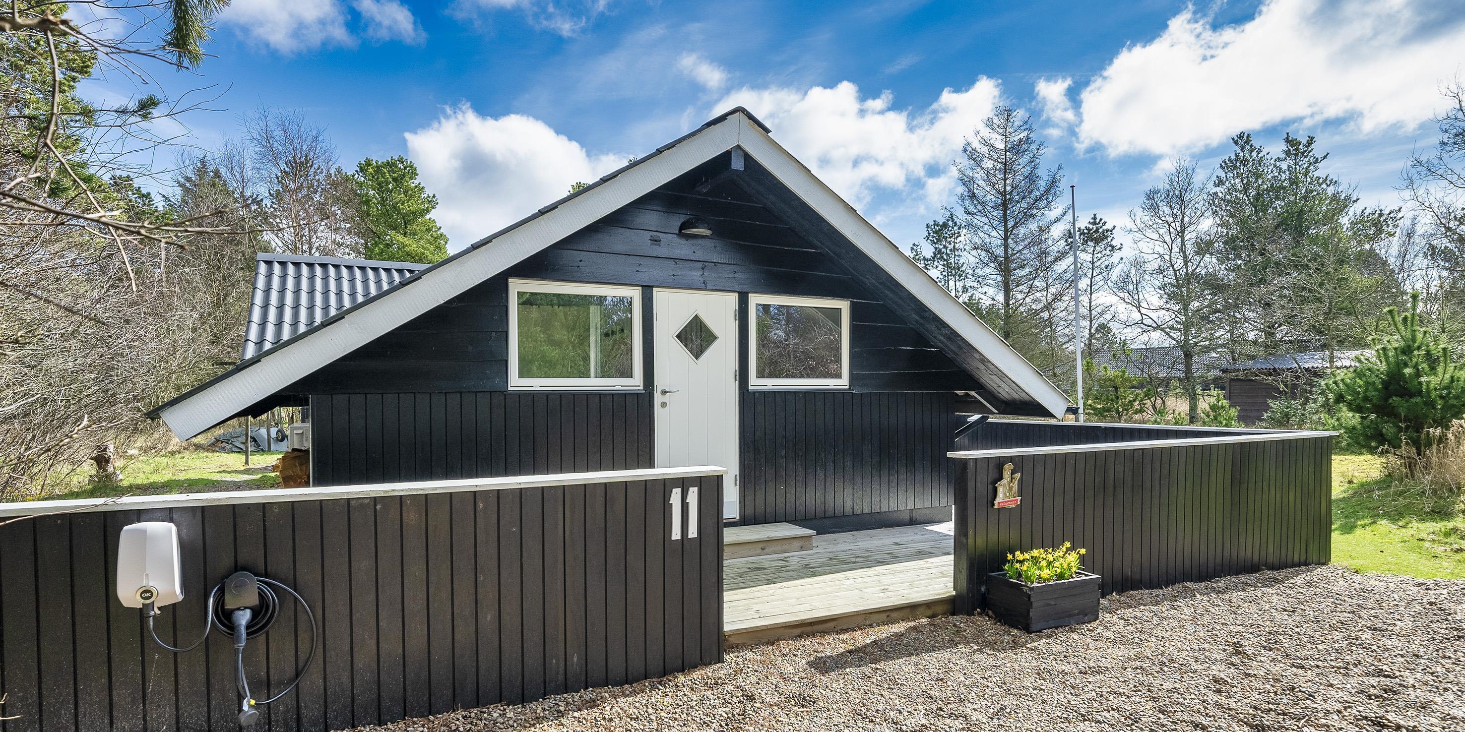 The house offers an entrance hall. From here there is access to 2 bedrooms: DB + 2B, the bedrooms have no wardrobes available. Smaller bathroom with toilet, washing arrangement and shower cubicle as well as a top-operated washing machine. From the distribution corridor you enter the living room, which is in open connection with a new kitchen. The new kitchen features an induction hob, built-in oven, hood (coal filter), dishwasher and fridge with small freezer. Built-in storage cupboards. Lovely bright dining area with skylight and cozy sofa corner with television with Yousee streaming TV channels, wireless internet (200/200) connection and wood stove. The wood-burning stove can be enjoyed both from the corner of the sofa and from the dining area. To the south, there is a large window area with a garden door to a partially closed and partially covered wooden terrace. The house also features new parquet floors throughout the house, vaulted ceiling in the living room, and lightened walls and ceilings that give the right summer house atmosphere. The house is electrically heated, supplemented by a new heat pump and wood-burning stove. There is a charging station for cars by the house. Pets are welcome, but smoking indoors is not allowed. Year of construction is 1972, but the house was renovated in 2020. Electric cars can be charged at the house.