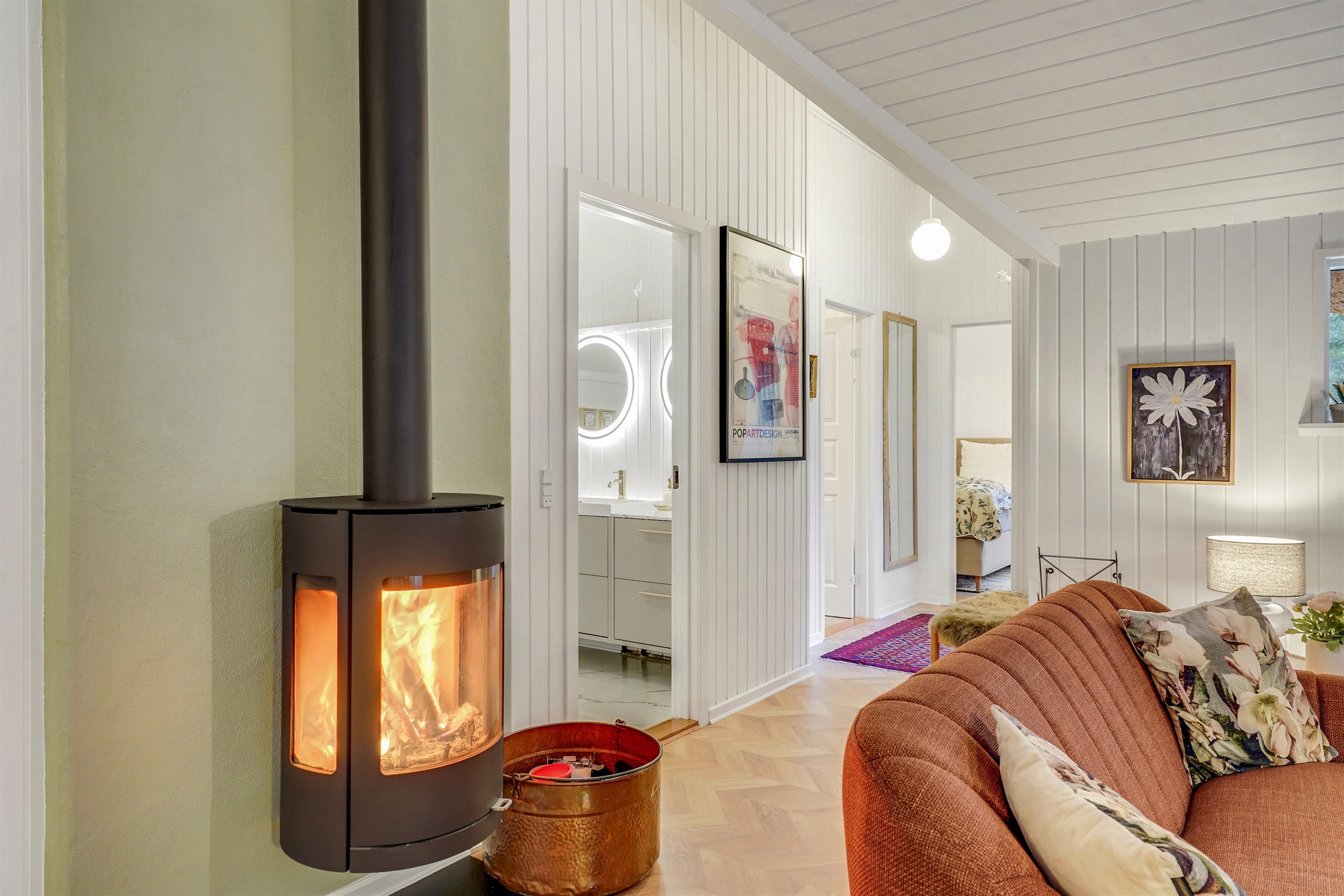 The house is heated by an energy-efficient air-to-air heat pump, a wood-burning stove and electric radiators in the bedrooms.