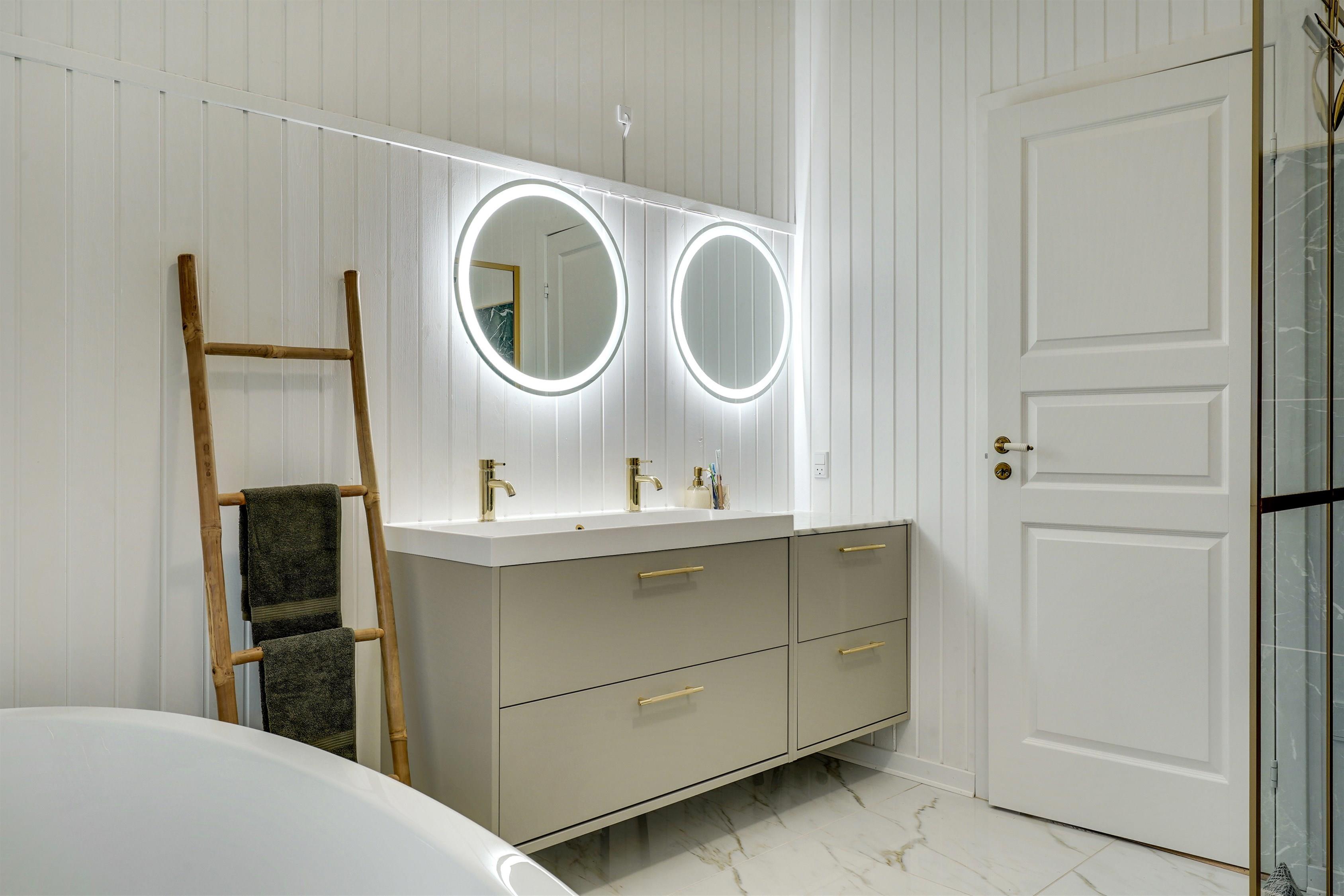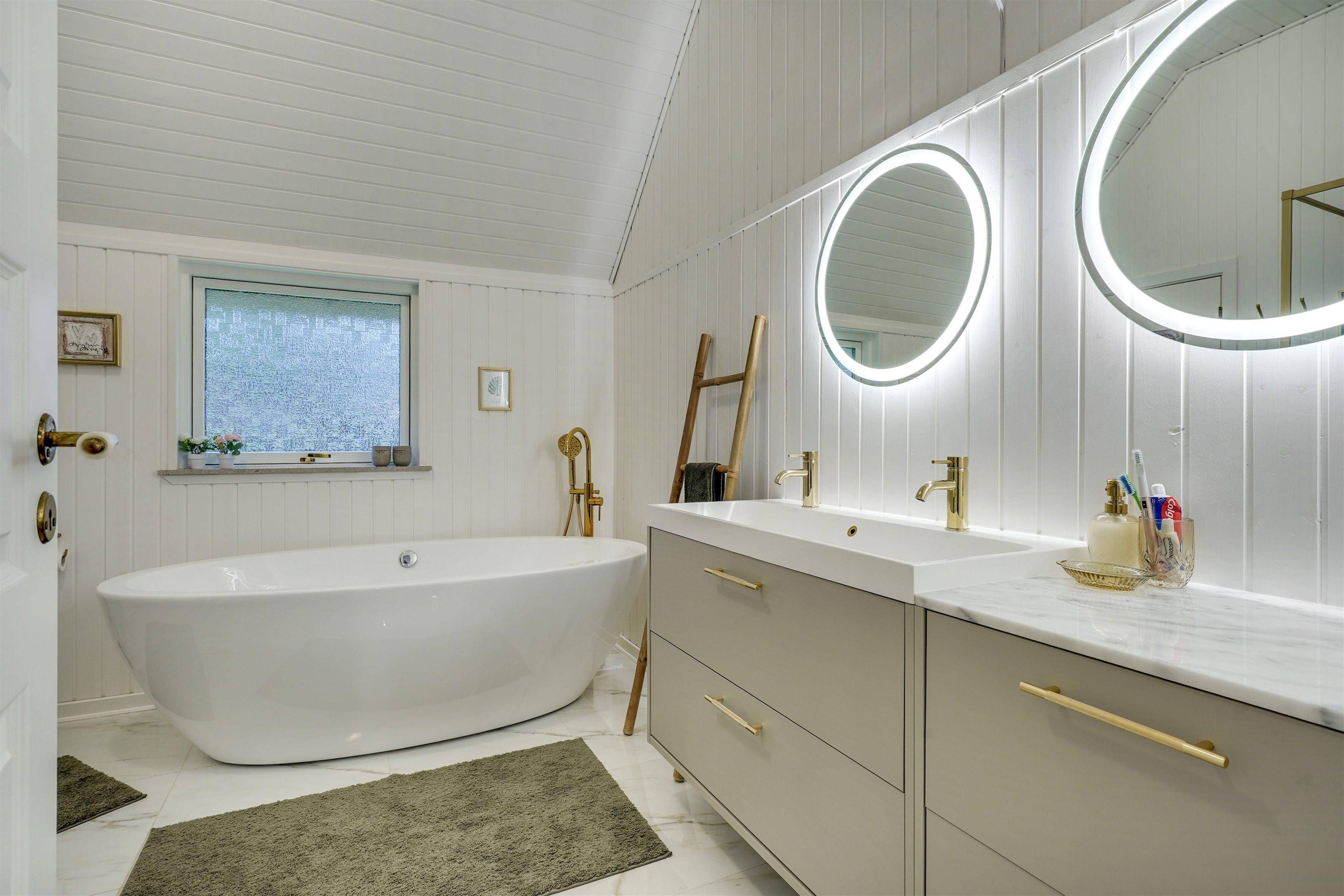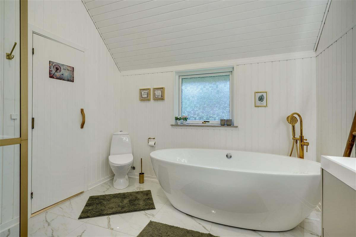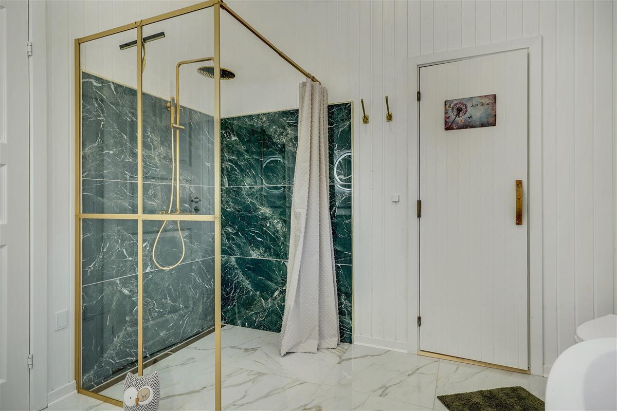 – Bathroom with underfloor heating, shower and bathtub.