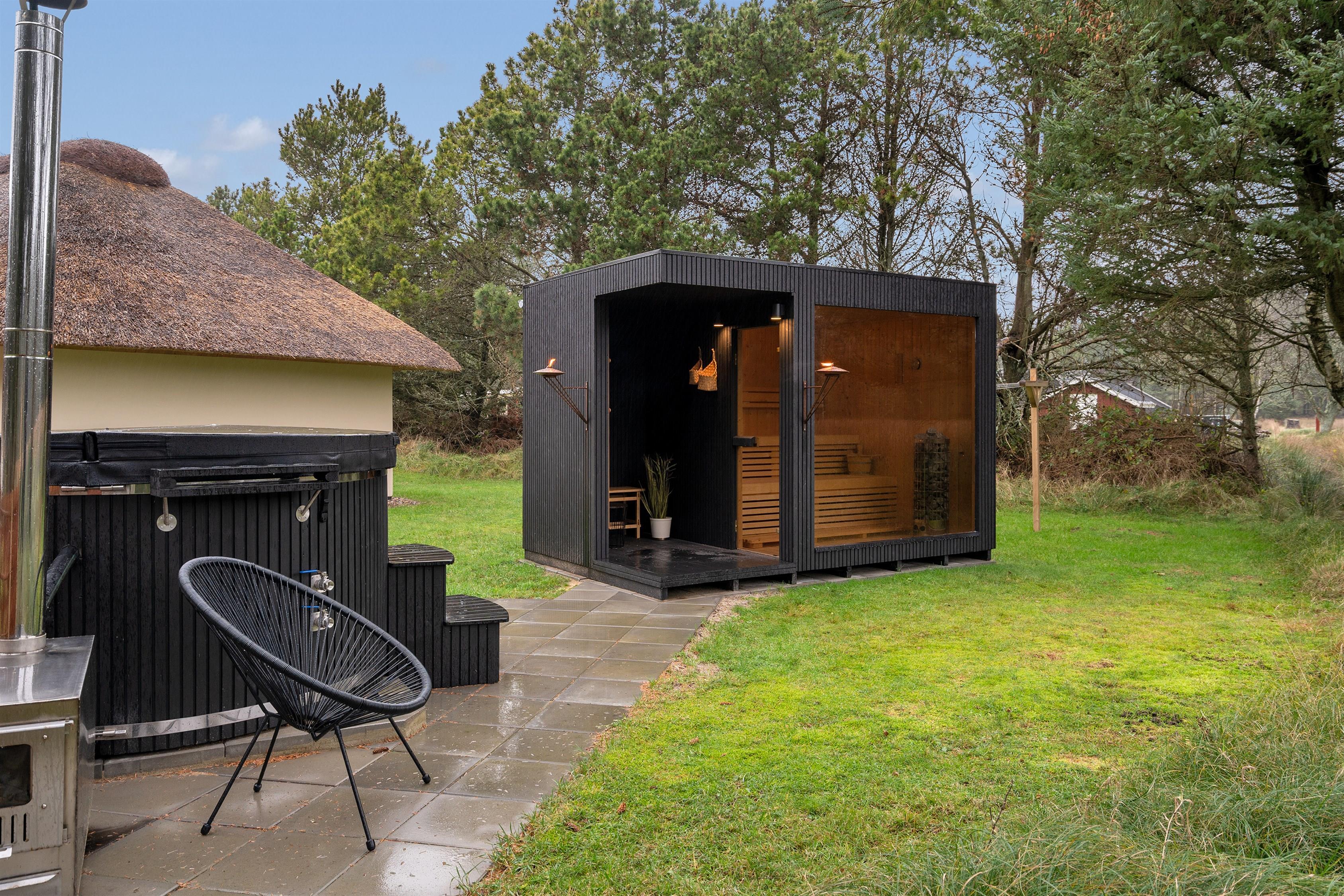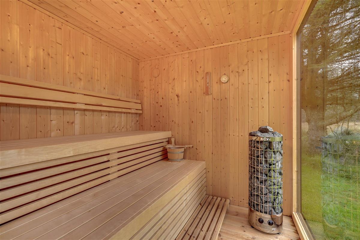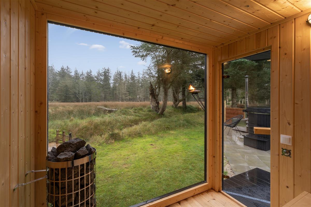 Treat yourselves and heat up the stand-alone sauna or the wilderness hot tub while enjoying the view of the beautiful natural surroundings and the forest.