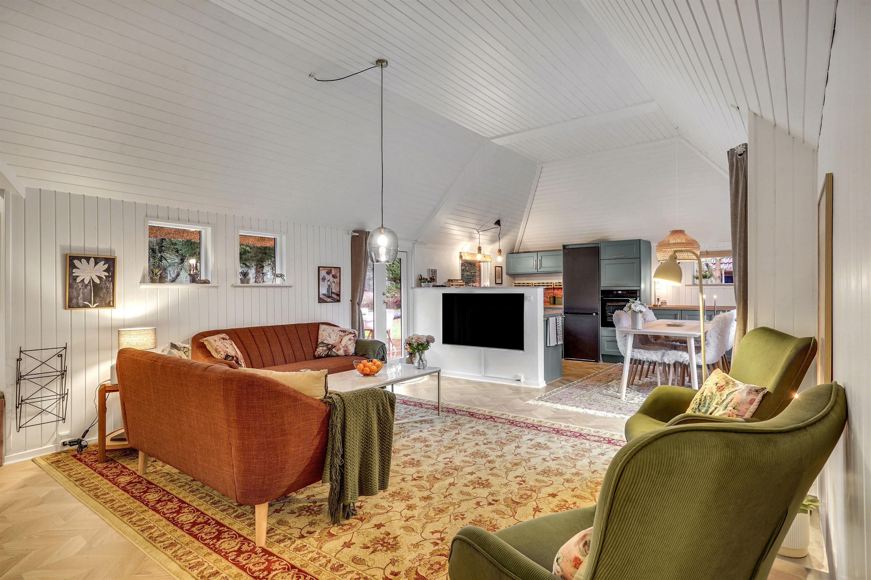 Inside, the house is functionally designed and decorated in a cosy and charming style that radiates authentic holiday-home atmosphere.