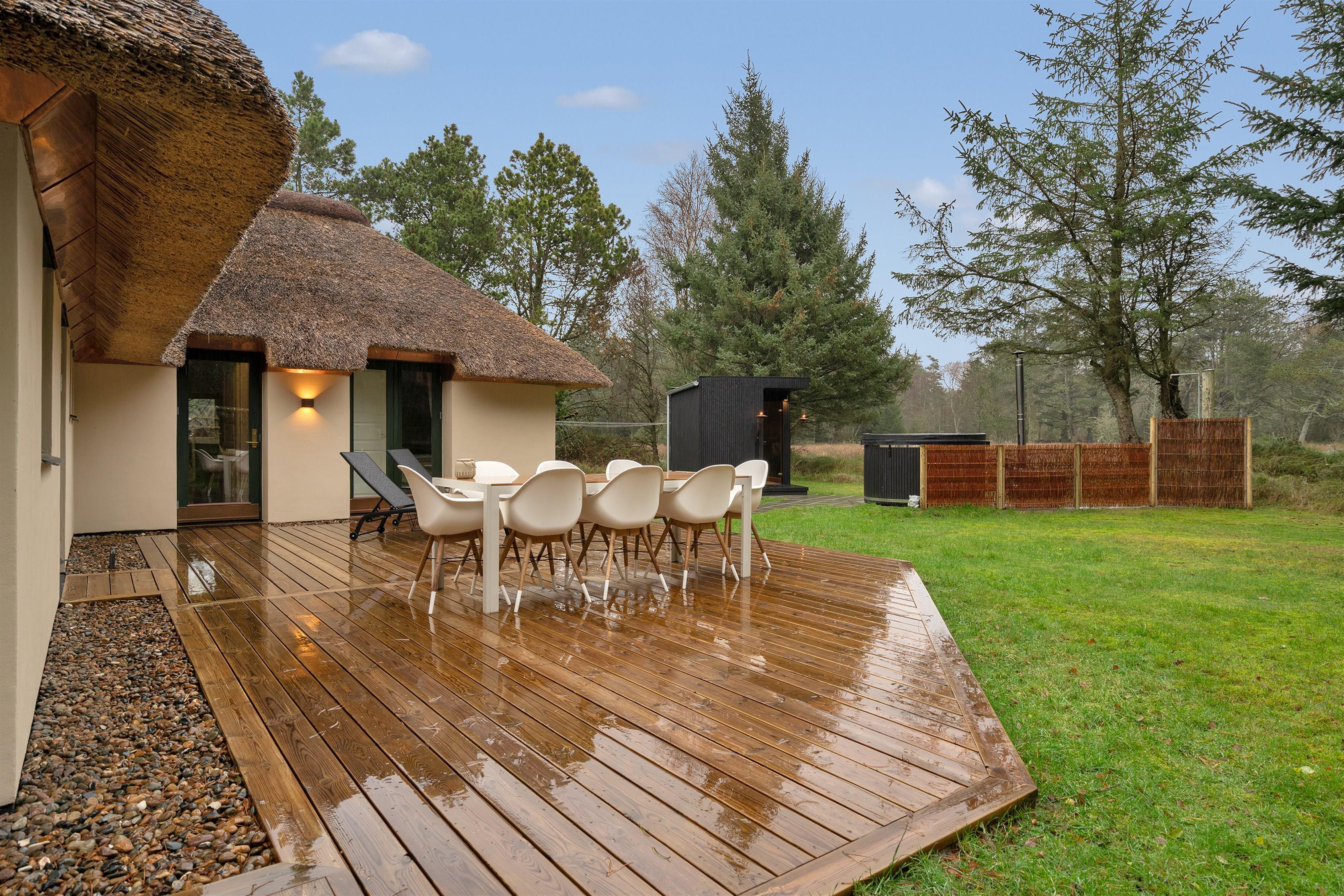 Outside, the house features rendered masonry, a new thatched roof and copper detailing. When the weather allows, the two wooden terraces offer wonderful opportunities to enjoy both breakfast and dinner outdoors. The large lawn and play equipment will certainly be popular with the youngest members of the family.