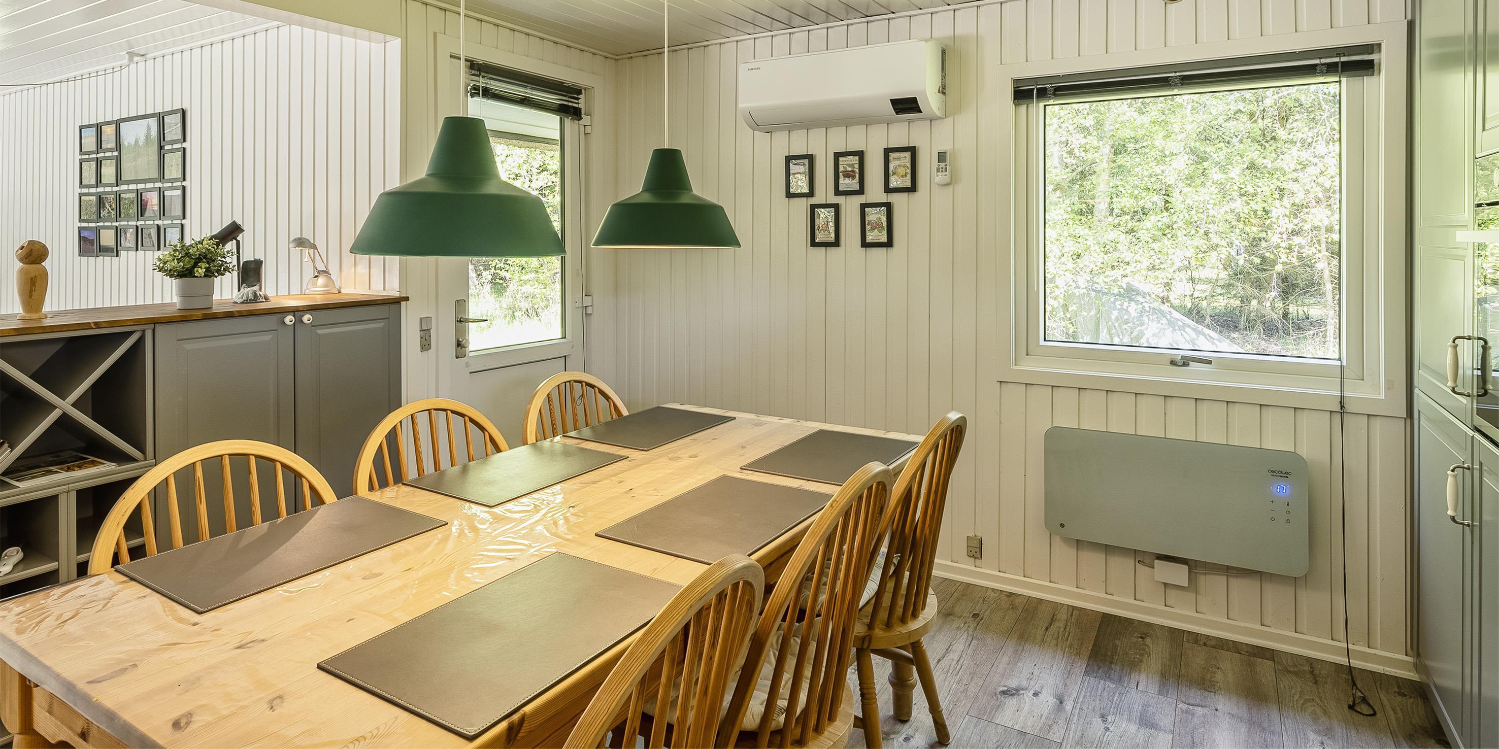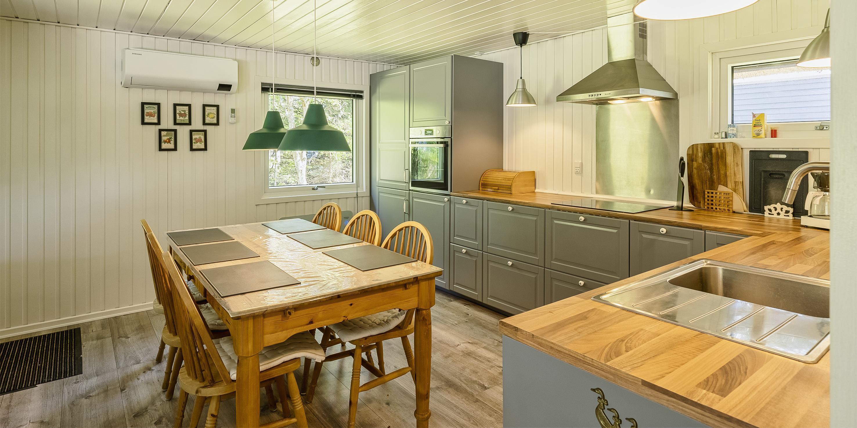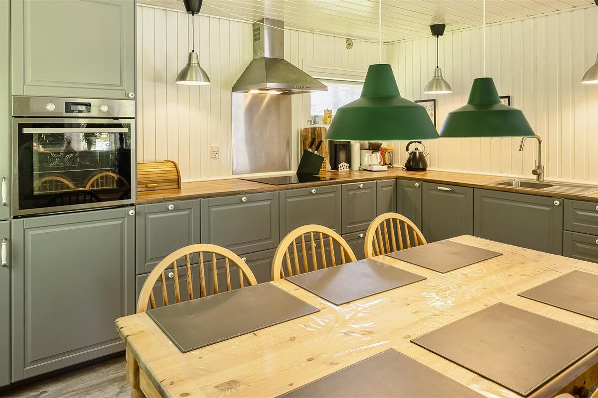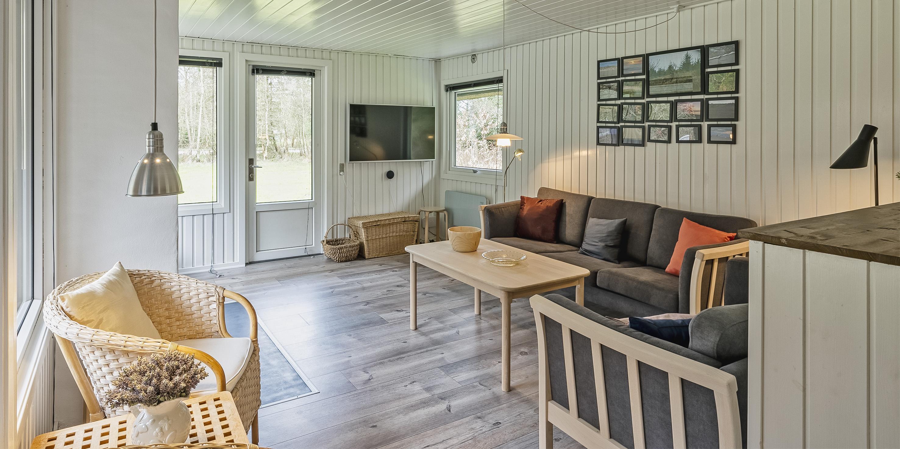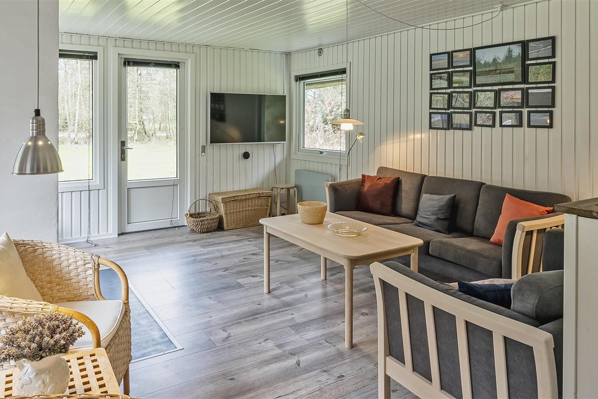 The house contains: Entrance/distribution corridor that leads into the house's kitchen-dining room. The kitchen is new from 2021 and looks like a country kitchen with a wooden worktop with dishwasher, built-in oven, ceramic hob, hood and a built-in fridge/freezer. Lovely dining area with a long table and plenty of space. The kitchen-dining room and the living room are divided by a half wall with extra cupboards. Cozy and bright living room with sofa corner with a view to Smart TV, Google mini nest and an insert fireplace that functions as a wood stove, as well as the cozy garden. There is access to the garden from a patio door in the living room. The house has wireless internet available. From the distribution corridor there is access to 3 bedrooms: DB + 2B + 2B. The house has a large, lovely wooden terrace to the south, where the sun can be enjoyed all day, there is a barbecue area and a sandbox and play stand for the little ones on the terrace. The house also has a heat pump. There is a gas grill at the house which the homeowner has made available. Gas for the barbecue must be brought.