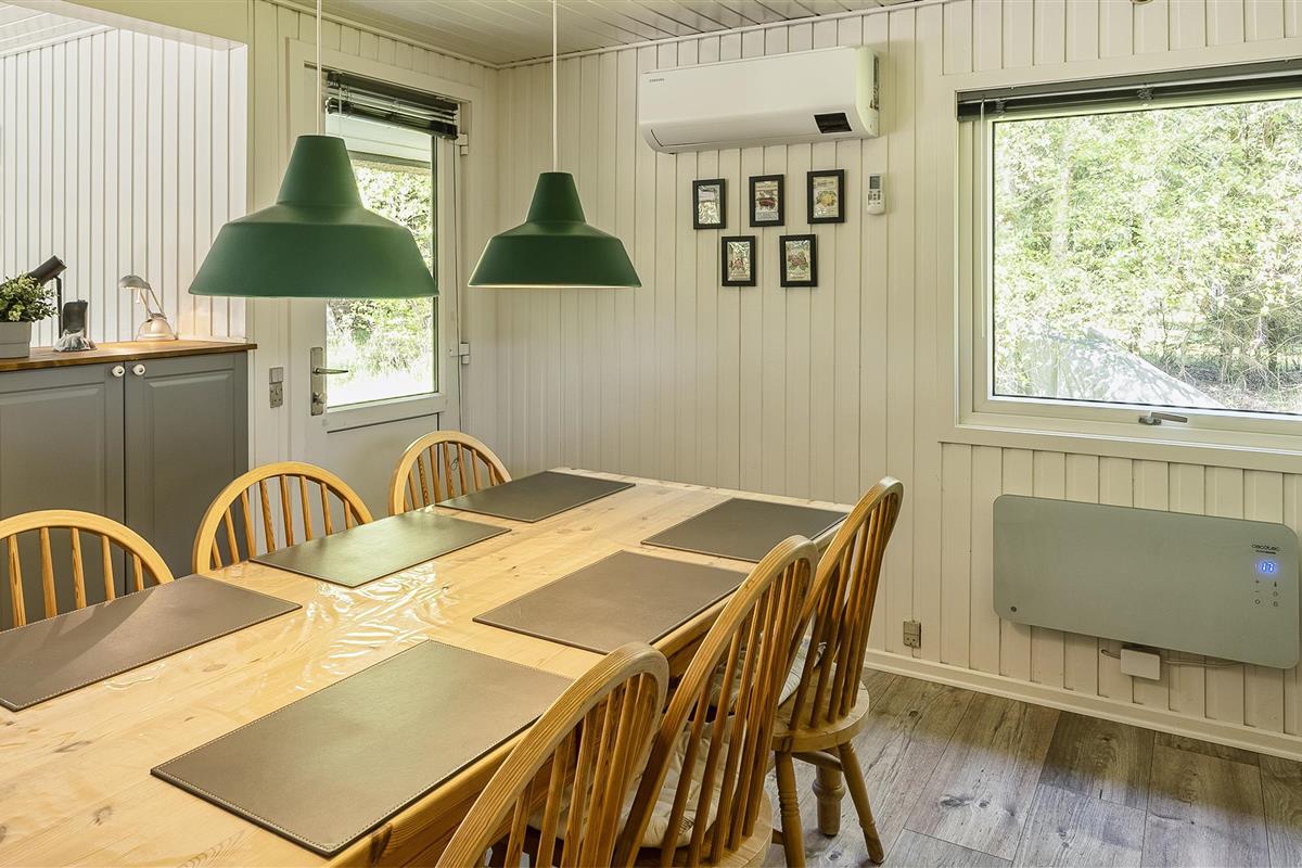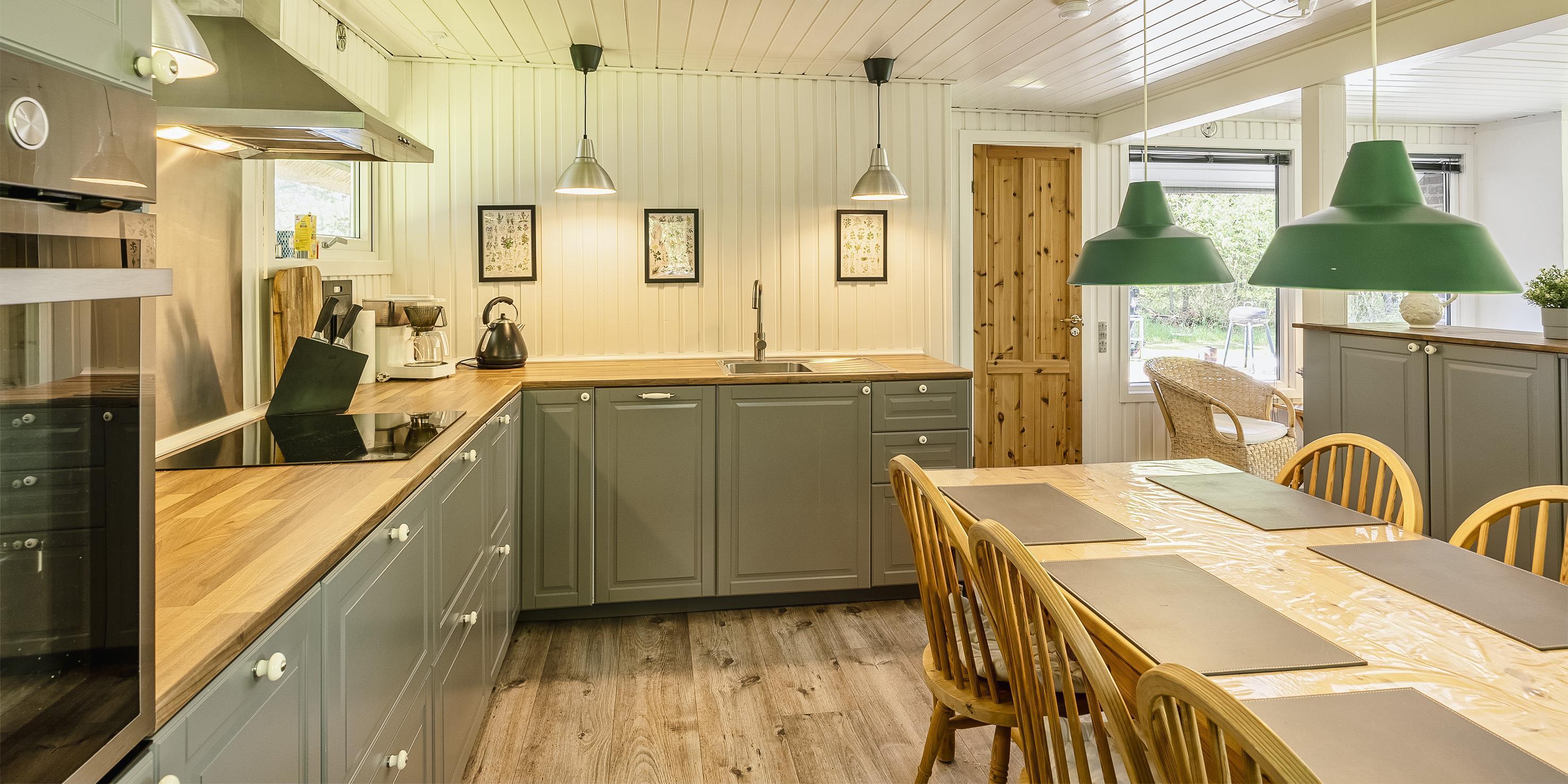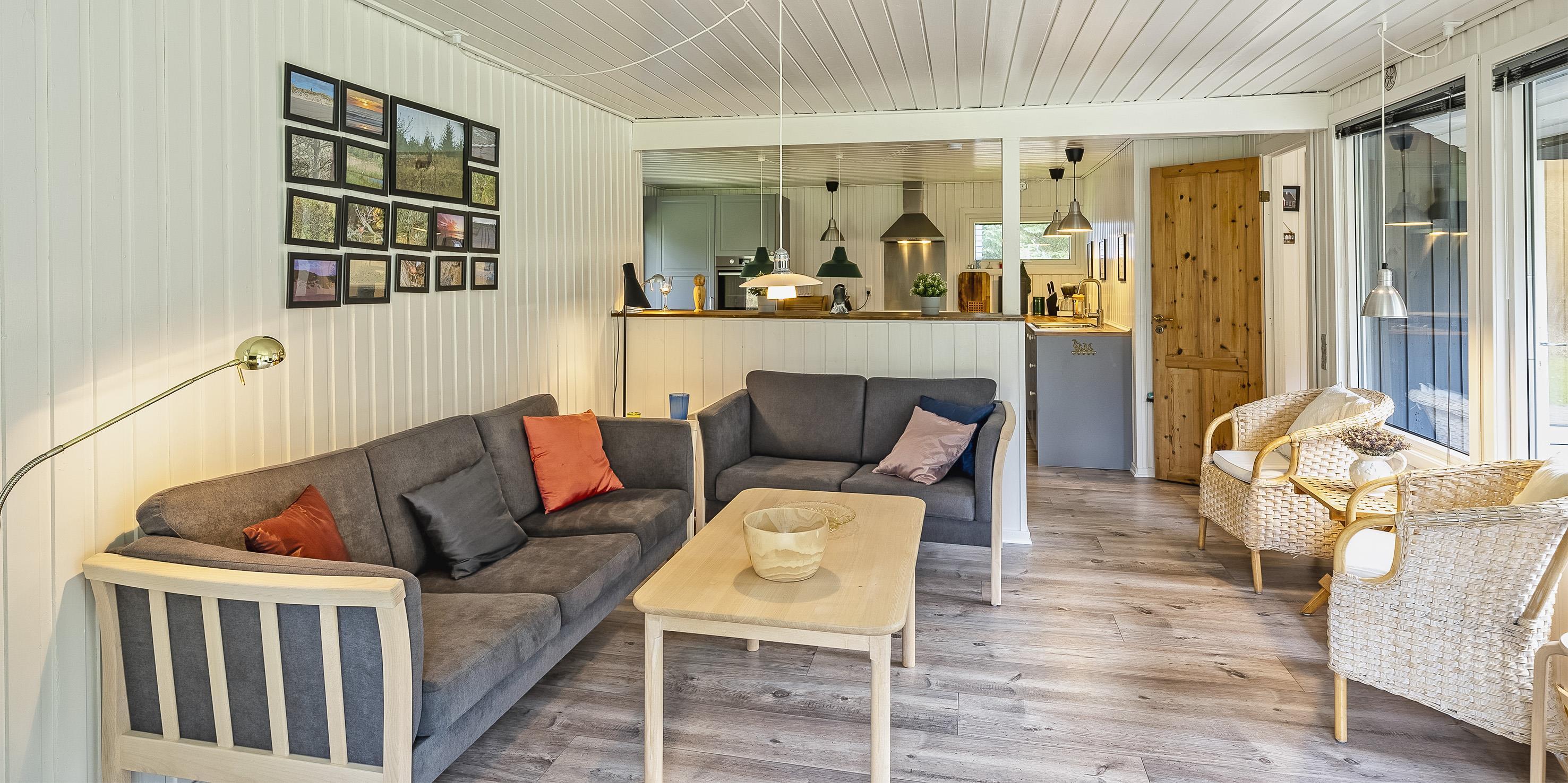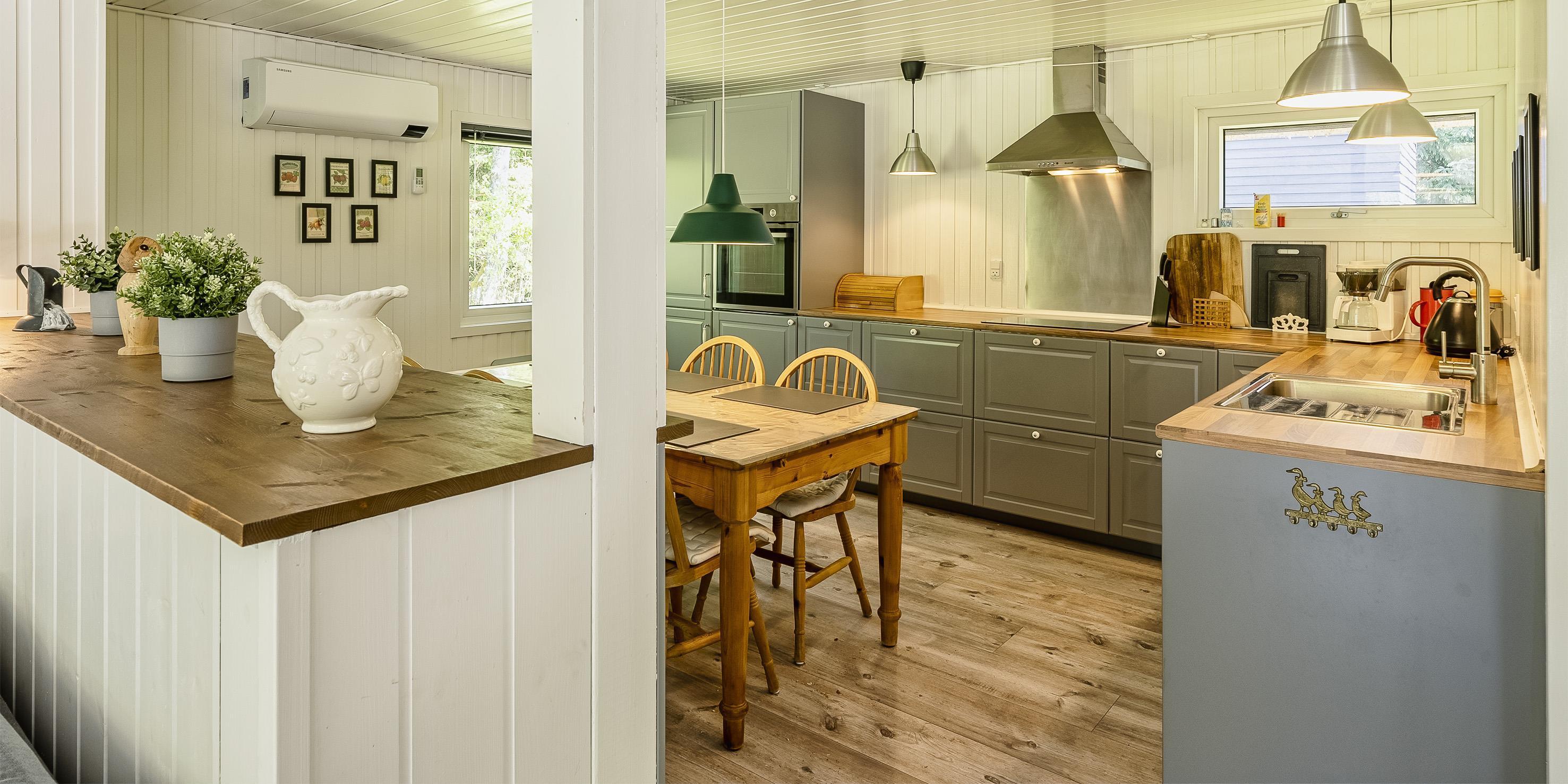 The house contains: Entrance/distribution corridor that leads into the house's kitchen-dining room. The kitchen is new from 2021 and looks like a country kitchen with a wooden worktop with dishwasher, built-in oven, ceramic hob, hood and a built-in fridge/freezer. Lovely dining area with a long table and plenty of space. The kitchen-dining room and the living room are divided by a half wall with extra cupboards. Cozy and bright living room with sofa corner with a view to Smart TV, Google mini nest and an insert fireplace that functions as a wood stove, as well as the cozy garden. There is access to the garden from a patio door in the living room. The house has wireless internet available. From the distribution corridor there is access to 3 bedrooms: DB + 2B + 2B. The house has a large, lovely wooden terrace to the south, where the sun can be enjoyed all day, there is a barbecue area and a sandbox and play stand for the little ones on the terrace. The house also has a heat pump. There is a gas grill at the house which the homeowner has made available. Gas for the barbecue must be brought.