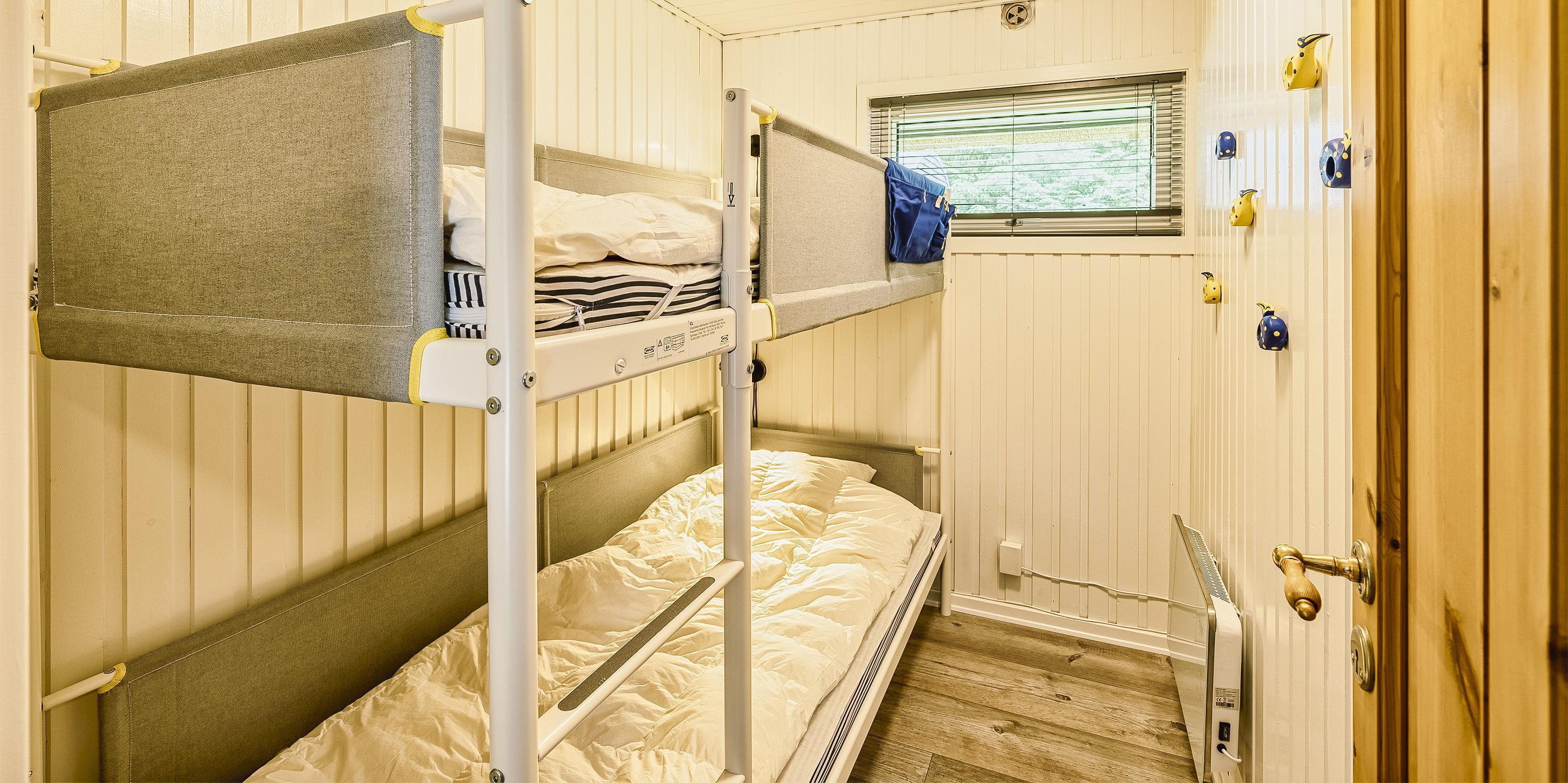 3 bedrooms. 1 with double bed 180x200 cm. 1 with 2 single beds (90x200 cm each). 1 with 1 bunk bed.