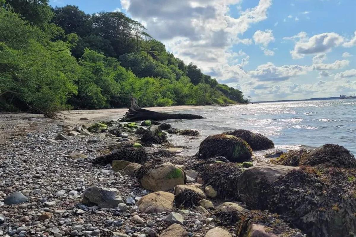 Ferienhaus auf einem gut 750 m² großen Naturgrundstück mit schützenden Bäumen unweit der Küste bei Vejlby Fed.