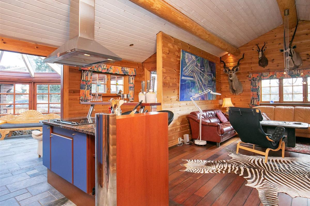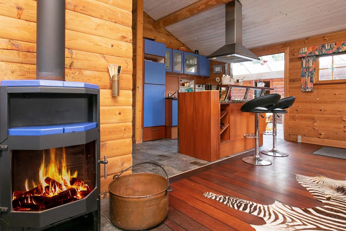 Im gemütlich und mit persönlicher Note eingerichteten Ferienhaus steht ein offener Küchen-/Wohnbereich für das Familienleben bereit, der mit gutem Mobiliar und Holzofen eingerichtet ist. Zur technischen Ausstattung gehören Flachbildfernseher und einige deutsche TV-Sender. Zudem bietet der Raum direkten Zugang zum hellen, überdachten Atrium.