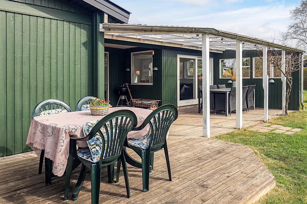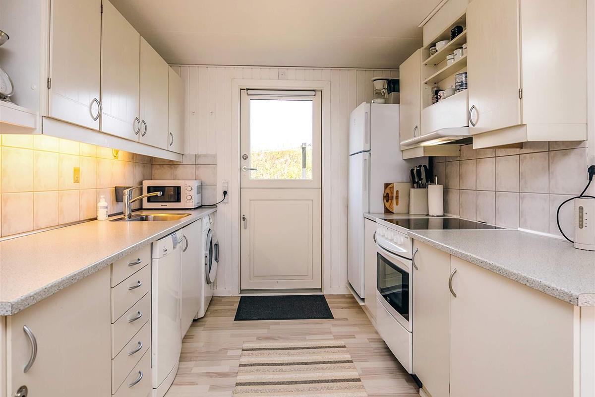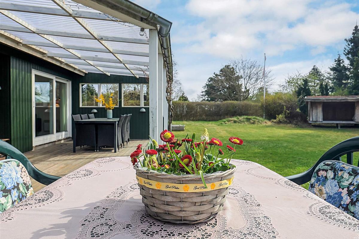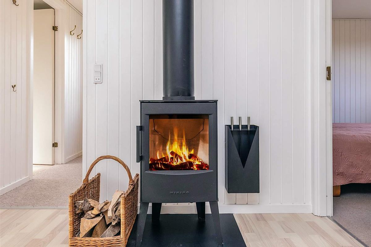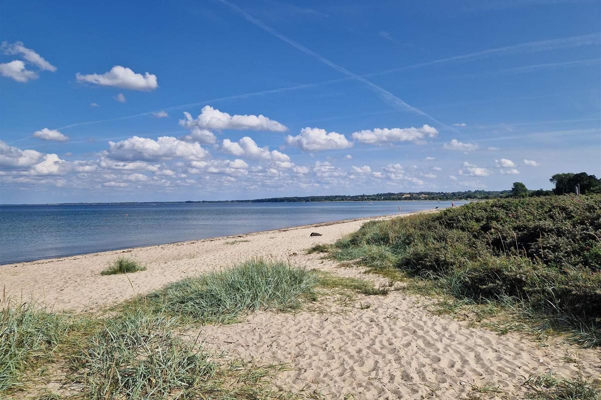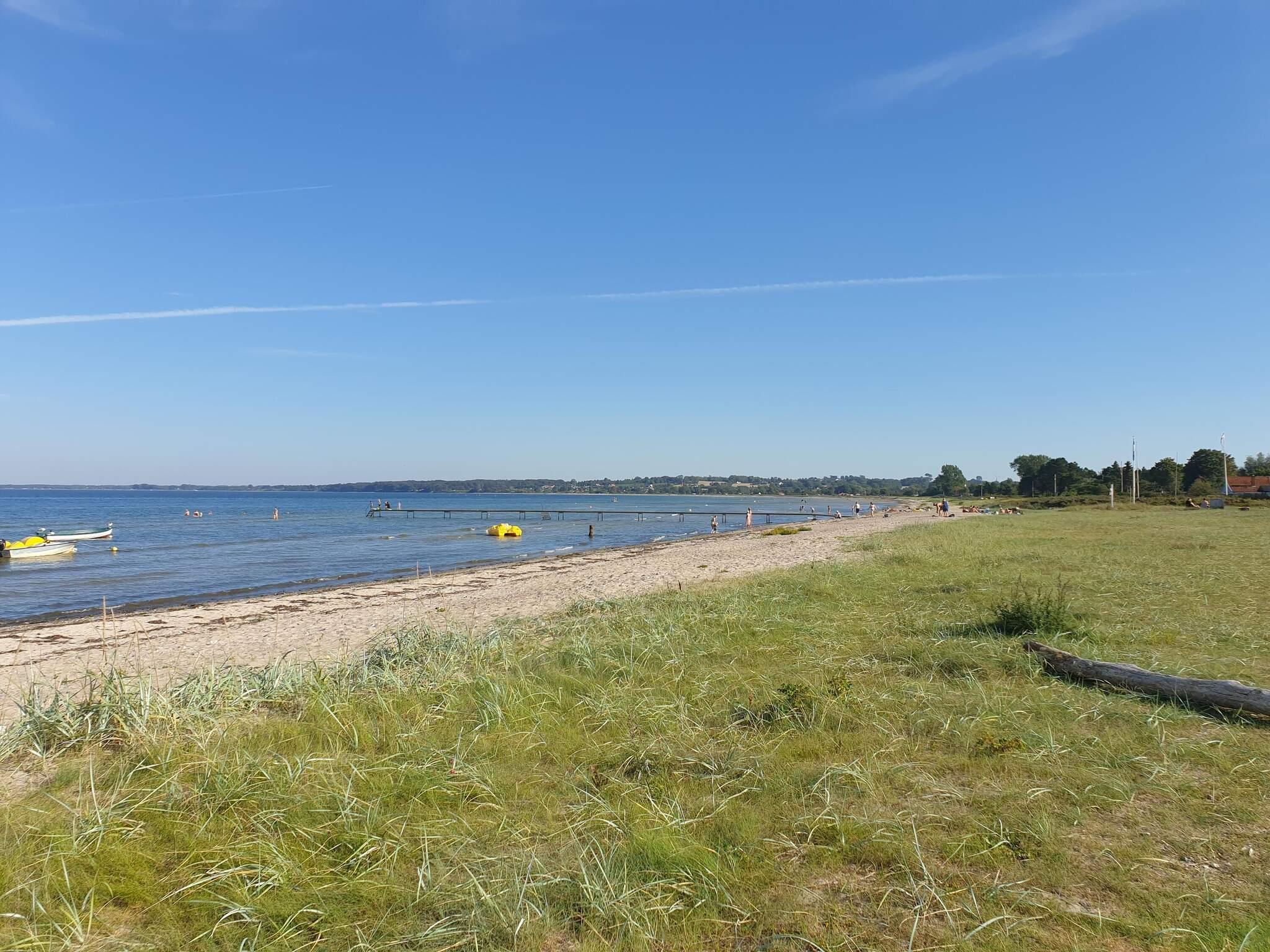 Die Küche ist hell, gut ausgestattet und praktisch mit Geschirrspüler und Waschmaschine ausgestattete. Offene Verbindung zu beiden Wohnzimmern. Dort können Sie die Wärme des Holzofens genießen und haben mehrere Zugänge zur großzügigen, überdachten Terrassenfläche. Der große Garten lädt zum Ballspielen, zum gemütlichen Verweilen, zum Übernachten im Shelter sowie zu Spiel und Spaß im Freien ein. Die umliegende reizvolle Natur bei Vejlby Fed und Båring bietet Gelegenheit für lange Spaziergänge oder vielleicht einen entspannten Angelausflug.
