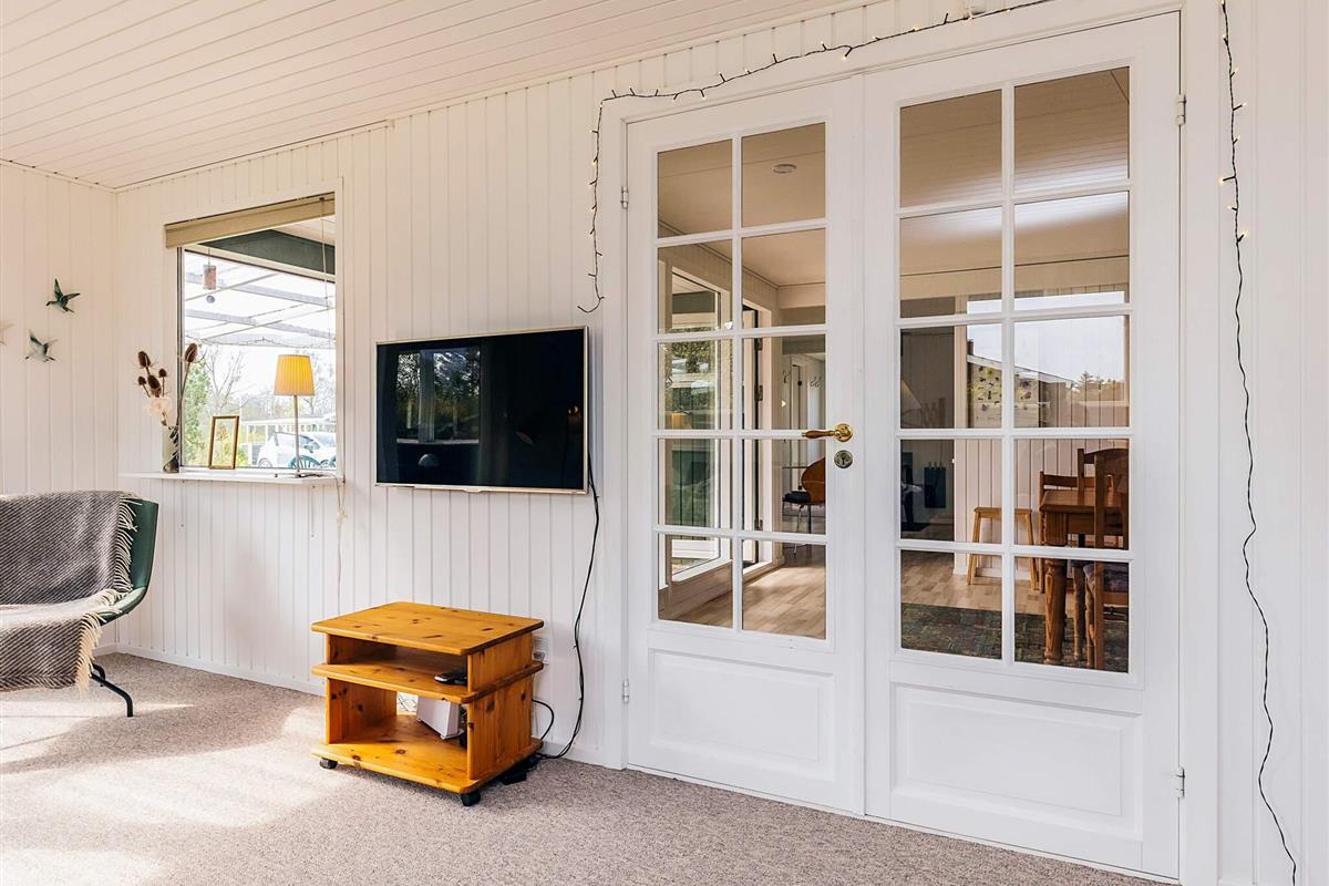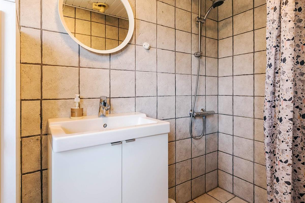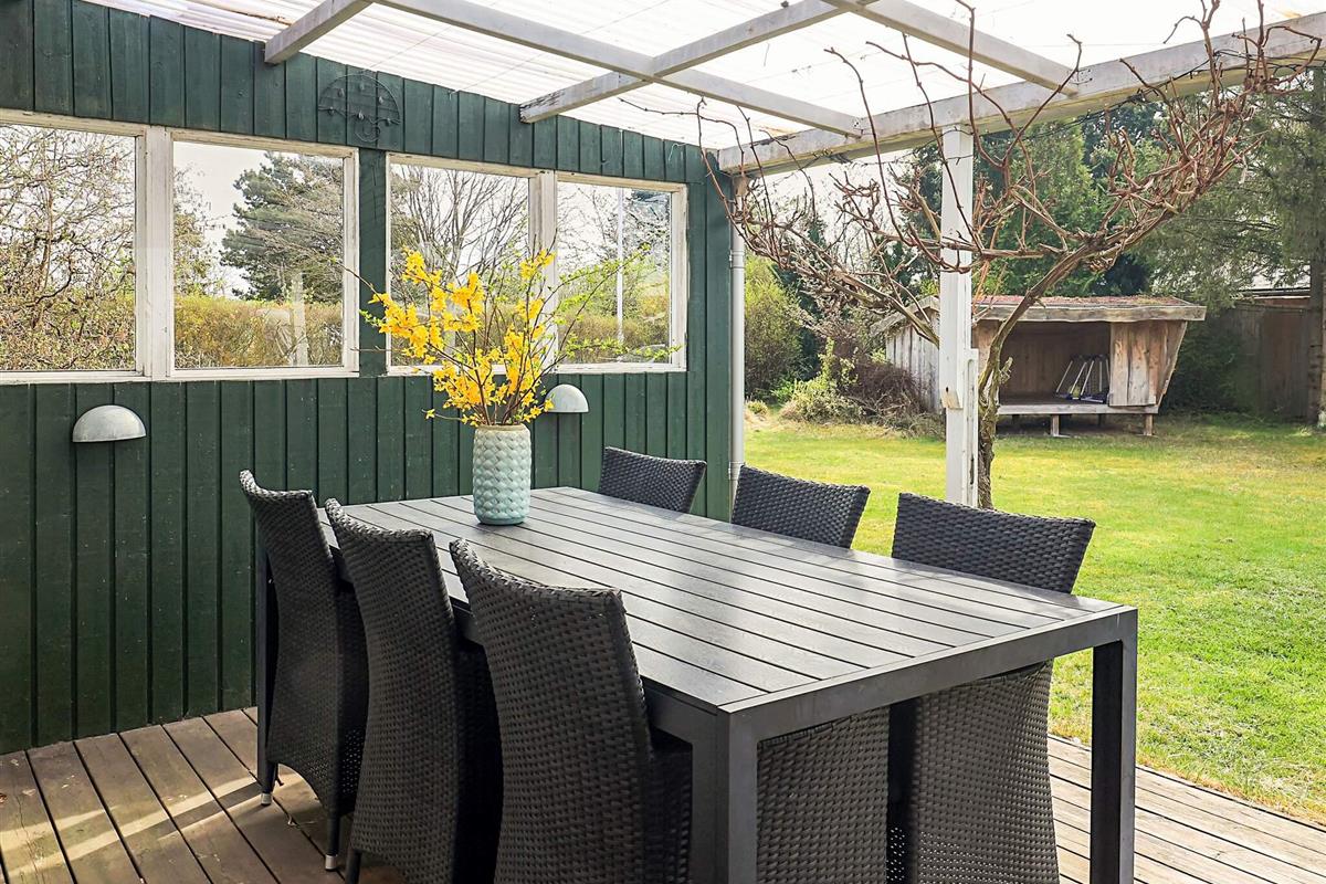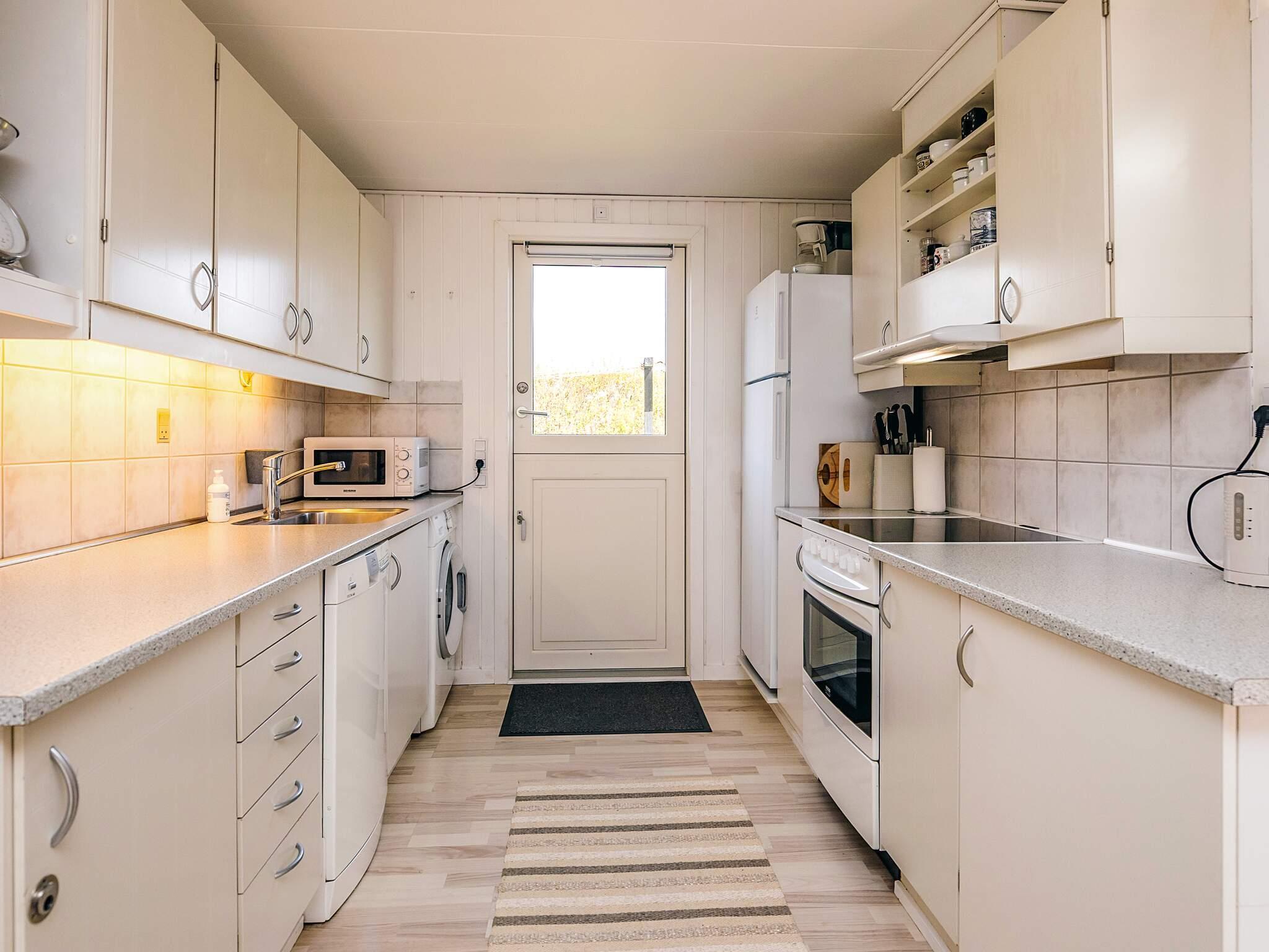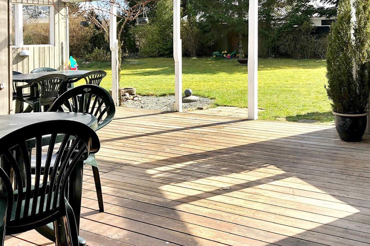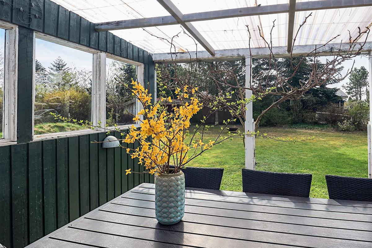 Die Küche ist hell, gut ausgestattet und praktisch mit Geschirrspüler und Waschmaschine ausgestattete. Offene Verbindung zu beiden Wohnzimmern. Dort können Sie die Wärme des Holzofens genießen und haben mehrere Zugänge zur großzügigen, überdachten Terrassenfläche. Der große Garten lädt zum Ballspielen, zum gemütlichen Verweilen, zum Übernachten im Shelter sowie zu Spiel und Spaß im Freien ein. Die umliegende reizvolle Natur bei Vejlby Fed und Båring bietet Gelegenheit für lange Spaziergänge oder vielleicht einen entspannten Angelausflug.