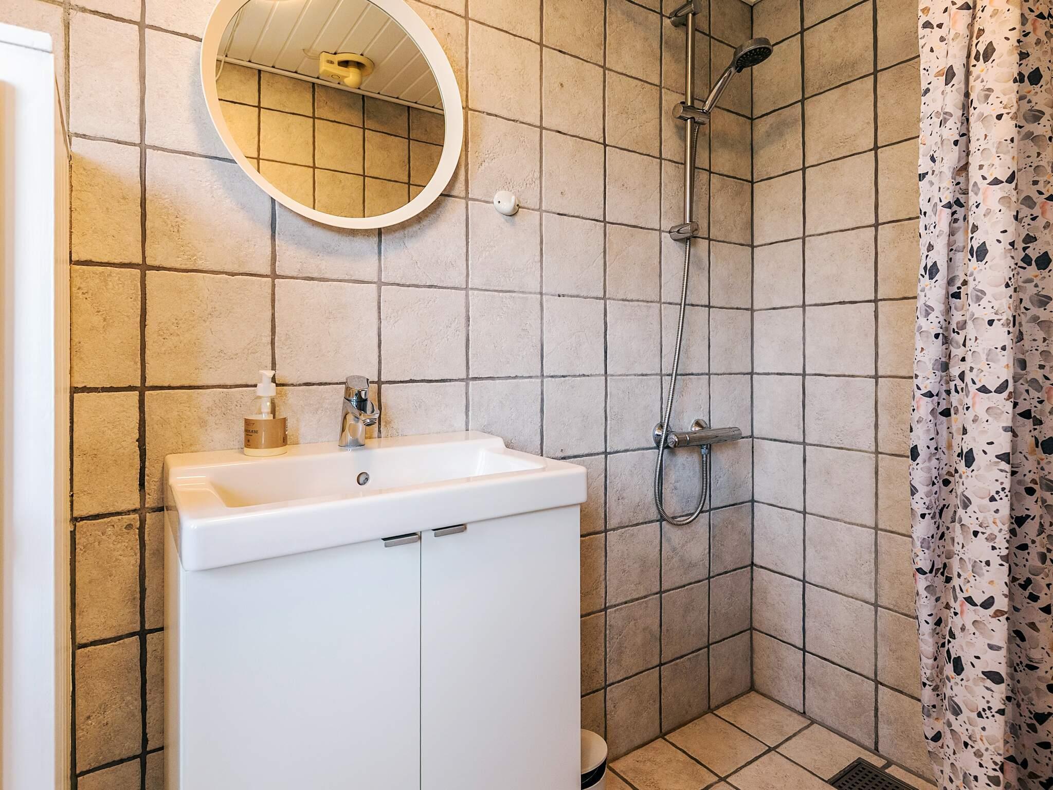 Das für bis zu 5 Erwachsene und 2 Kinder geeignete Ferienhaus bietet einen einladenden Flur, ein stilvoll gefliestes Badezimmer mit Dusche und drei komfortable Zimmer mit jeweils zwei, zwei bzw. drei Schlafplätzen.