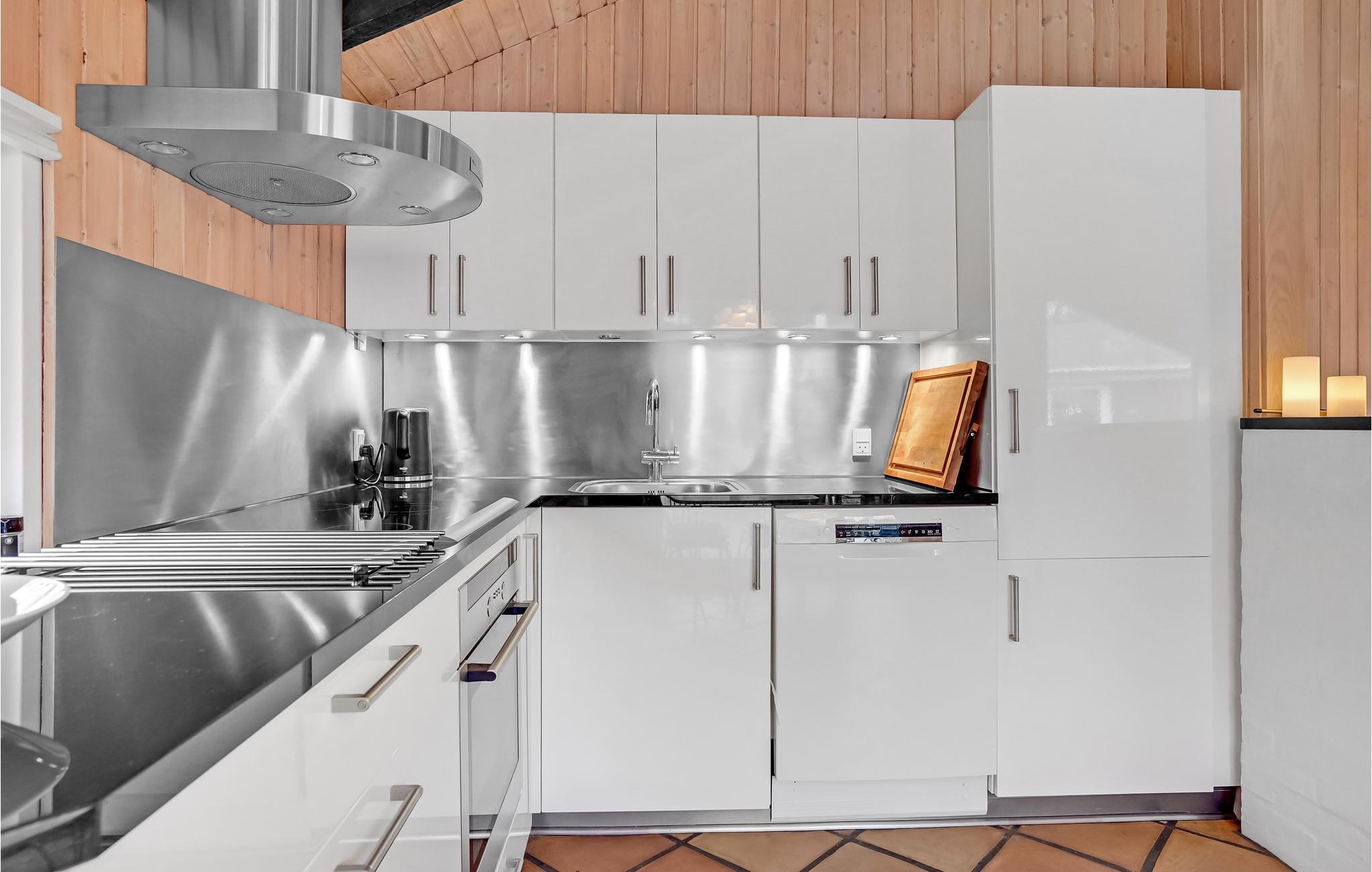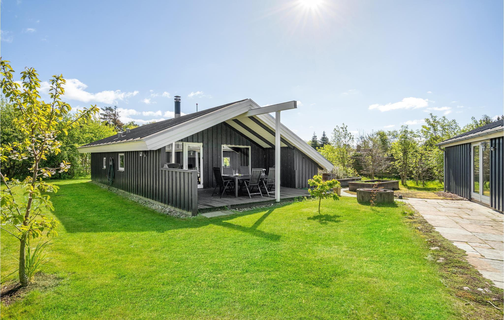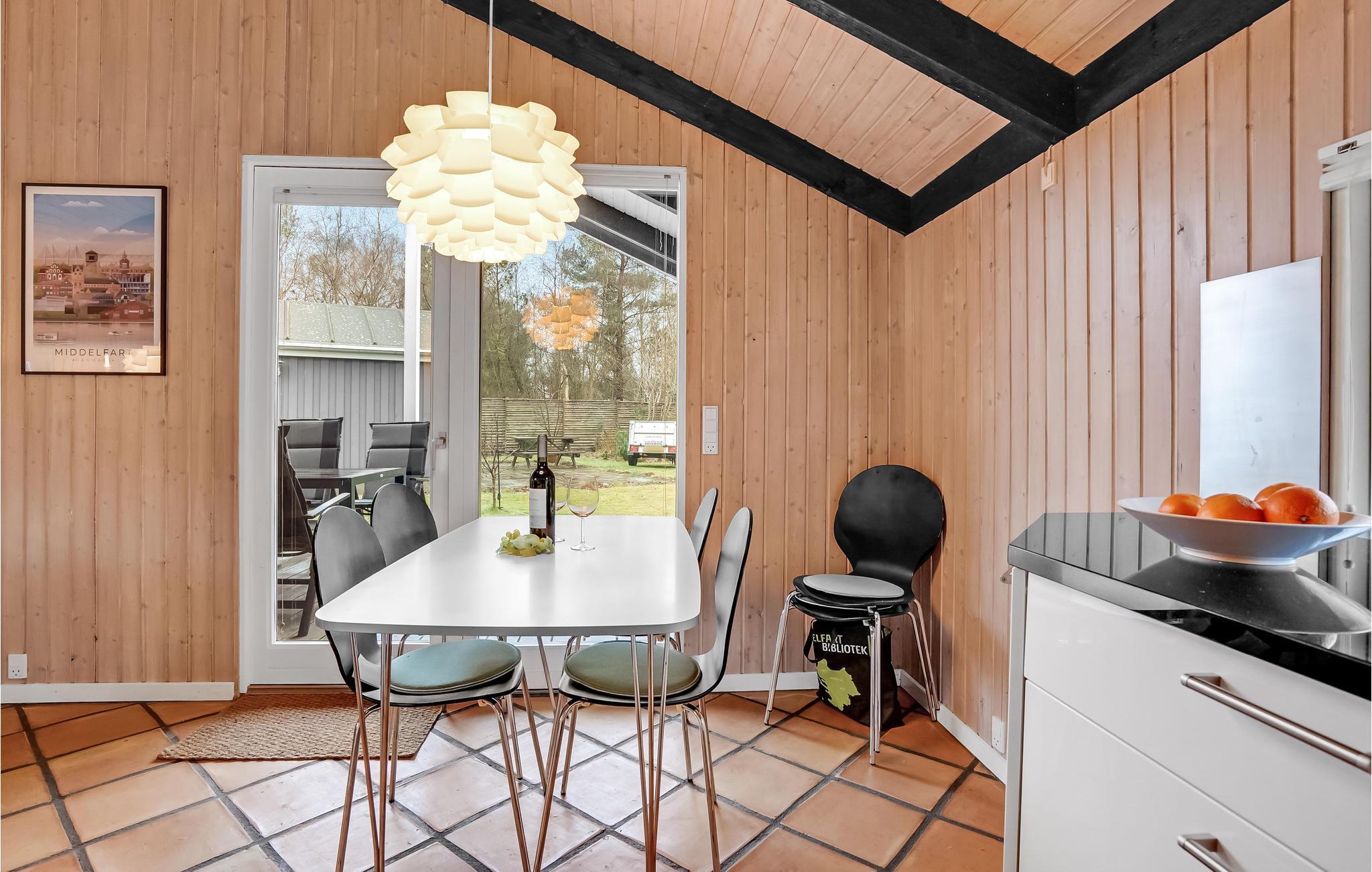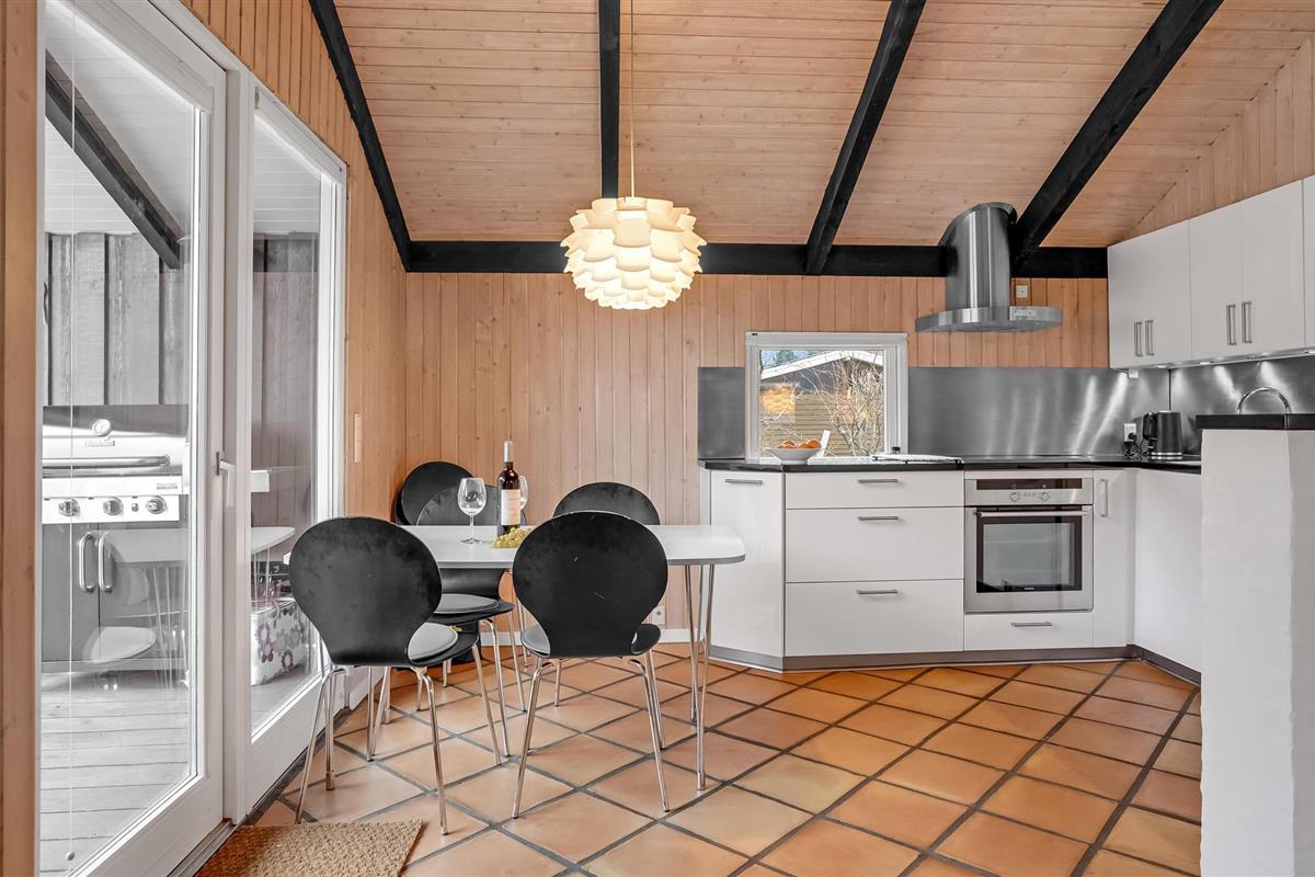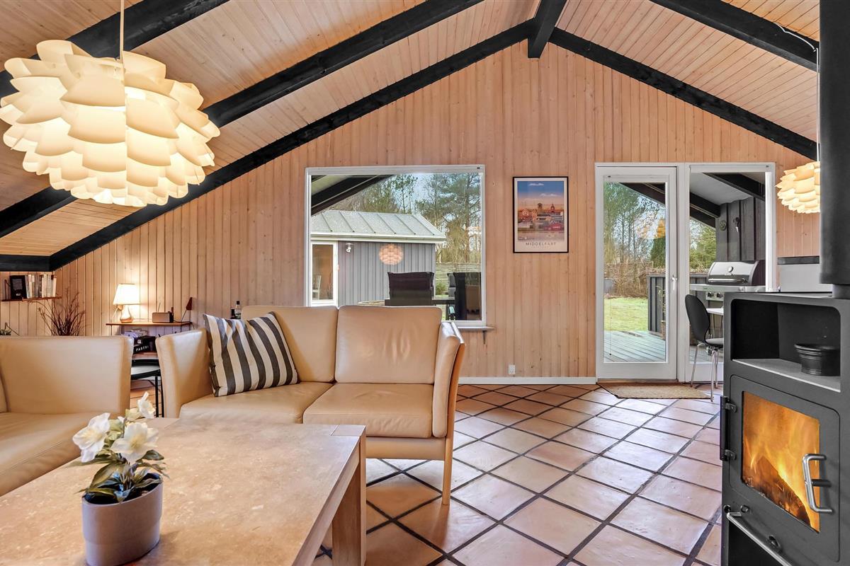 Gezinsvriendelijk vakantiehuis nabij zandstrand met open keuken, houtkachel en privétuin in Middelfart, Denemarken.