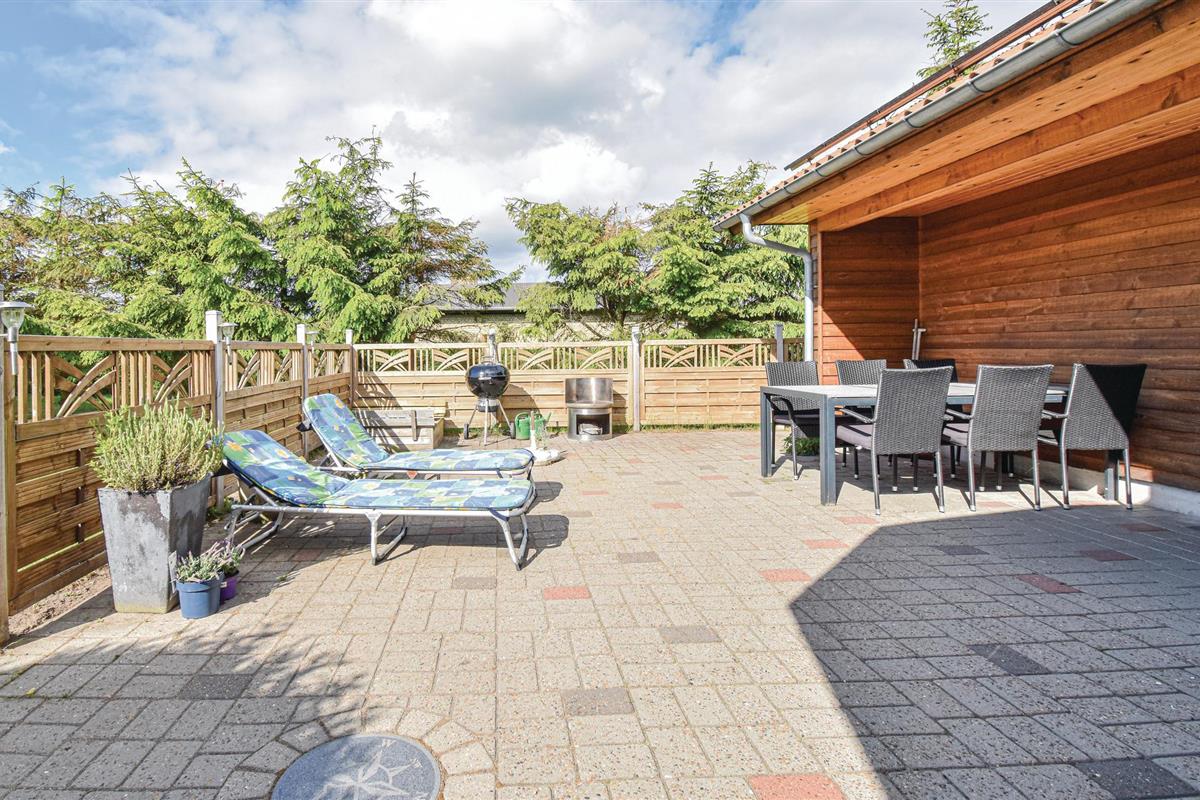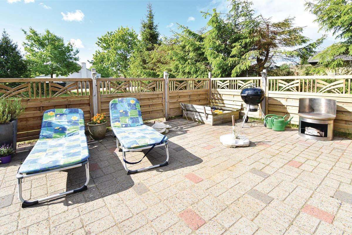 Buiten heeft u toegang tot verschillende terrassen met tal van gezellige zitjes waar u de hele zomer van kunt genieten. Geniet buiten van uw ochtendkoffie en maak het uzelf gemakkelijk met uw vakantie lectuur. Een barbecue is ook beschikbaar voor die lange, heldere zomeravonden. De goed onderhouden tuin nodigt zowel jong en oud als uw viervoeters uit om te ontspannen en te spelen.