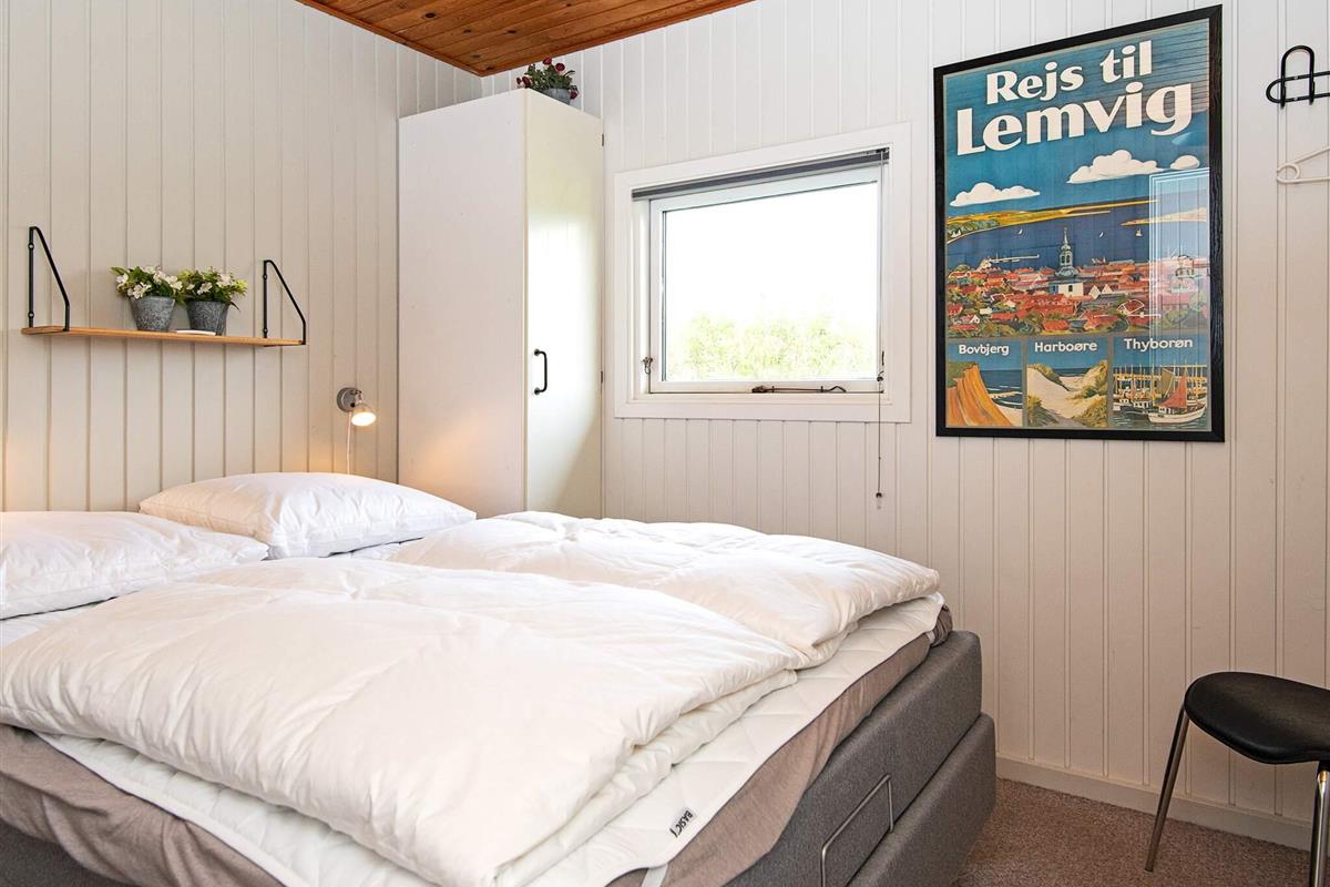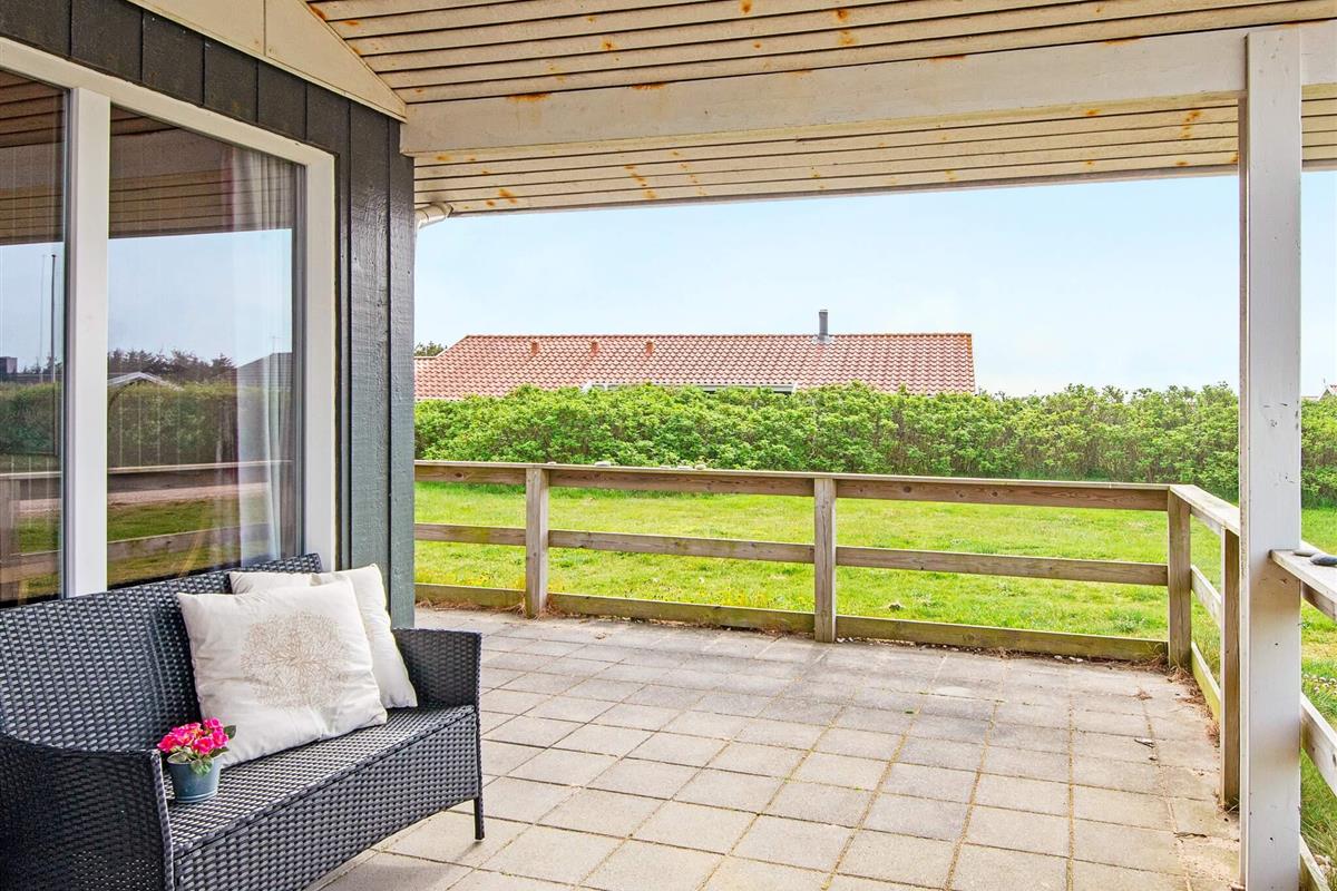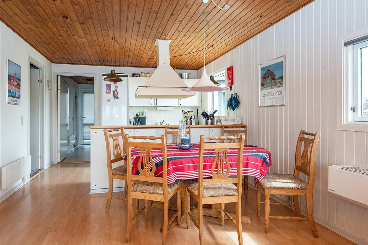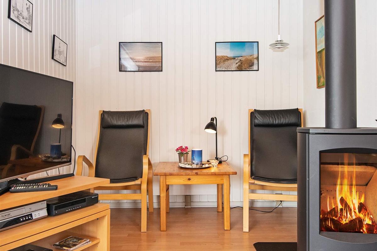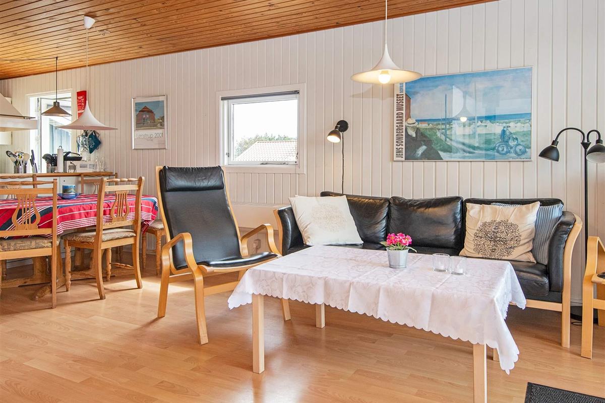 Hell und wohnlich eingerichtetes Ferienhaus in traditionellem Stil. Liegt auf einem schönen Naturgrundstück, nur etwa 400 m von der Nordseeküste bei Vejlby Klit. Nach einem Strandspaziergang mit steifer Brise kann man sich in der Sauna des Hauses aufwärmen.