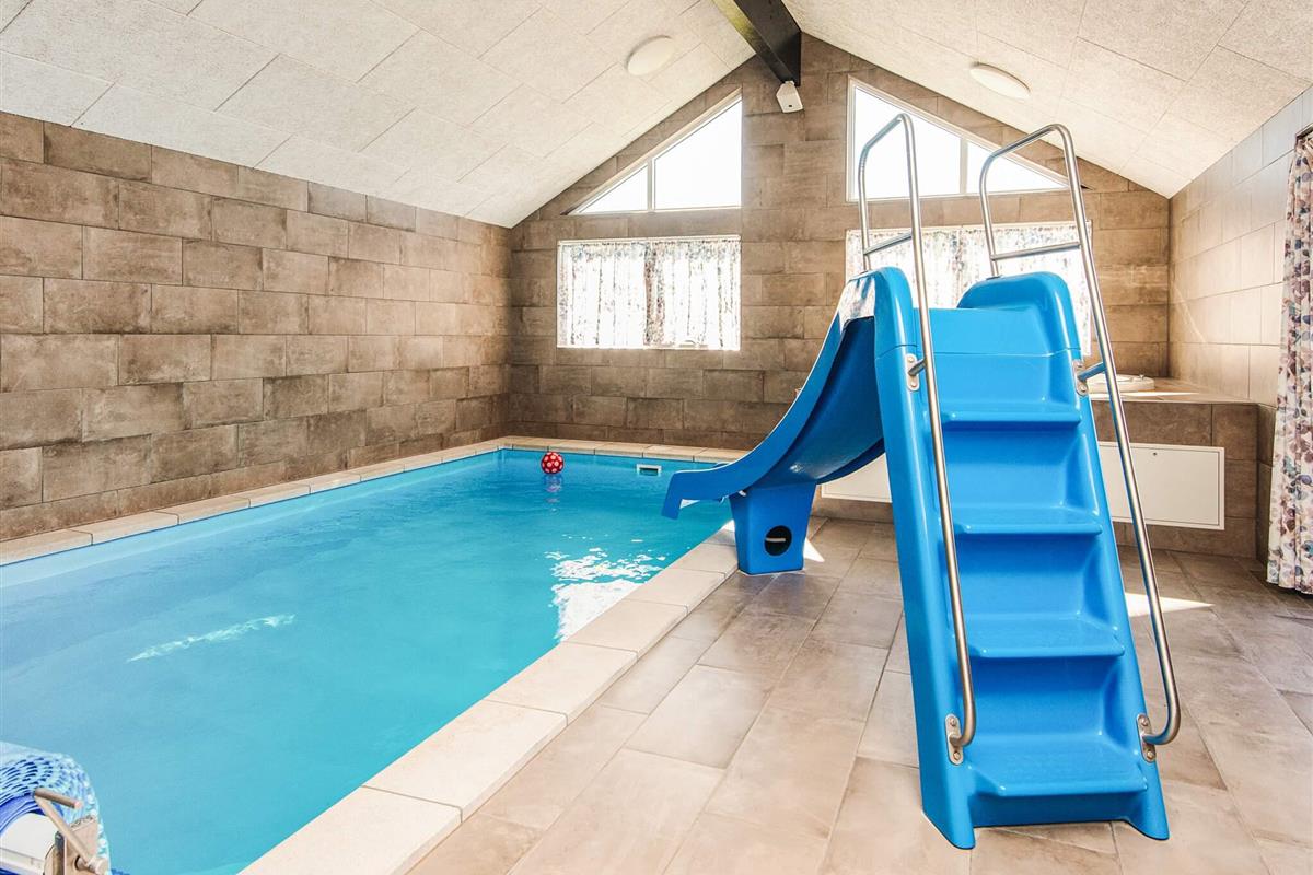 Ferienhaus für 24 Personen in Vejlby Klit mit großem Poolbereich mit Schwimmtrainer, Wasserrutsche, Sauna, Dusche und Whirlpool bietet Platz für 4–6 Personen.