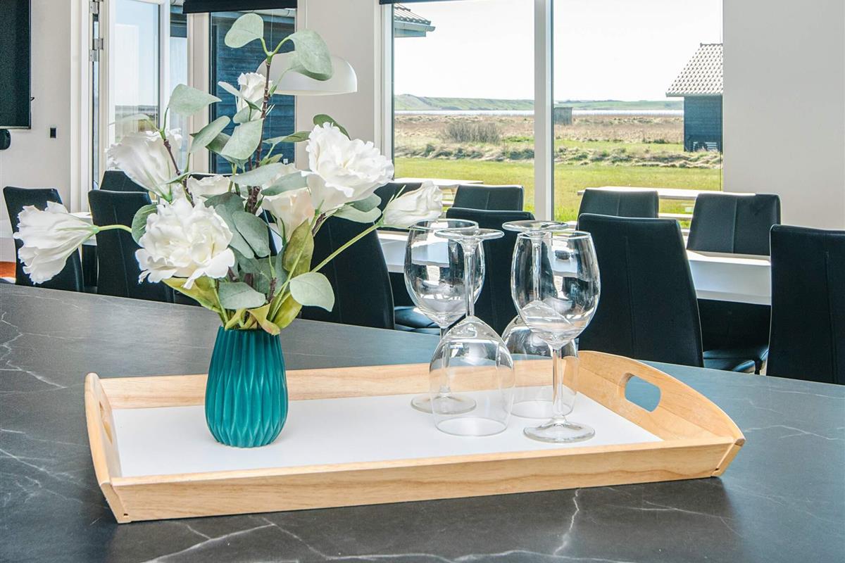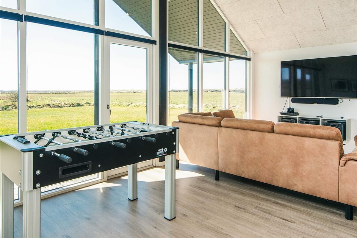 Auf der großen Terrasse mit einzigartigem Blick auf den Ferringsee finden Sie viel Platz zum geselligen Beisammensein, Essen und Entspannen – auch teilweise überdacht. Hier können Sie Ihr Essen auf dem Grill zubereiten und an der frischen Luft genießen, während die Kinder sich an zahlreichen Aktivitäten erfreuen. Kostenloser Zugang zum Harboøre Center. Nur 800 Meter von der tosenden Nordsee, fußläufig zu Einkaufsmöglichkeiten und eine kurze Autofahrt von der Handelsstadt Lemvig entfernt – die Umgebung ist unschlagbar.