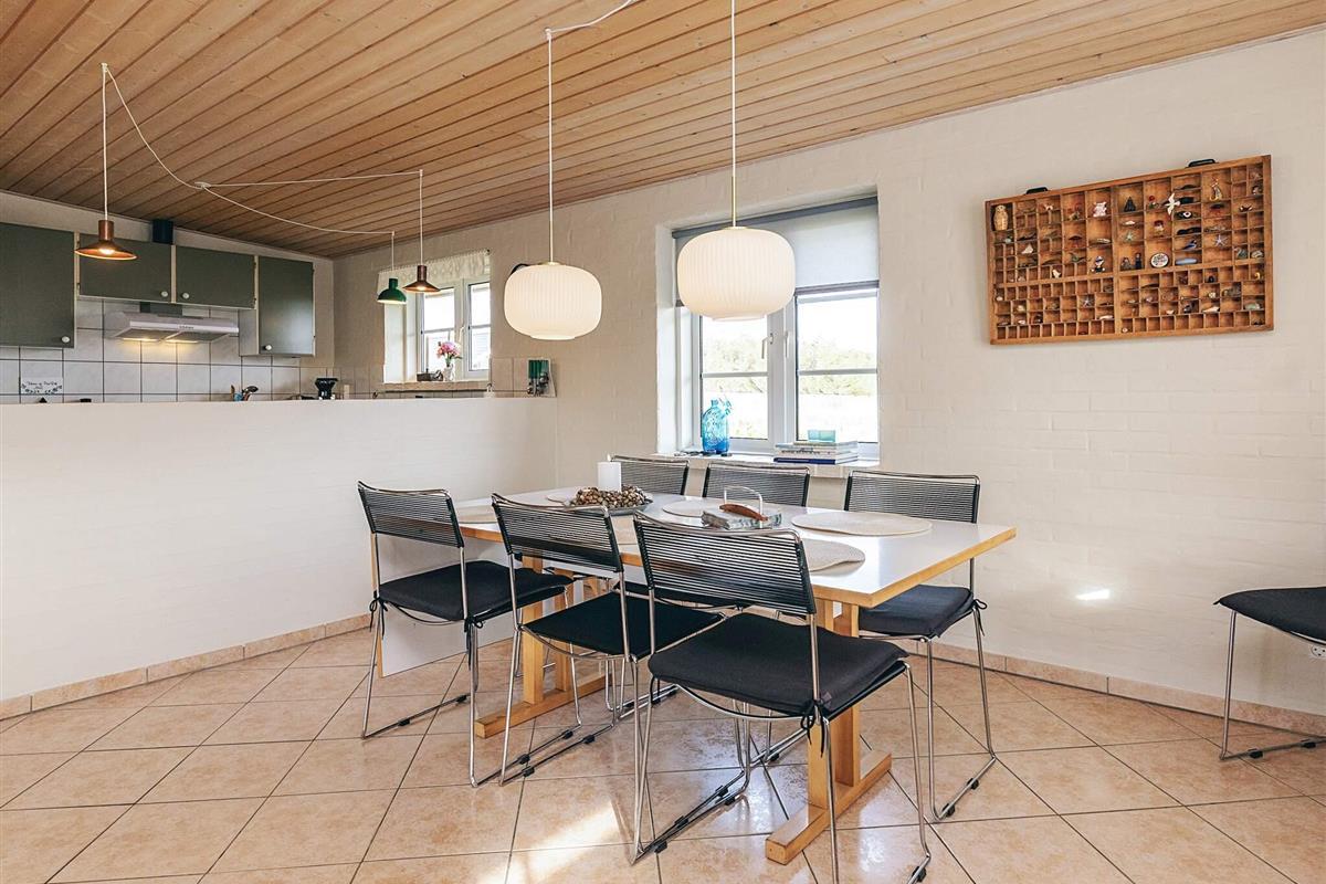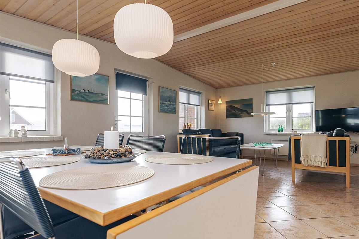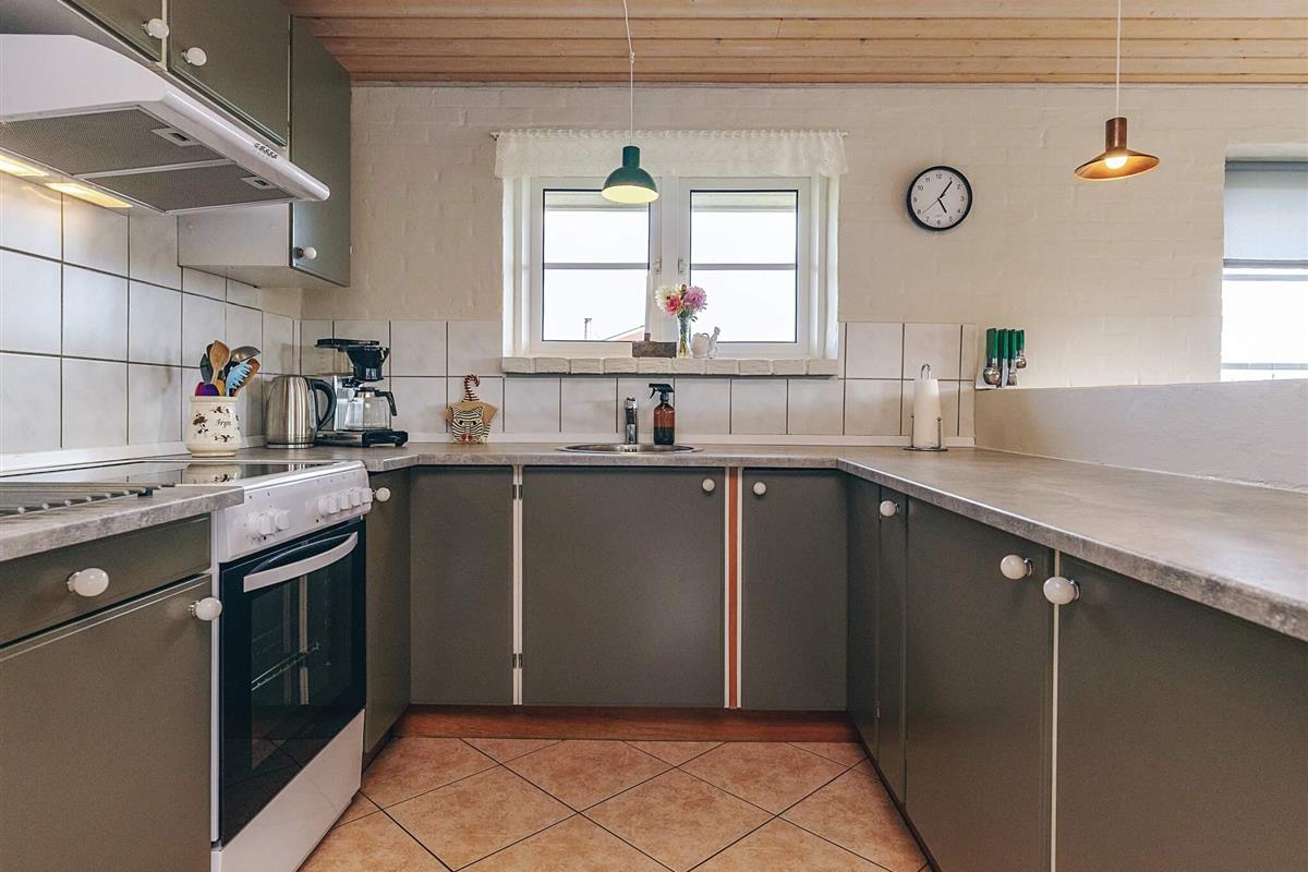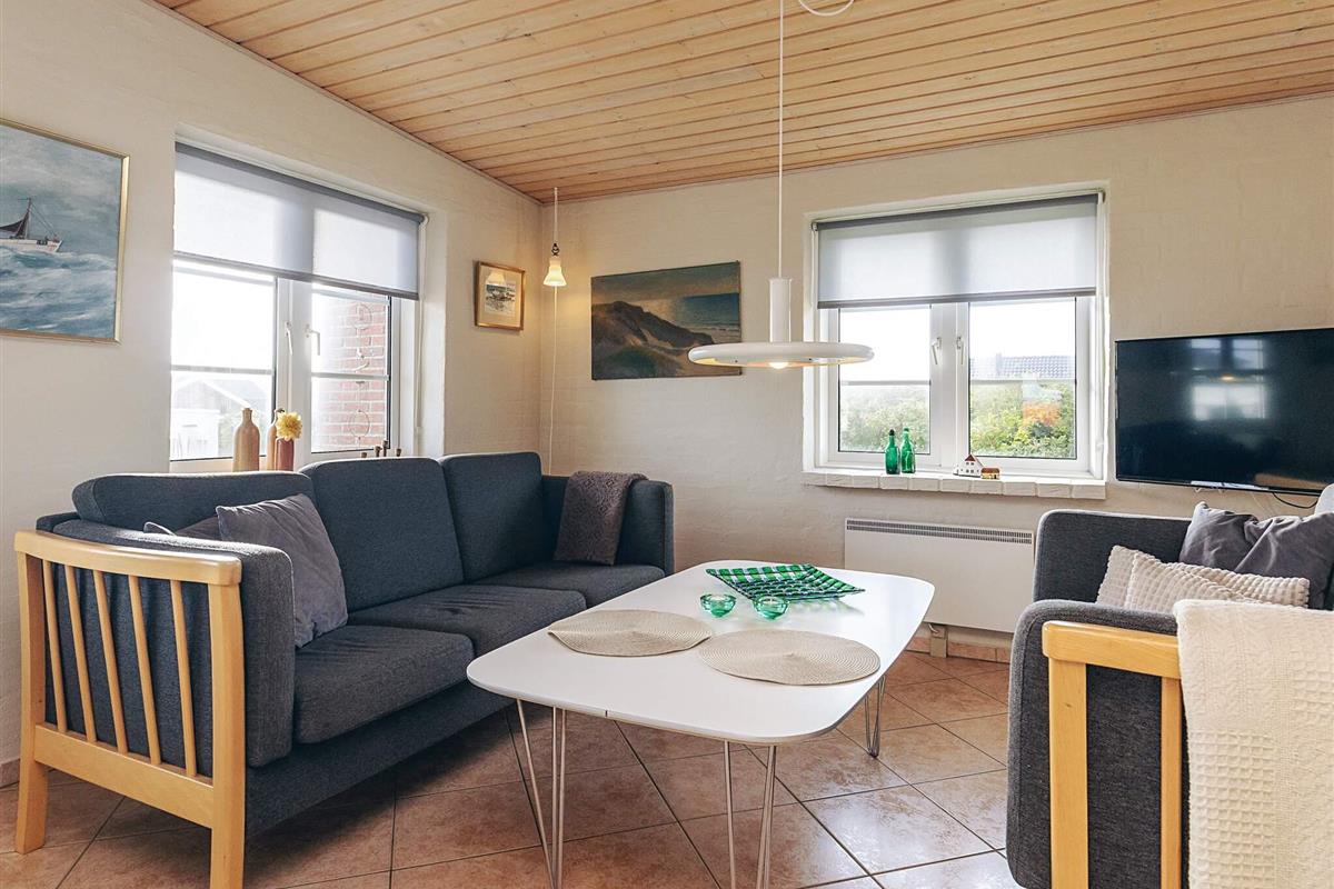 Schönes, helles Ferienhaus mit fantastischer Lage auf einem großen Naturgrundstück nur 150 m von der Nordsee entfernt. Im Jahr 2025 renoviert. Herrliche Aussicht auf die Dünen und die Umgebung. Das Haus ist gut ausgestattet und das große Wohnzimmer, das in offener Verbindung mit der Küche steht, bietet reichlich Gelegenheit, es sich drinnen gemütlich zu machen und verschiedenen Aktivitäten nachzugehen. Die geräumige Küche ist mit einem Cerankochfeld und einem Kühlschrank mit Gefrierfach ausgestattet. Ein Holzofen sorgt für Gemütlichkeit und Wärme an einem kühlen Sommerabend oder einem regnerischen Herbstabend. Das Wohnzimmer ist gut und gemütlich eingerichtet und ist der perfekte Ort zum Entspannen. Es gibt einen Fernseher mit internationalen Kanälen. Es gibt eine Satellitenschüssel am Haus. Das Haus hat 3 Schlafzimmer, eines mit einem Doppelbett (140 x 200) und zwei Einzelbetten in jedem der beiden anderen. Das Badezimmer ist mit Fußbodenheizung ausgestattet. Draußen gibt es zwei Terrassen mit Gartenmöbeln, von denen eine teilweise überdacht ist. Hier können Sie Ihr Abendbrot genießen, während die Sonne über der Nordsee untergeht. Es gibt auch eine Außendusche mit Warmwasser im Sommerhalbjahr. In den Sommermonaten gibt es ein Lebensmittelgeschäft und eine Cafeteria im Umkreis von 150 Metern, und in der nahe gelegenen Stadt Harboøre gibt es das ganze Jahr über gute Einkaufsmöglichkeiten. Nicht verfügbar für Jugendgruppen.