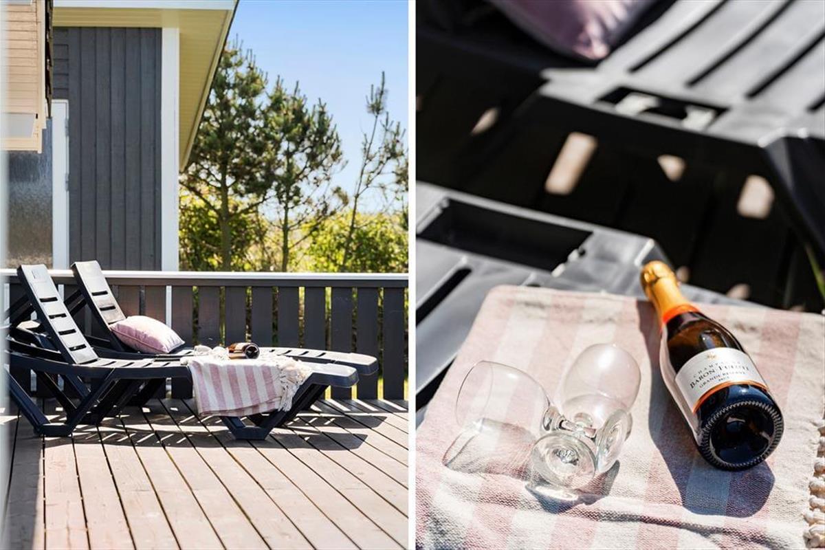 Outside, you can enjoy the stunning views of Ferring Lake from the spacious terrace, where morning coffee tastes even better in the first rays of sunshine. The terrace is designed to provide shelter from the west wind, allowing you to relax in the sun loungers or enjoy a meal at the garden table regardless of the weather. For the youngest guests, there is a swing on the large natural plot where they can play freely while you enjoy the tranquility and fresh air.