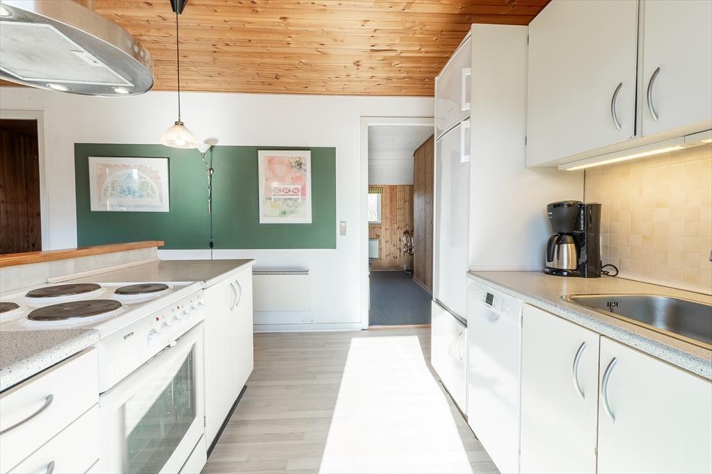 As you step into this cozy holiday home, you are greeted by an inviting atmosphere. The living room features a wood-burning stove that creates a warm and pleasant ambiance on cooler evenings. The open kitchen is conveniently integrated with the living room, making it easy to prepare meals while still being part of the group. The house has four comfortable bedrooms, ensuring a good night’s sleep after a day full of adventures. The bathroom is bright and functional, with underfloor heating for added comfort.