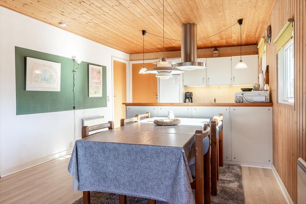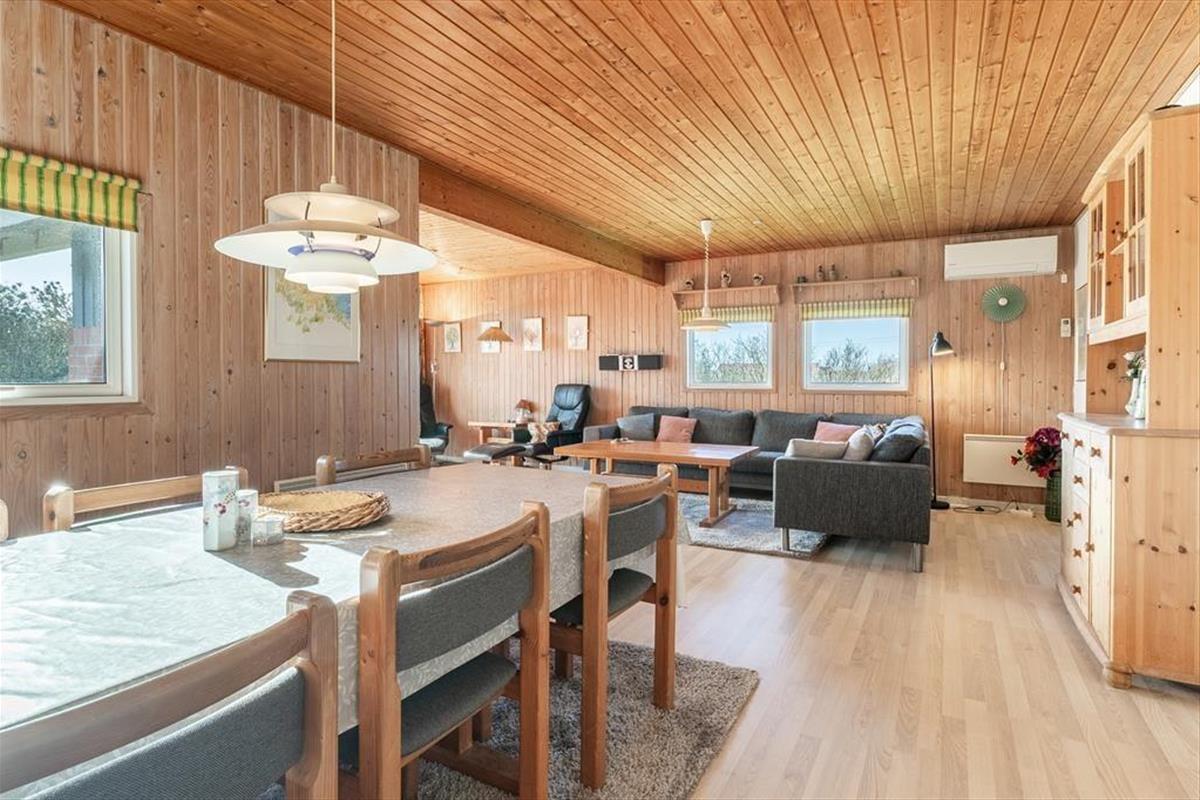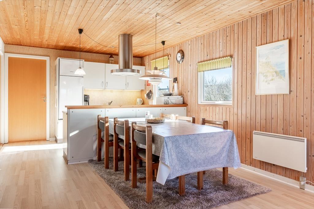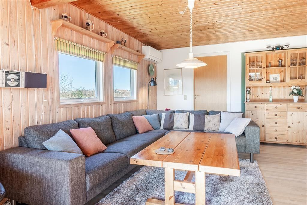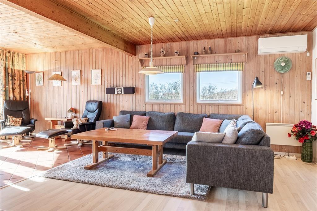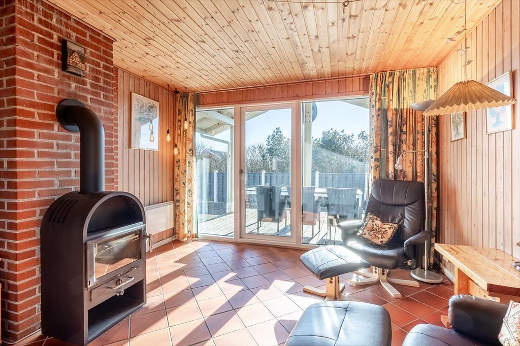 Located at the end of a quiet road, the house is ideally situated, with a short distance to a local supermarket and a cozy restaurant, both open during the summer season. The beautiful Vejlby Klit Beach is just 500 meters away, making it easy to take refreshing dips in the North Sea or enjoy a relaxing day by the shore. For those looking to explore further, the Victoria Street Station in Vejlby Klit is nearby. From here, you can take the train to the charming harbor town of Lemvig or the authentic fishing village of Thyborøn, where exciting experiences await.