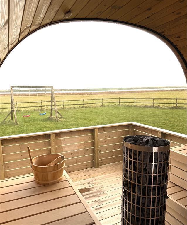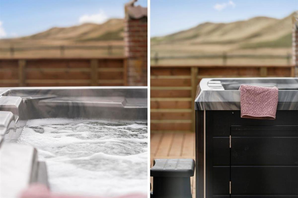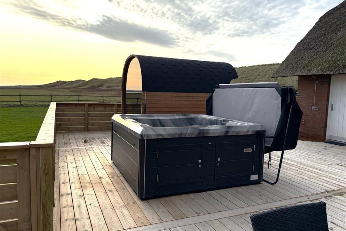 The real holiday magic unfolds outside. The large plot offers endless possibilities for enjoying the outdoors, whether it’s playing on the lawn, lounging in the sun, or sharing cosy evenings by the grill. The outdoor spa invites you to relax under the open sky, and when the sun sets over the dunes, you can enjoy the peaceful surroundings with warm bubbles and fresh sea air. There’s plenty of room for children to explore and play, and since the property has private beach access, you can simply grab a towel and head to the water – with nothing but sand and dunes along the way. Your dog is also welcome and will no doubt love the grounds and the many scenic walking trails nearby.