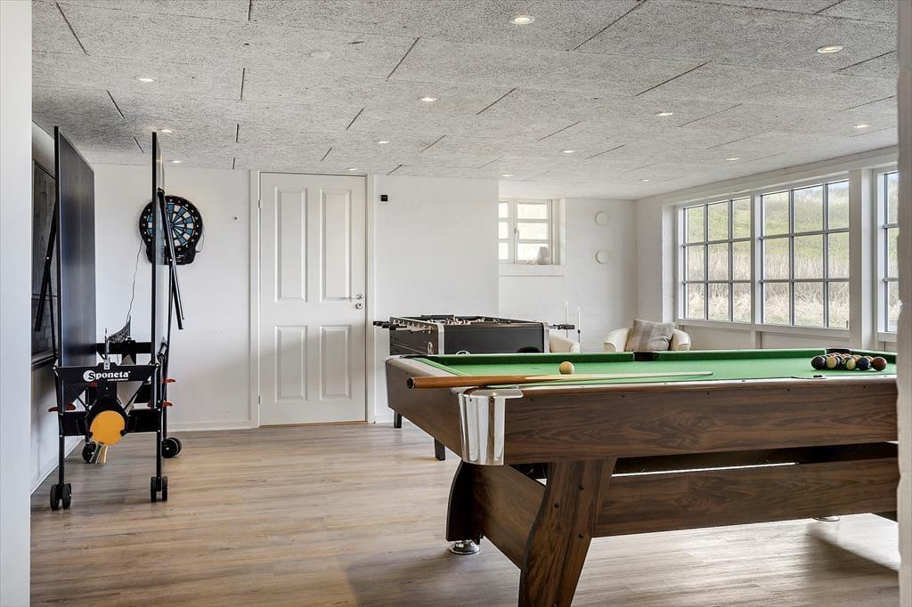 Step inside and you'll find bright and spacious rooms where guests of all ages will feel at home. The house is thoughtfully furnished with a focus on comfort and togetherness, offering plenty of room for both shared moments and quiet retreats. The large activity room invites hours of fun with a pool/ping-pong table, table football, and darts – perfect for family tournaments or rainy days. When it's time to unwind, you can relax in the living room or gather around the long dining table with views of the surrounding landscape. The sauna and outdoor hot tub make it easy to recharge, and with sleeping areas spread across multiple rooms, everyone can have their own private space. It’s a holiday home designed for connection – but with room for calm and reflection too.
